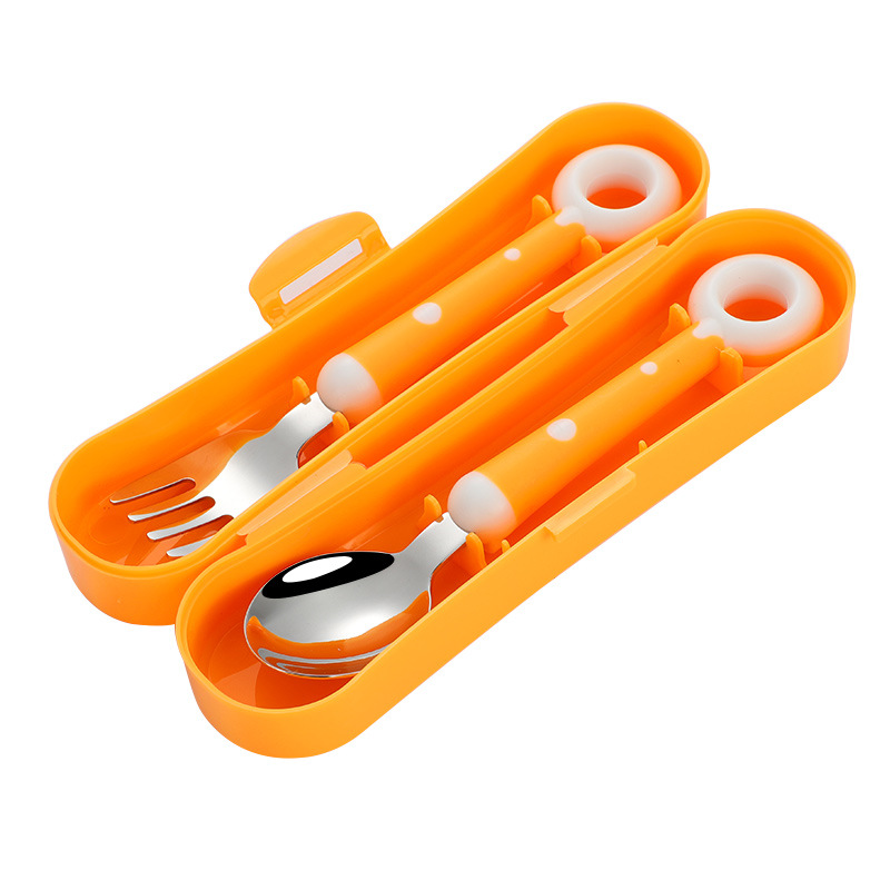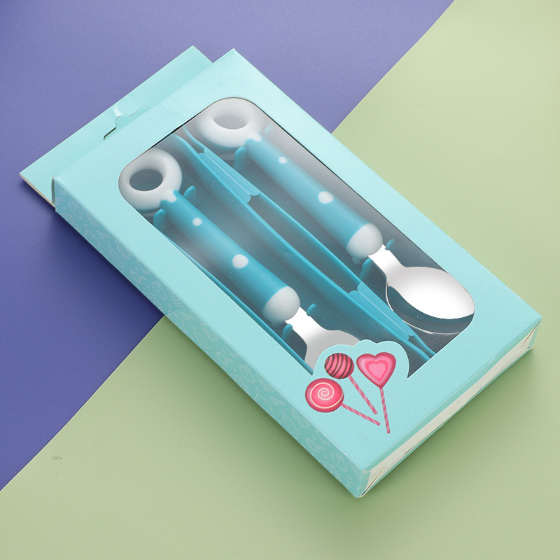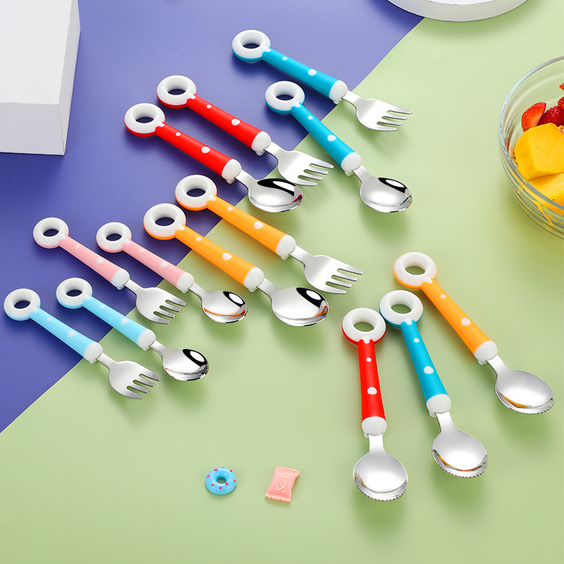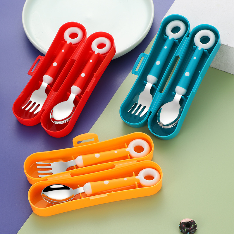 창조적 인 도넛 316L 스테인레스 스틸 헤드 어린이 숟가락 포크 이유식 보충 식기 아기 휴대용 선물 상자 세트