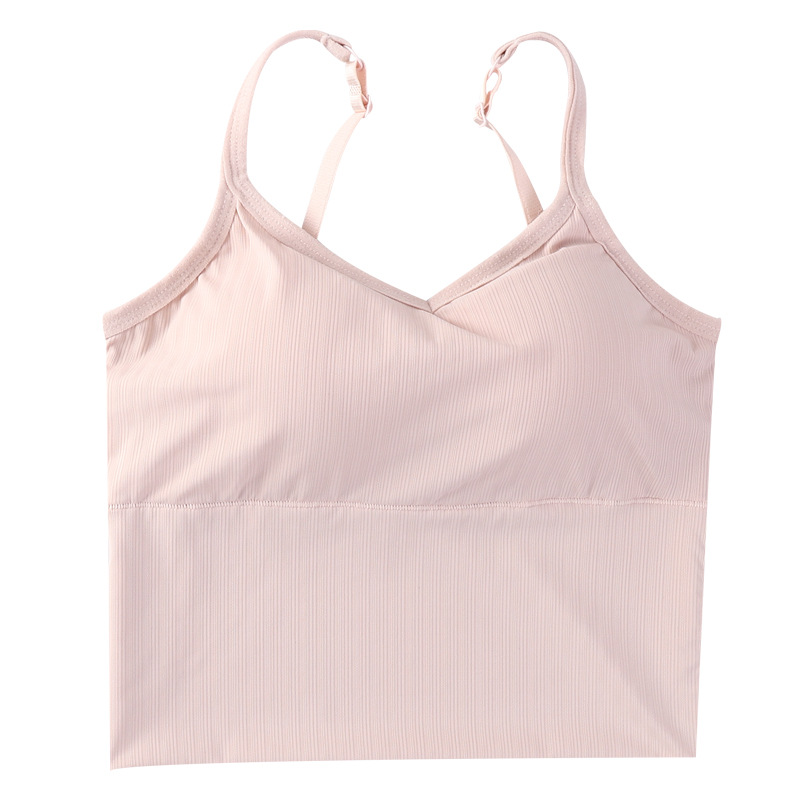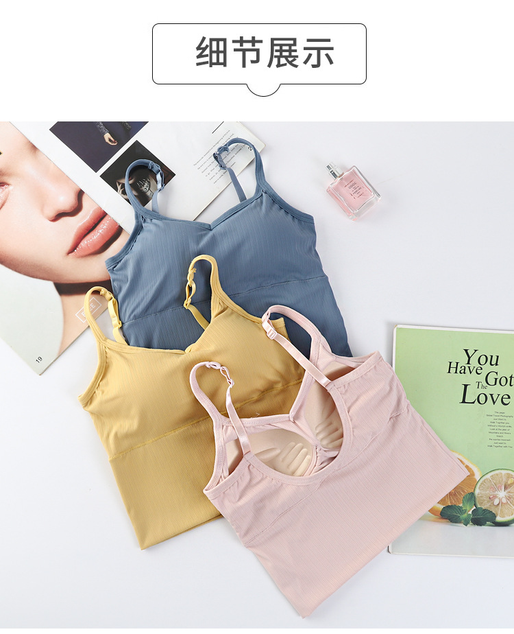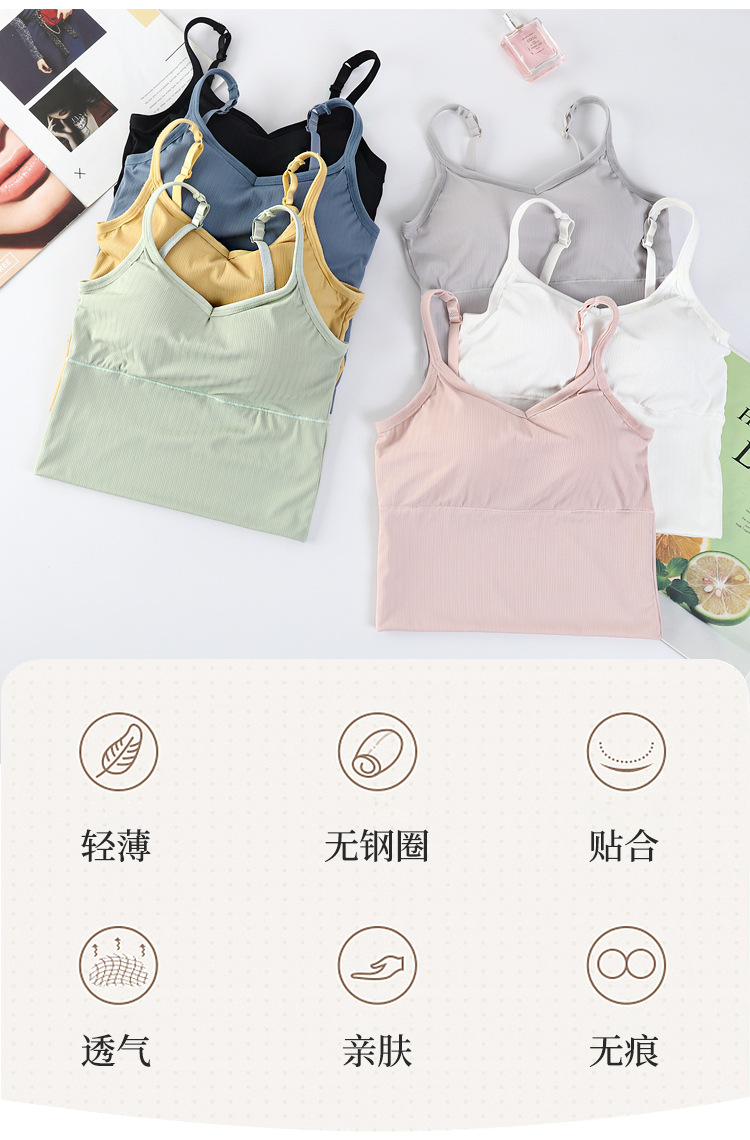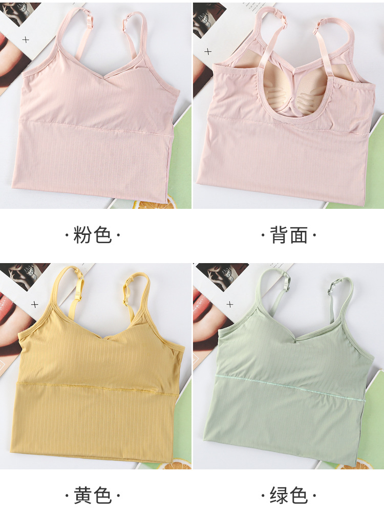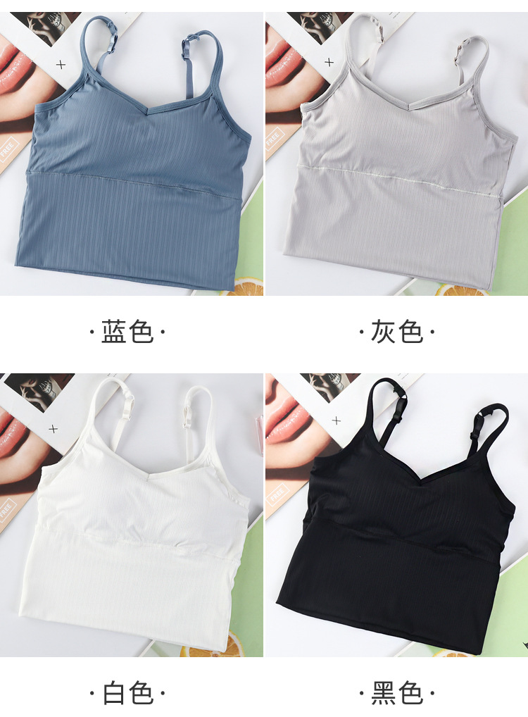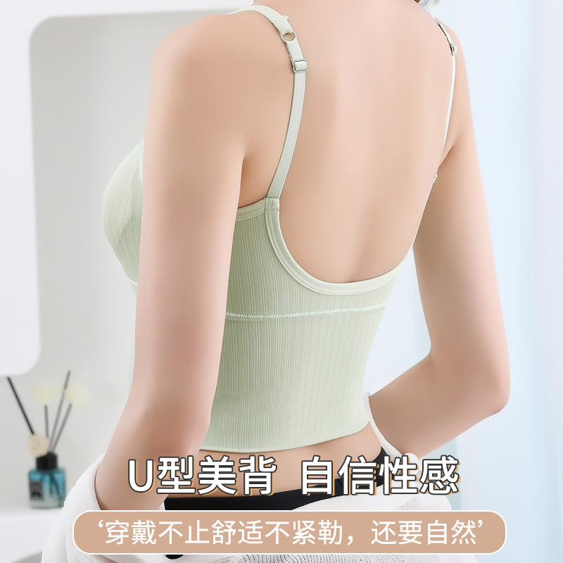 여름용 끈이 달린 이너웨어, 가슴 패드 내장, 빅 U 백 스포츠 탱크탑, 고정형 아이스 실크, 아름다운 등 라인, 일체형 컵, 가슴을 감싸는 여성용 탑