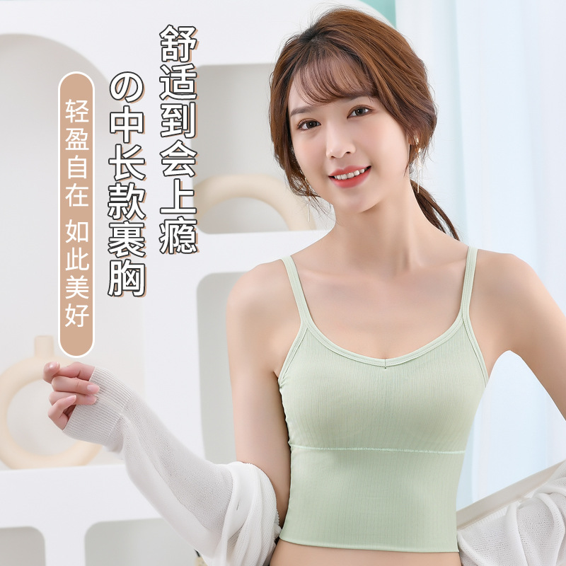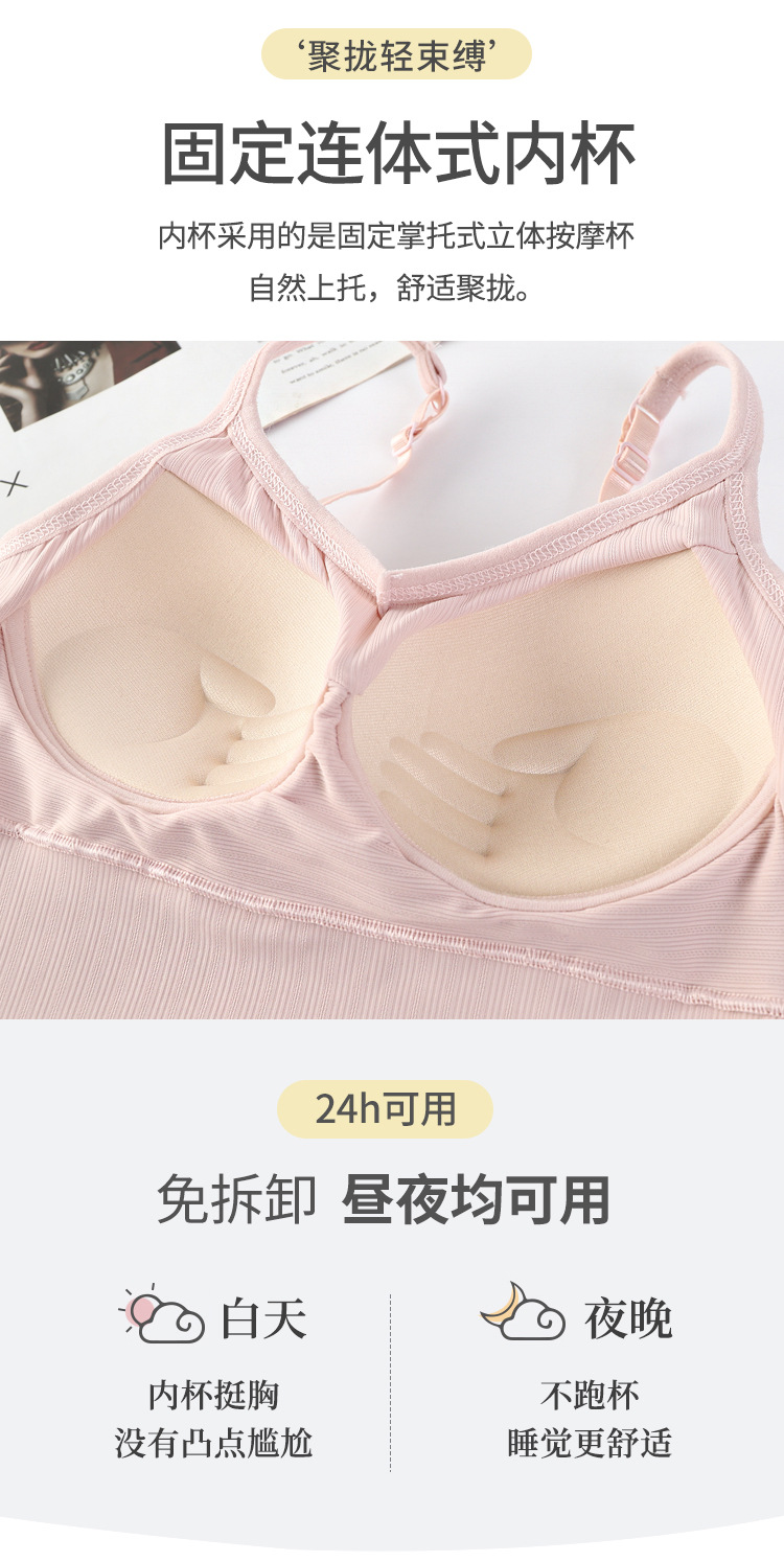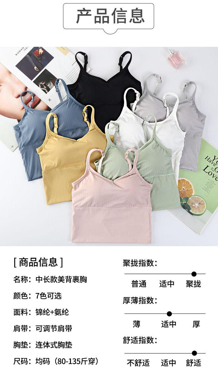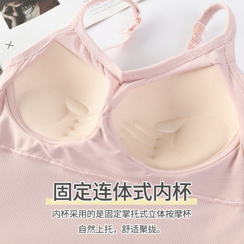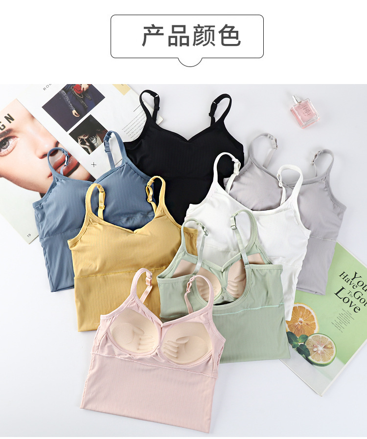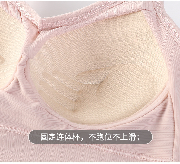 여름용 끈이 달린 이너웨어, 가슴 패드 내장, 빅 U 백 스포츠 탱크탑, 고정형 아이스 실크, 아름다운 등 라인, 일체형 컵, 가슴을 감싸는 여성용 탑