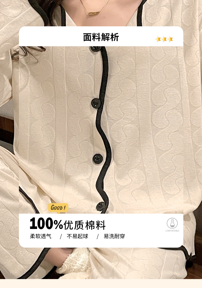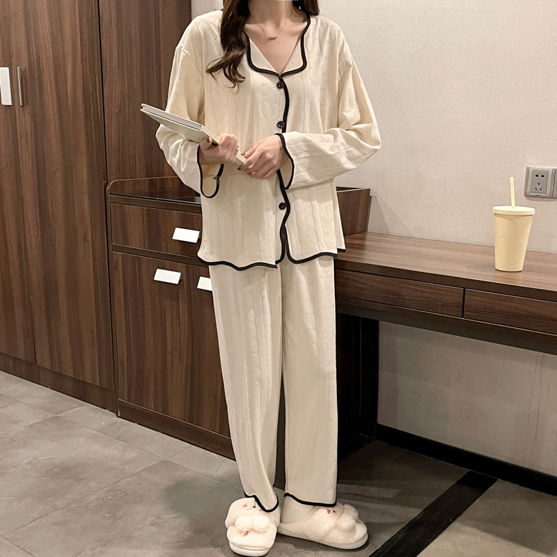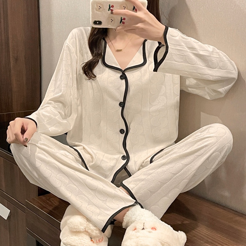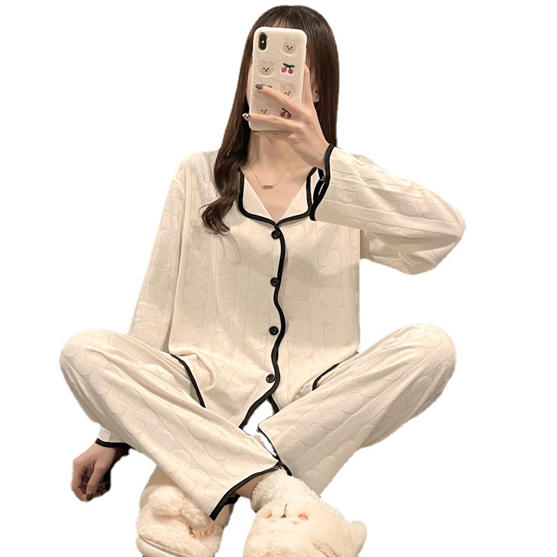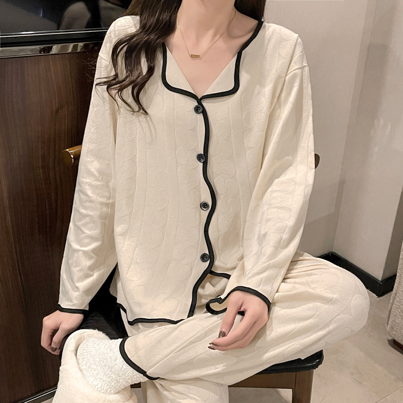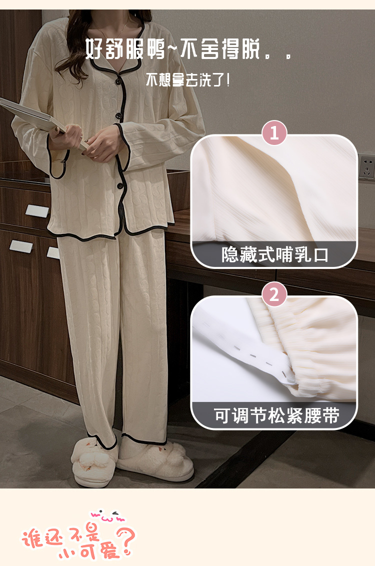 임신 한 여자의 잠옷 자카드 랙 면 봄과 가을 달 의류 V-넥 모유 수유 세트 산후 레저 가정 의류