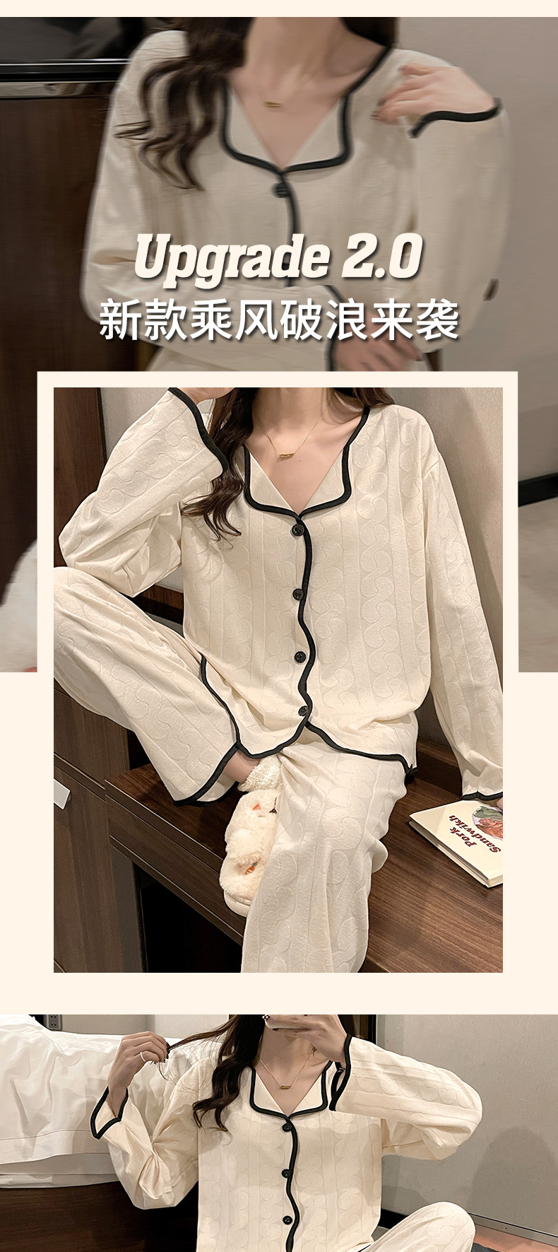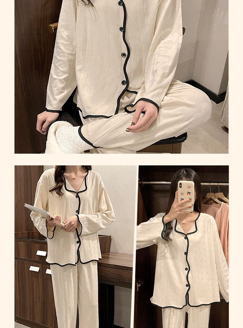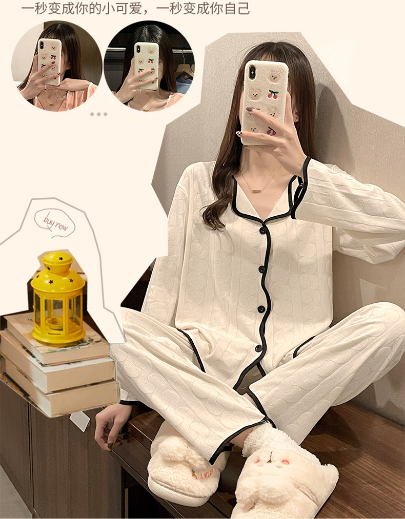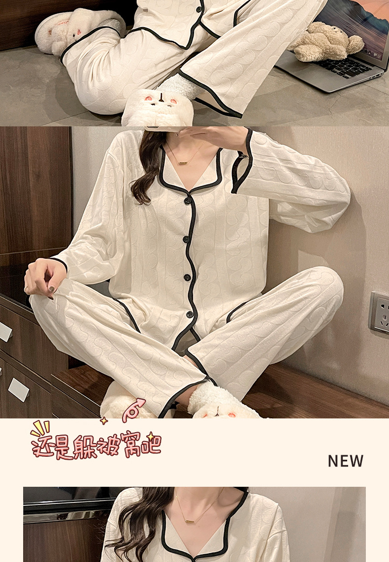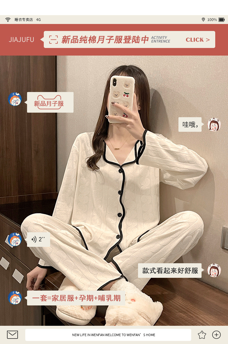 임신 한 여자의 잠옷 자카드 랙 면 봄과 가을 달 의류 V-넥 모유 수유 세트 산후 레저 가정 의류