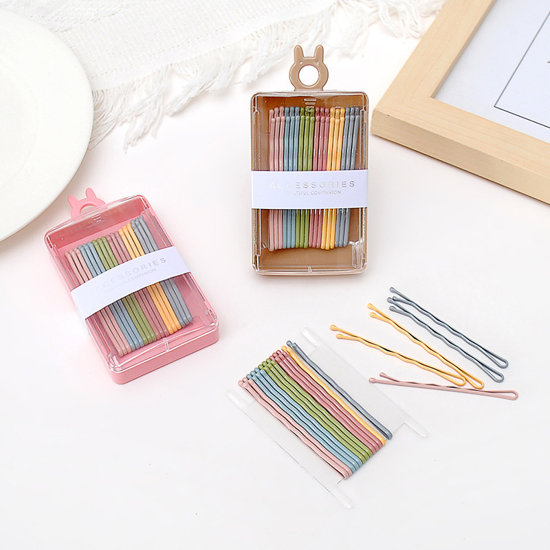 한국 in 간단한 헤어 액세서리 여성용 봄 컬러 앞머리 클립 사이드 클립 블랙 베이스 헤어핀 독립 박스형