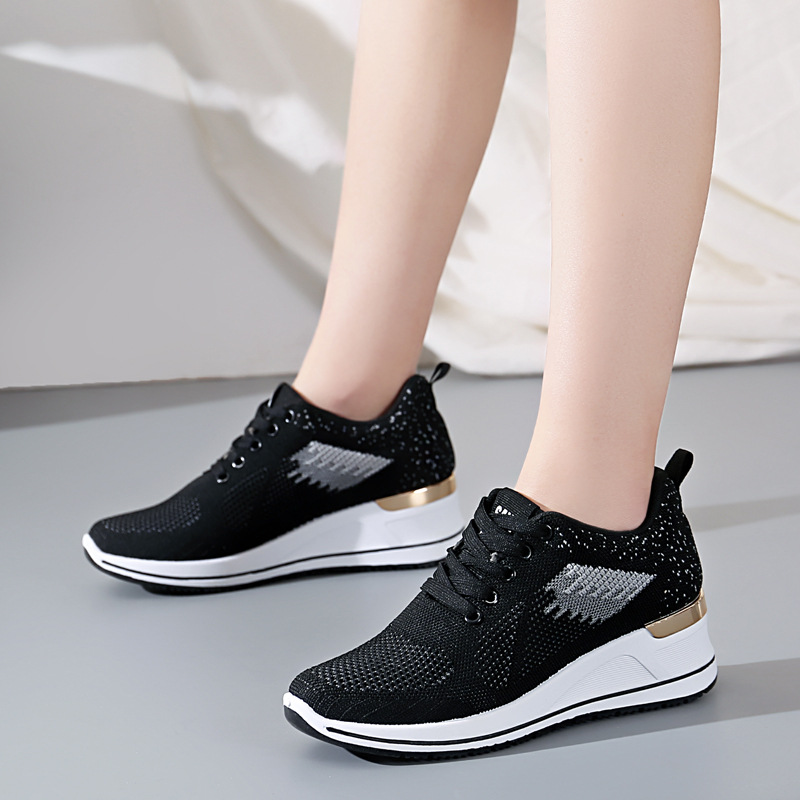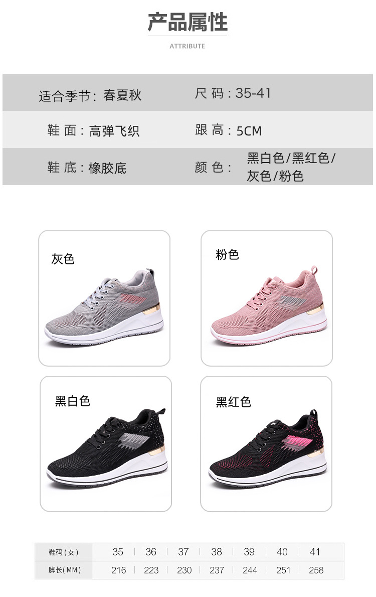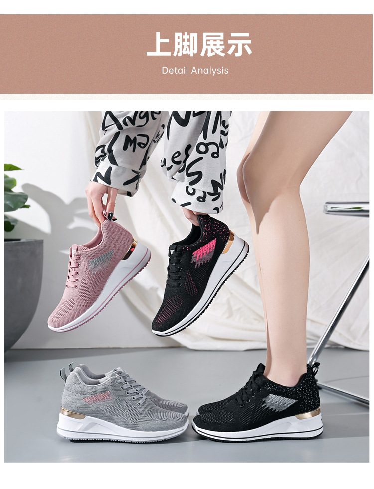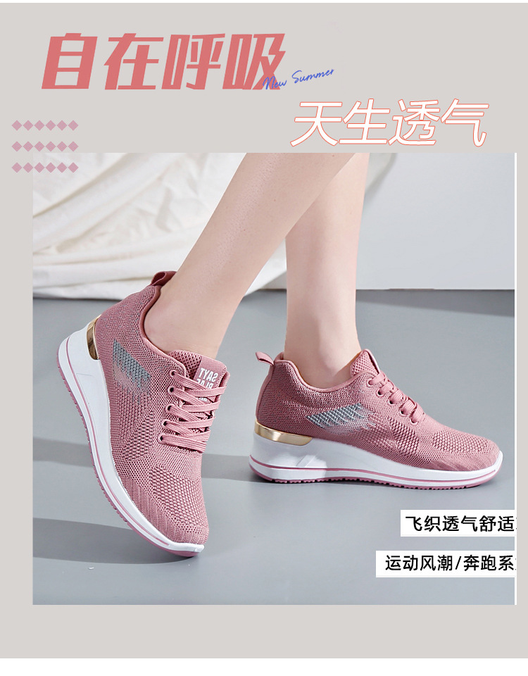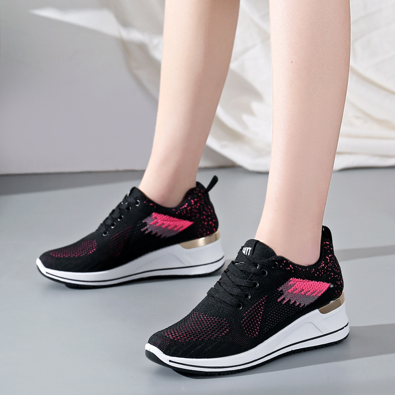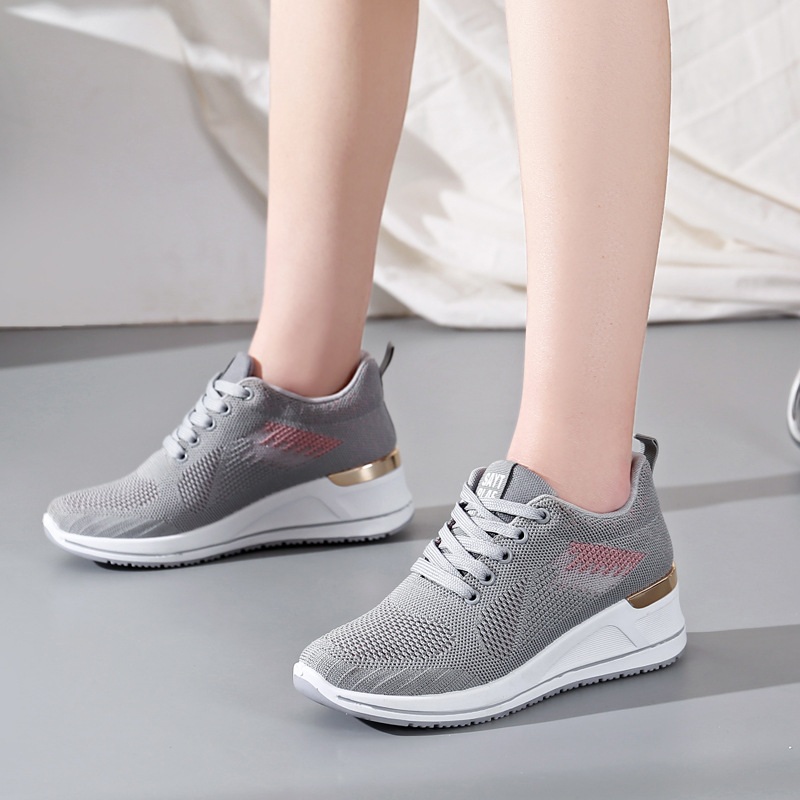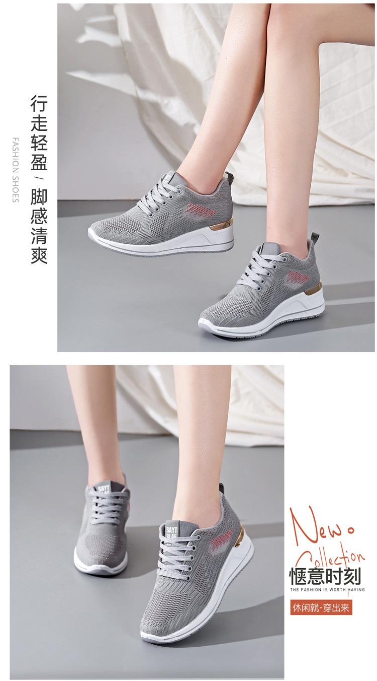 봄 새로운 부드러운 밑창 캐주얼 신발 여성용 통기성 플라잉 메쉬 러닝화 패셔너블한 모든 경기 웨지 스포츠 신발