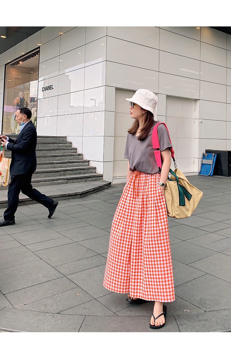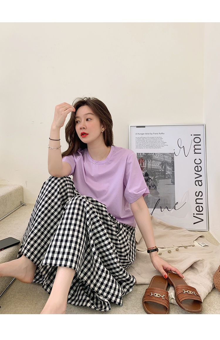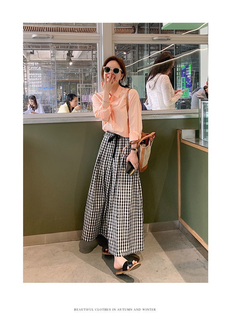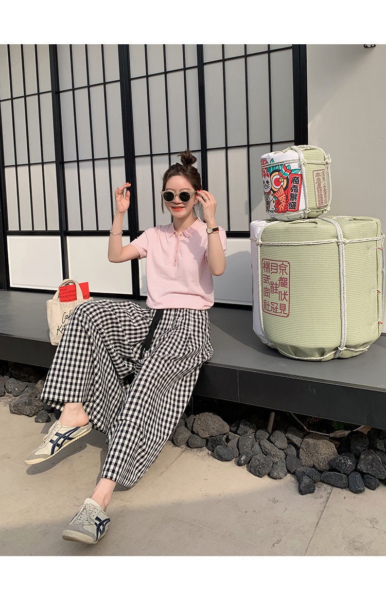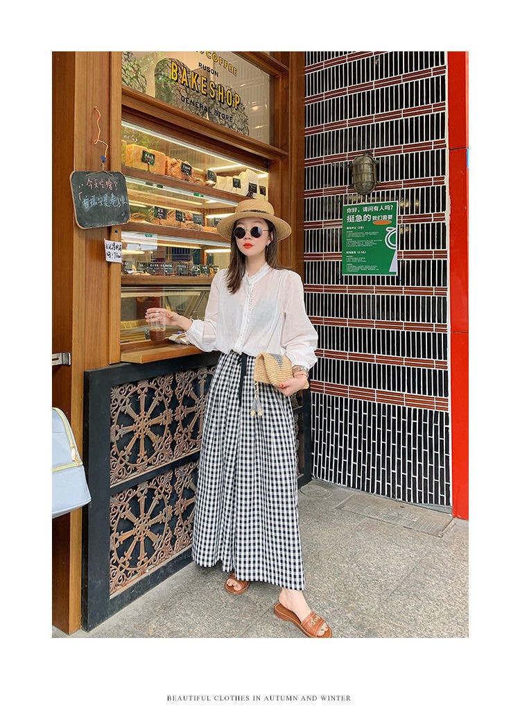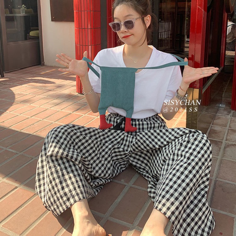 2025 새로운 여름 격자 무늬 넓은 다리 퀼로트 탄성 높은 허리 슬림 다목적 바지 여성을위한 느슨한 캐주얼 바지