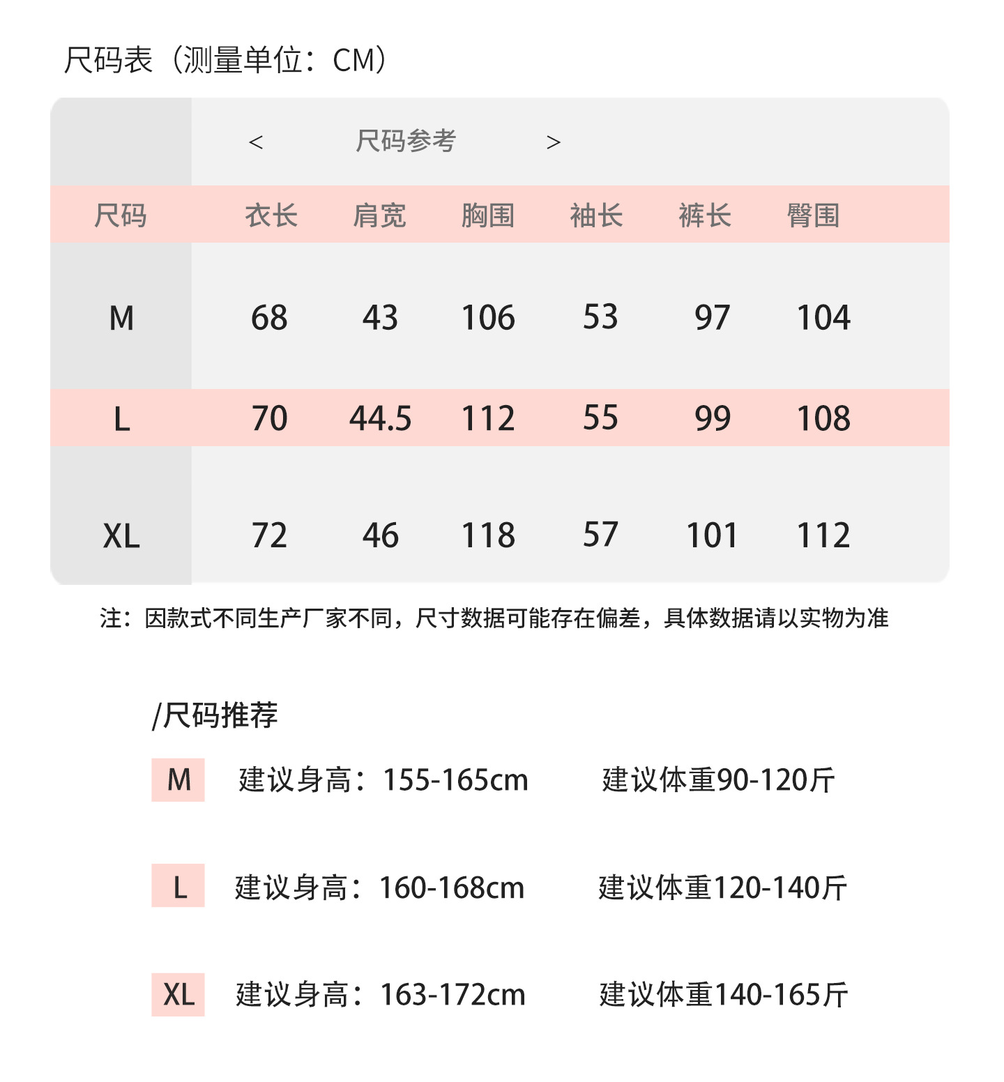 尺码表