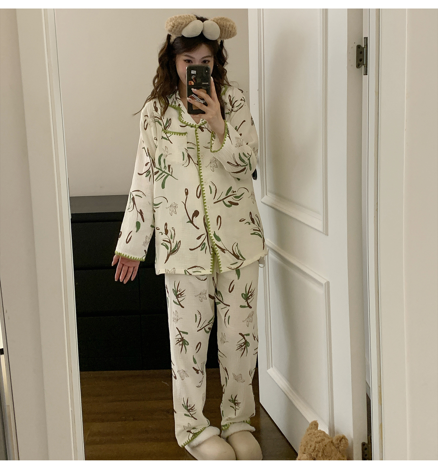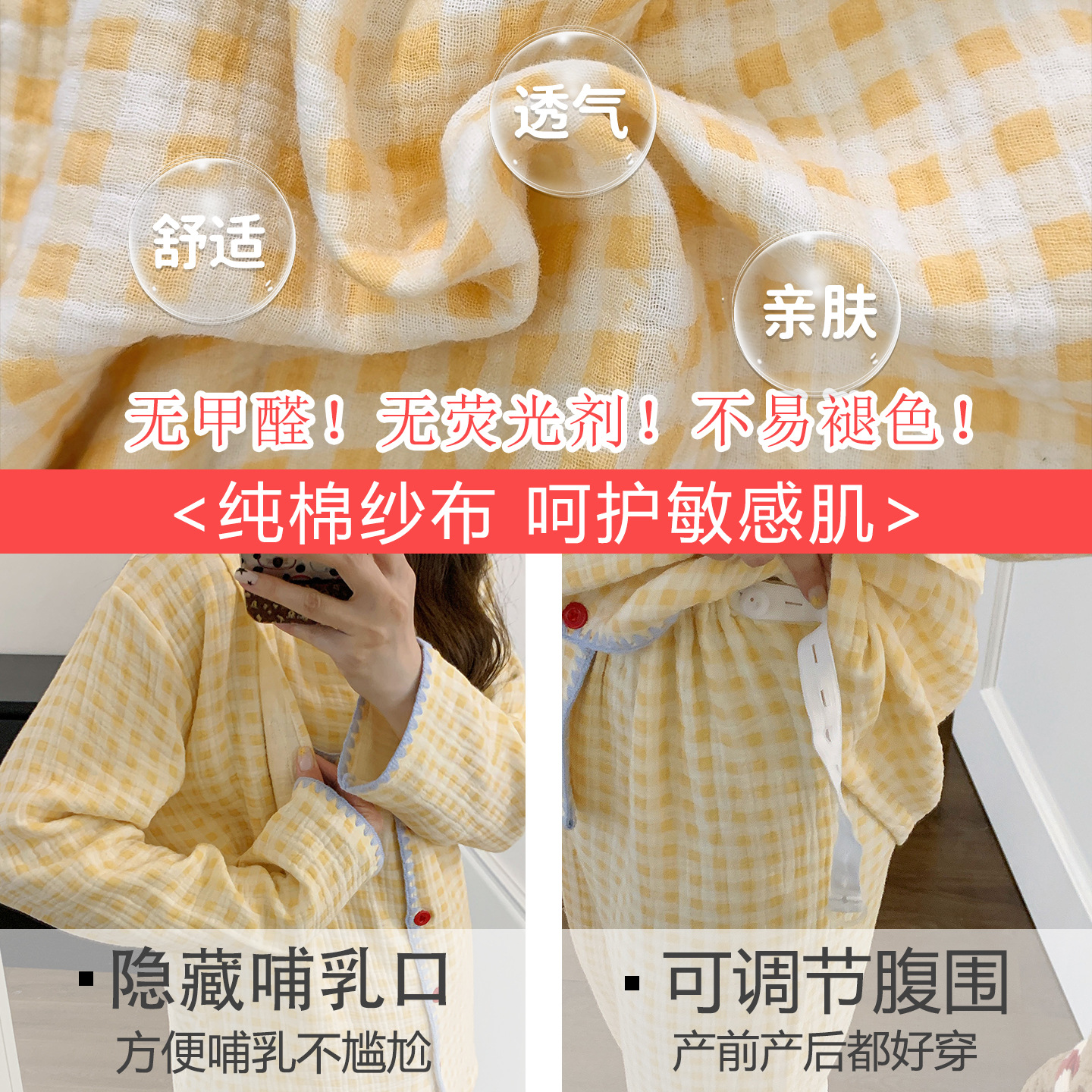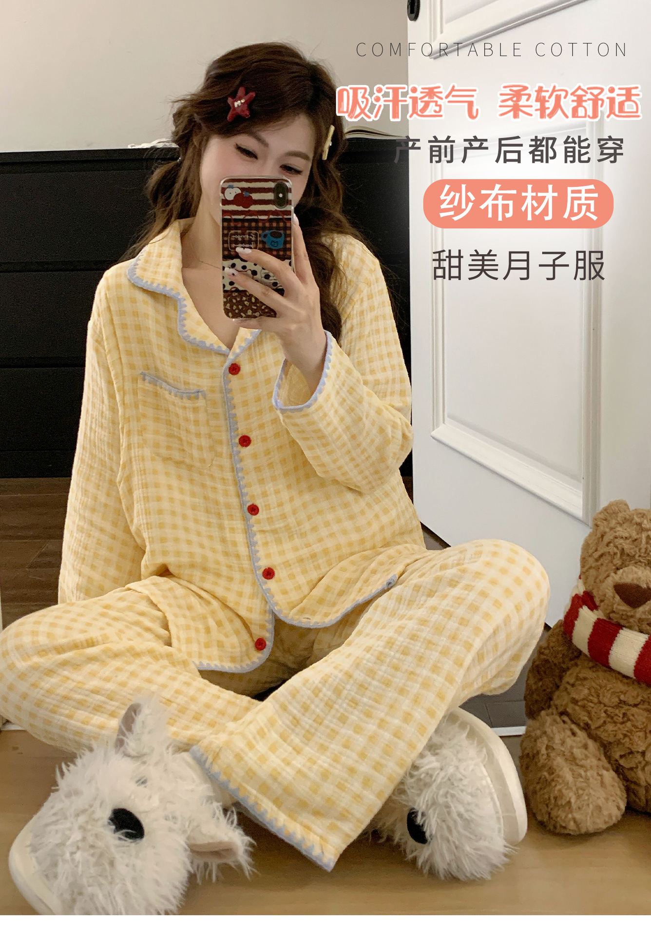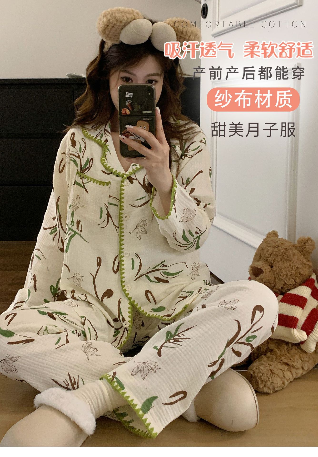 여름 면화 거즈 월간 의류 7 월 산후 8 봄과 가을 얇은 수유 임산부 잠옷 임신 후기 임신 여성
