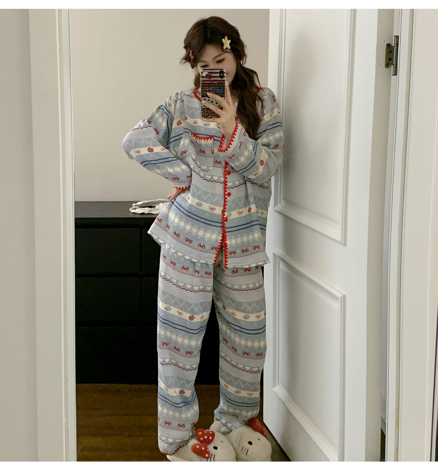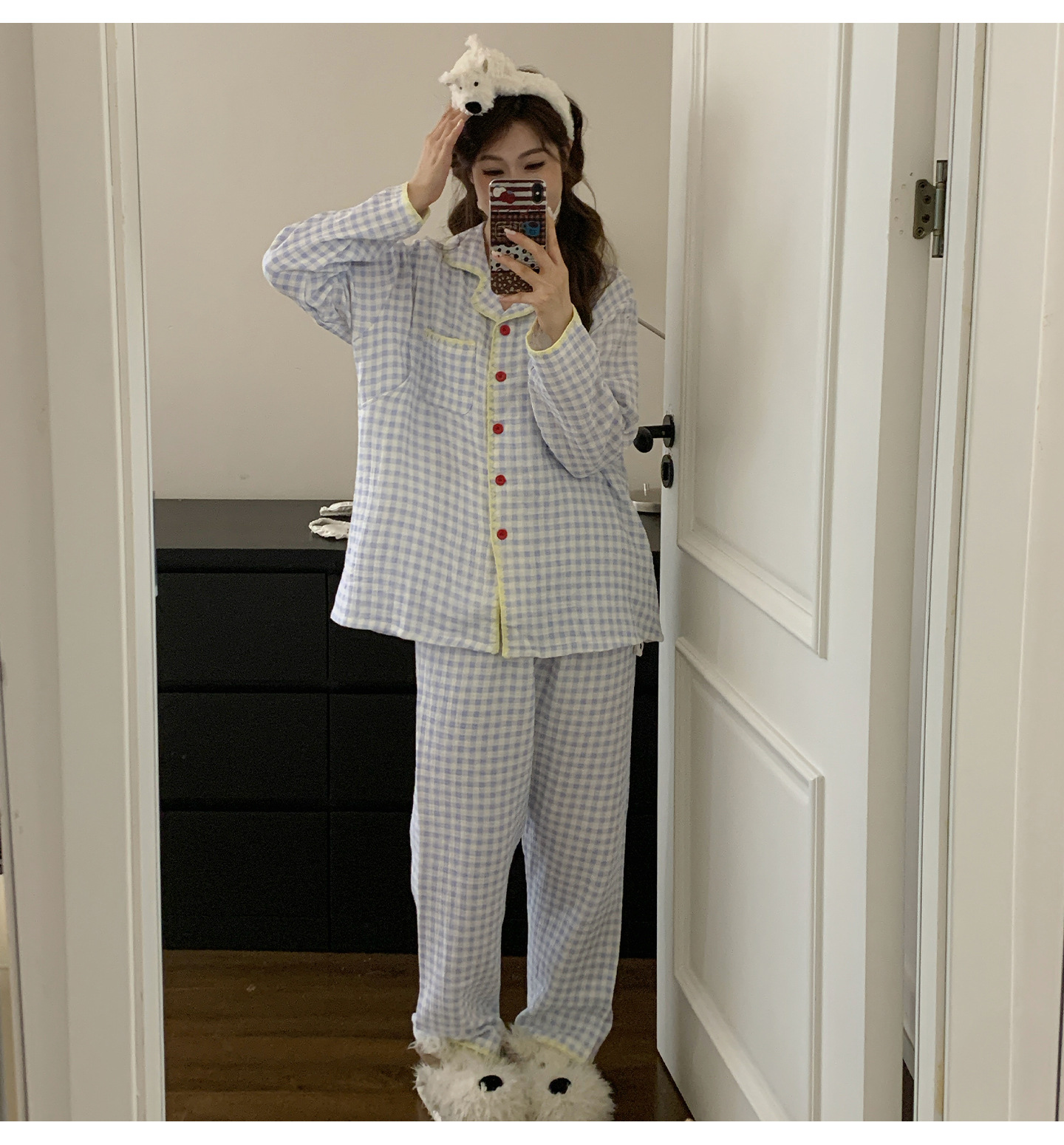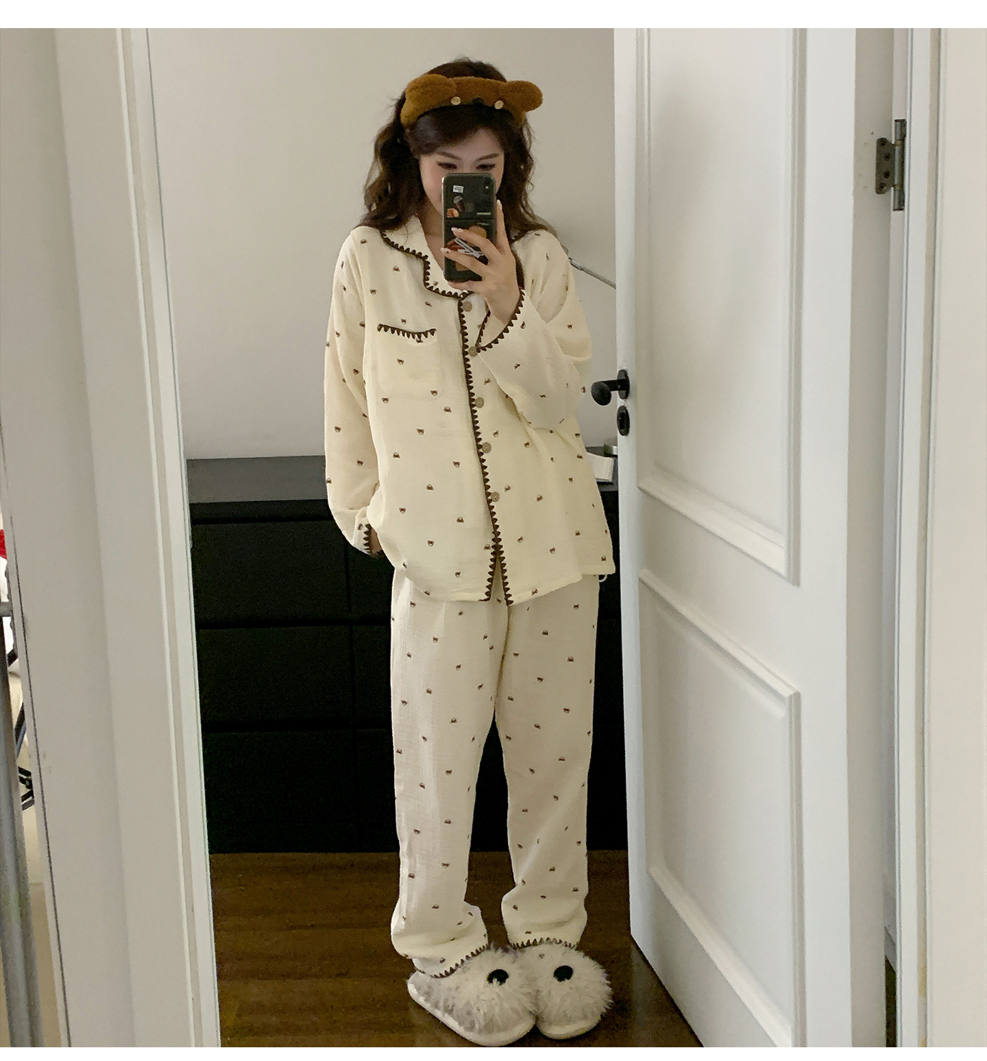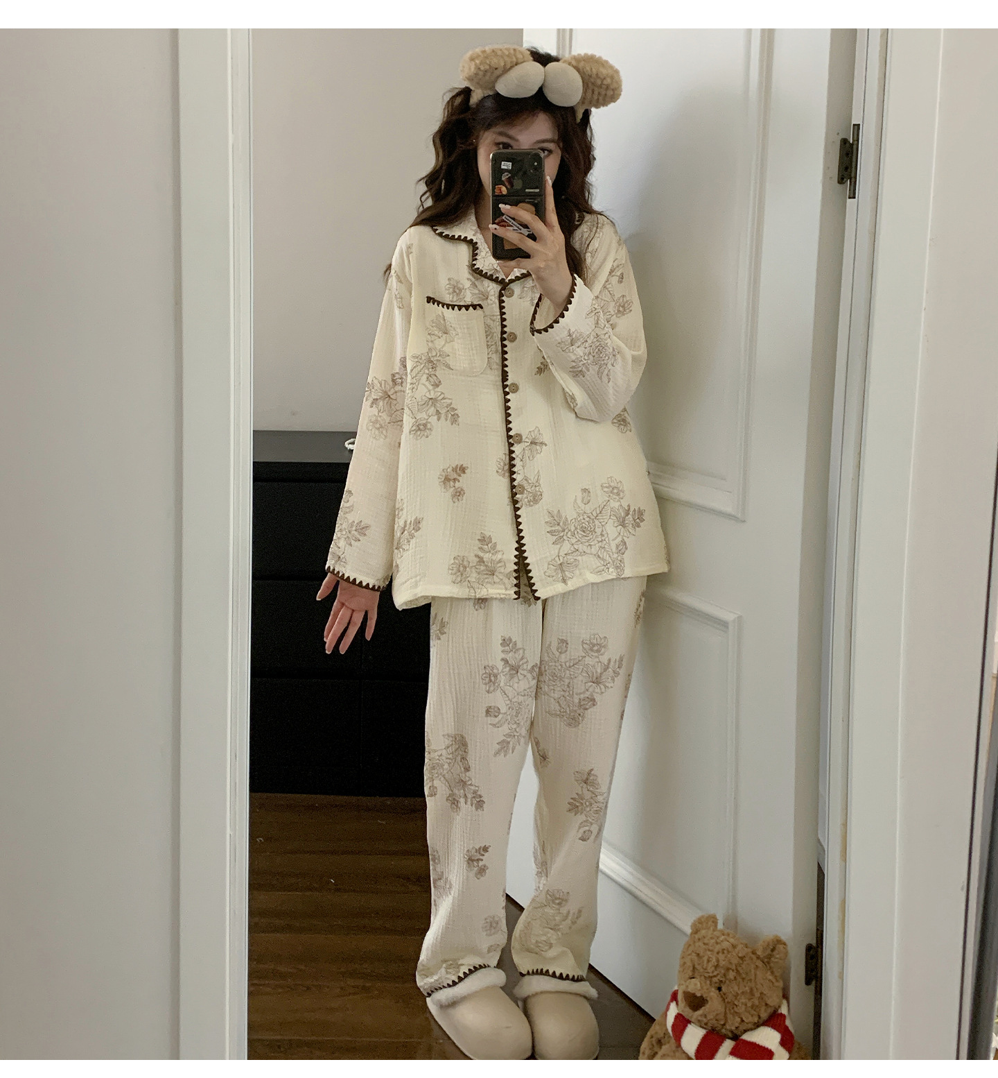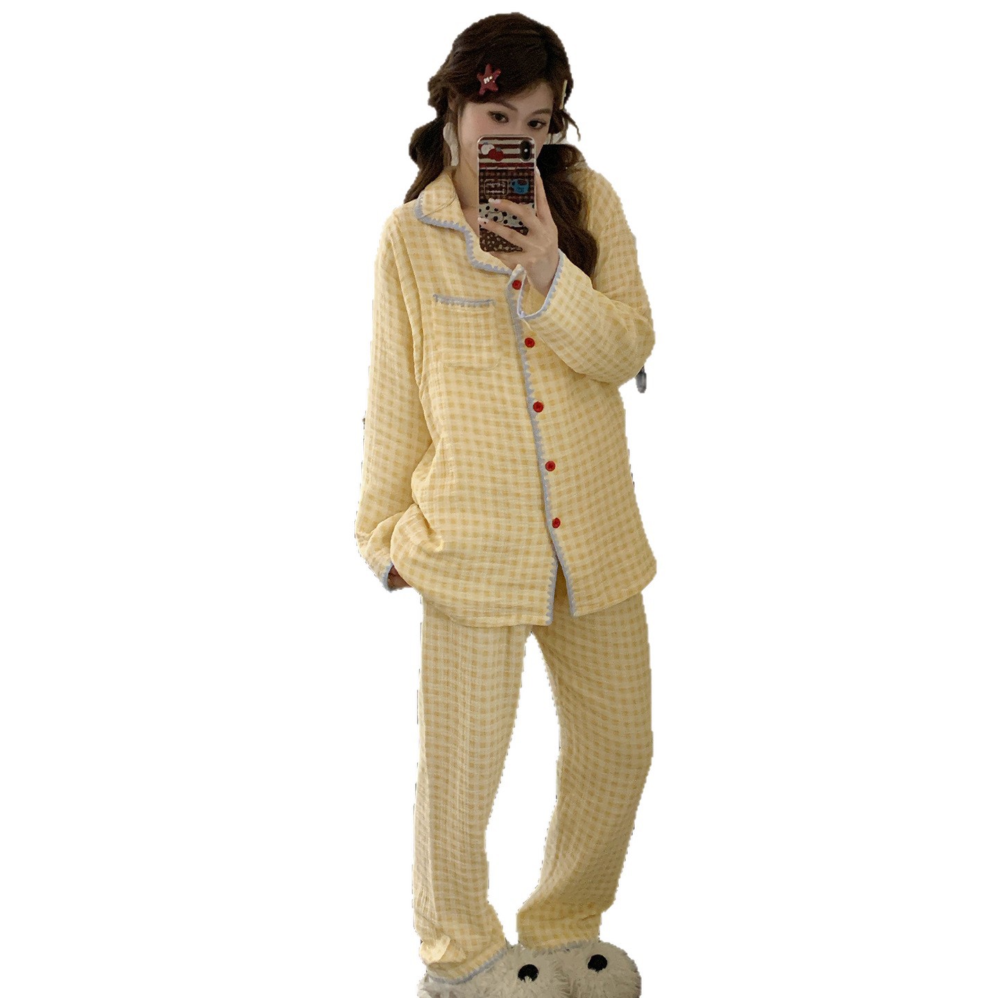 여름 면화 거즈 월간 의류 7 월 산후 8 봄과 가을 얇은 수유 임산부 잠옷 임신 후기 임신 여성