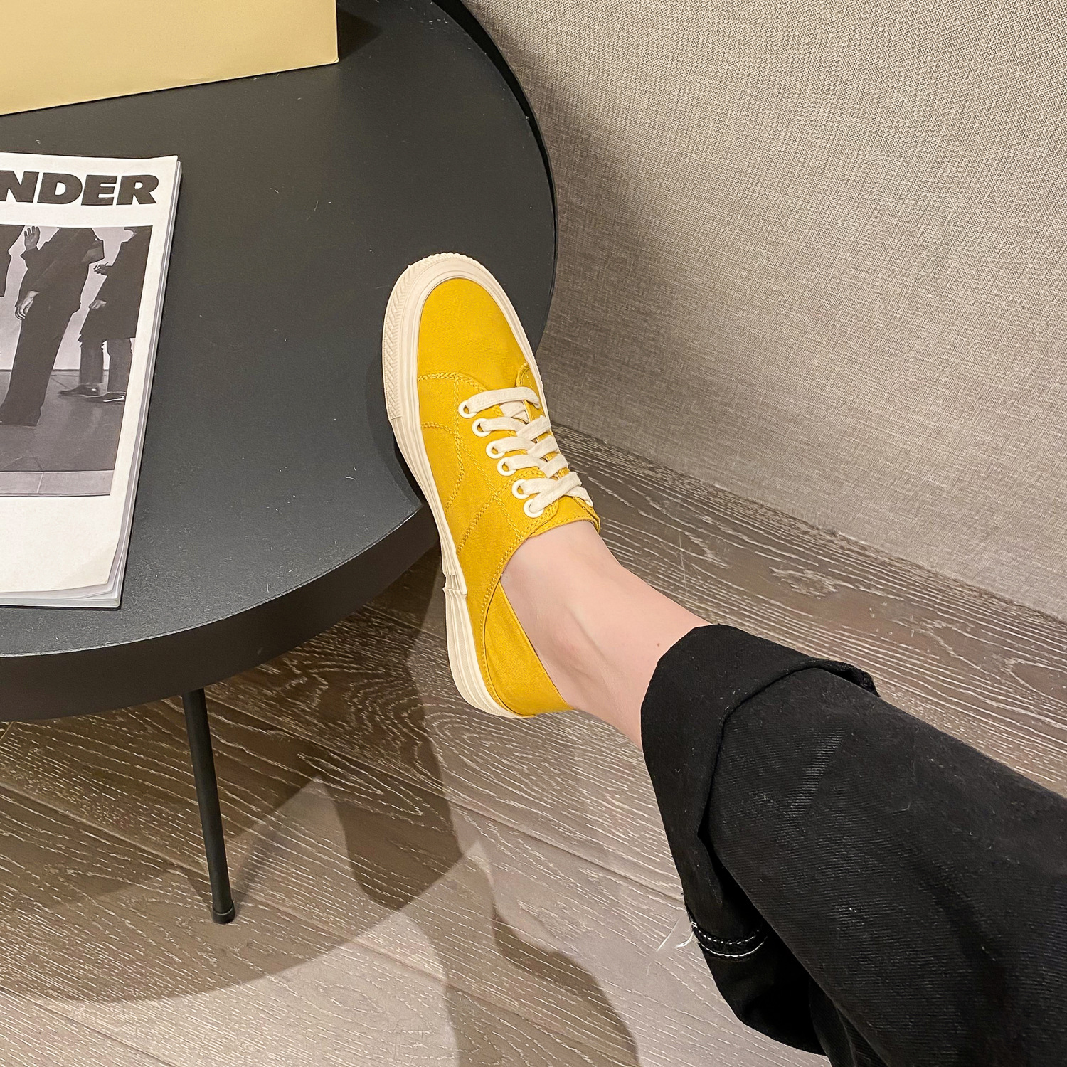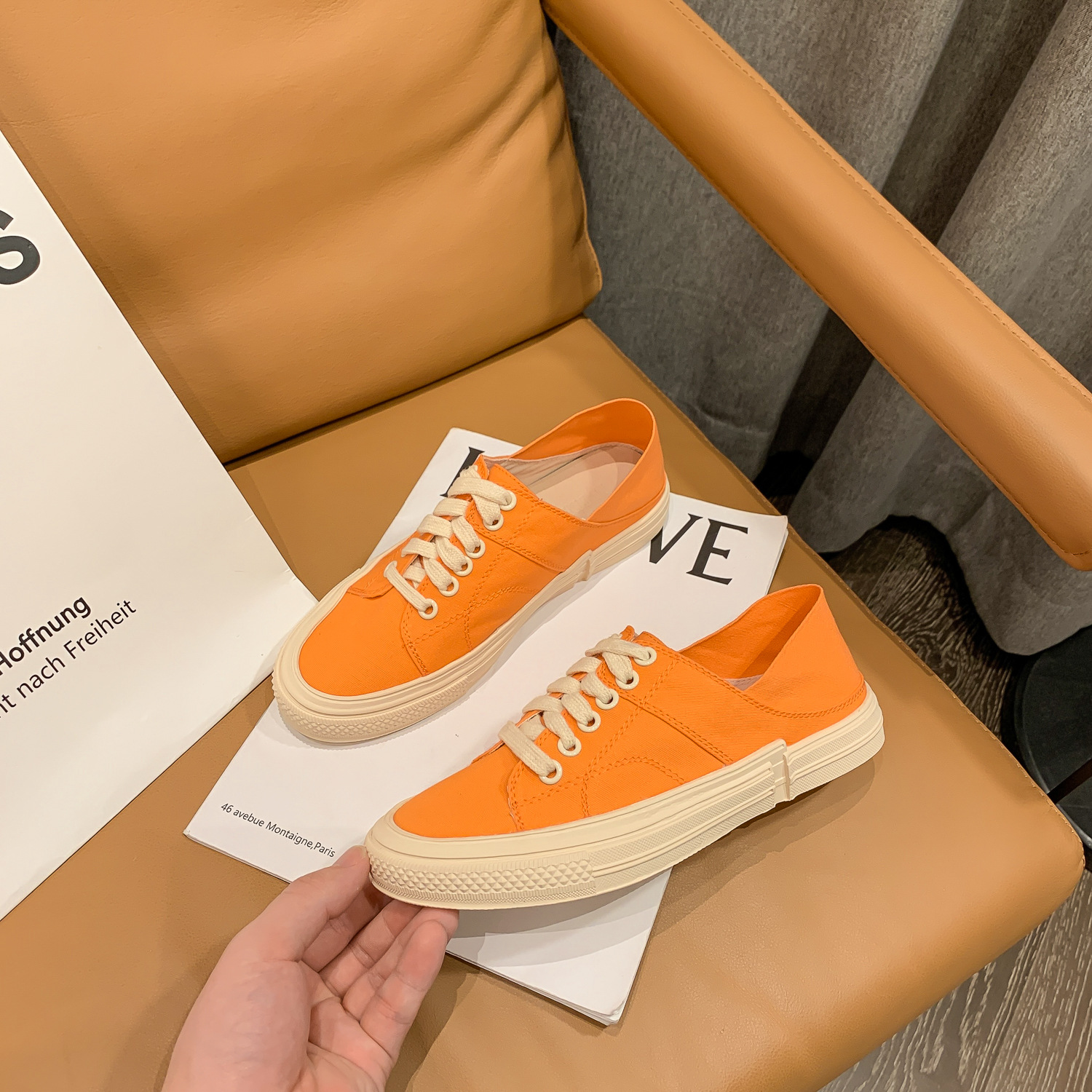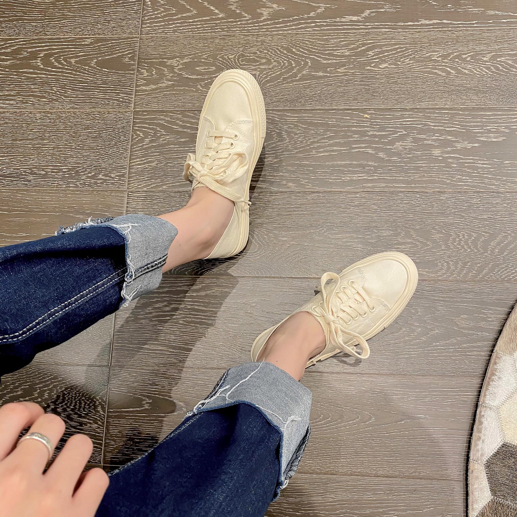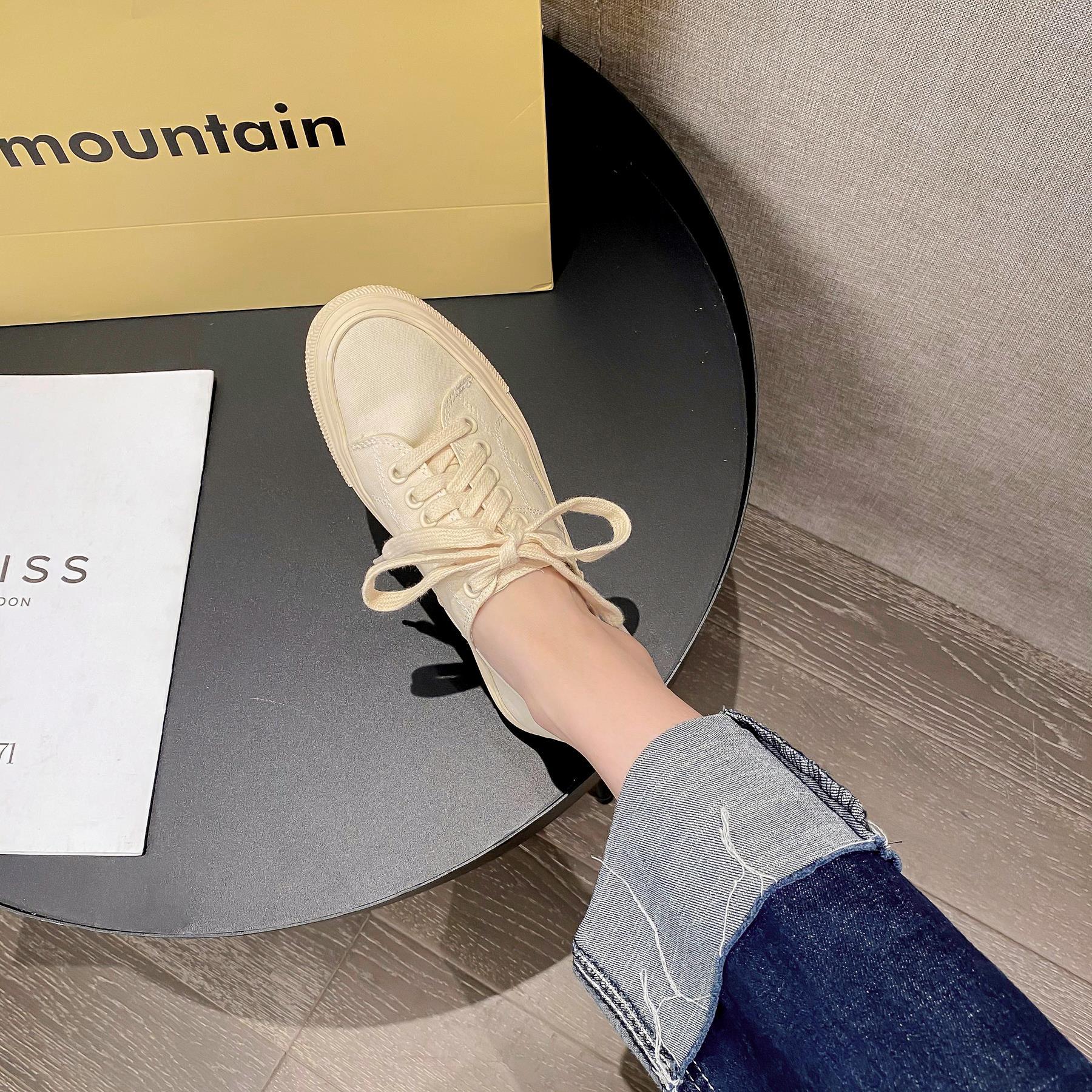 캐주얼 투웨어 캔버스 신발 여성 통기성 2024 봄 새 스타일 보드 신발 레이스 업 올매치 캐주얼 신발 스텝 힐 캔디 컬러