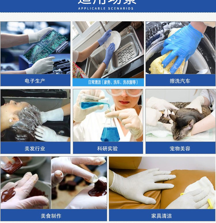 일회용 장갑 상업용 도매 케이터링 식품 등급 니트릴 고무 라텍스 니트릴 플라스틱 PE 국경 간 판매 히트 상품