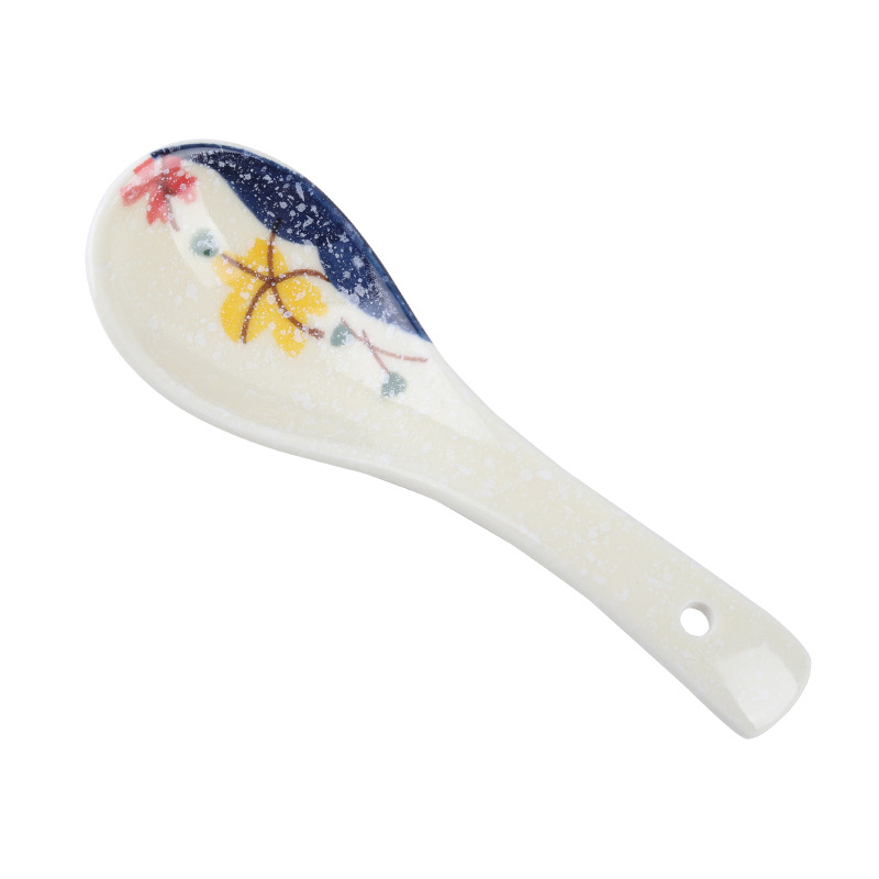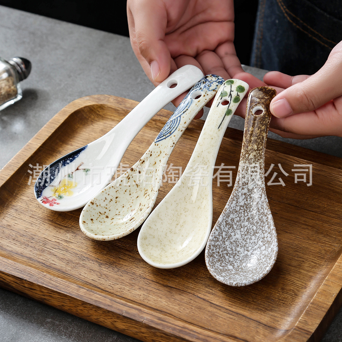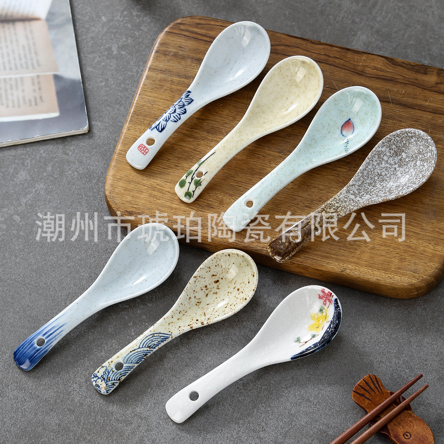 일본식 세라믹 스푼 손으로 그린 크리에이티브 다이닝 스푼 호텔 가정용 식기 언더글레이즈 컬러 쌀 스푼 긴 손잡이 스푼 수프 스푼