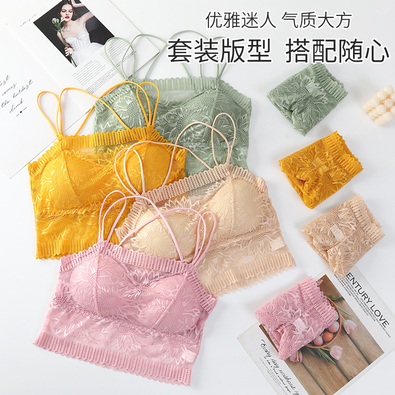 아름 다운 다시 포장 된 가슴 세트 여름 섹시한 눈부심 방지 여성용 브래지어 스틸 링없이 얇은 어깨 스트랩 조끼 가슴 패드 속옷