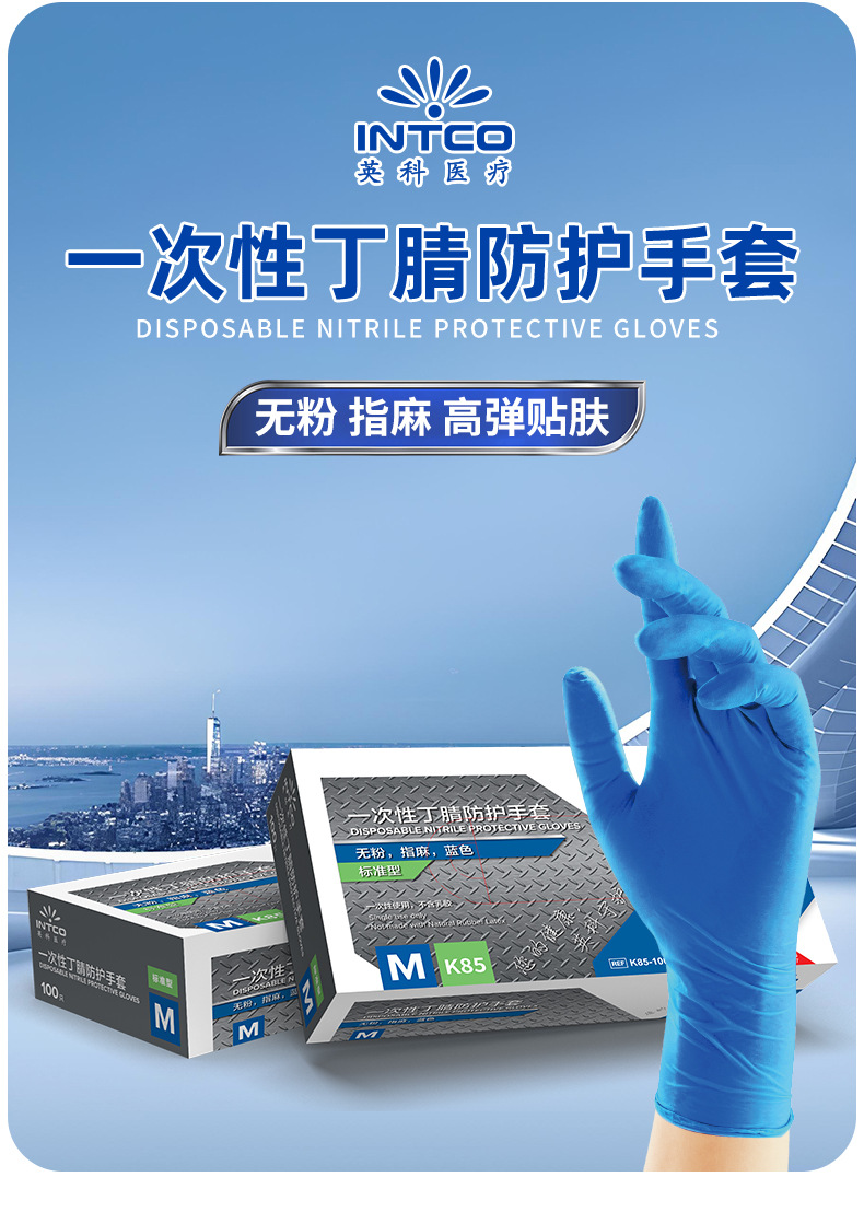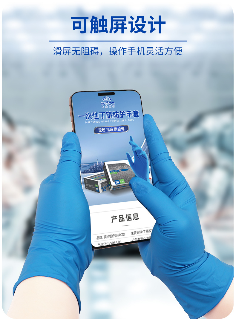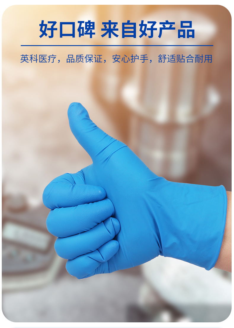 Yingke 일회용 니트릴 부타디엔 장갑 분말 프리 고탄성 내마모성 노동 보호 특수 장갑 표준 도매 재고 있음