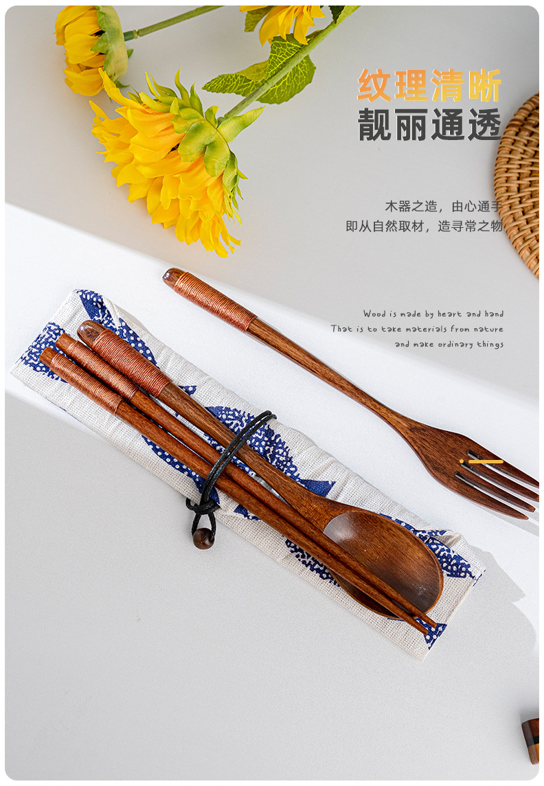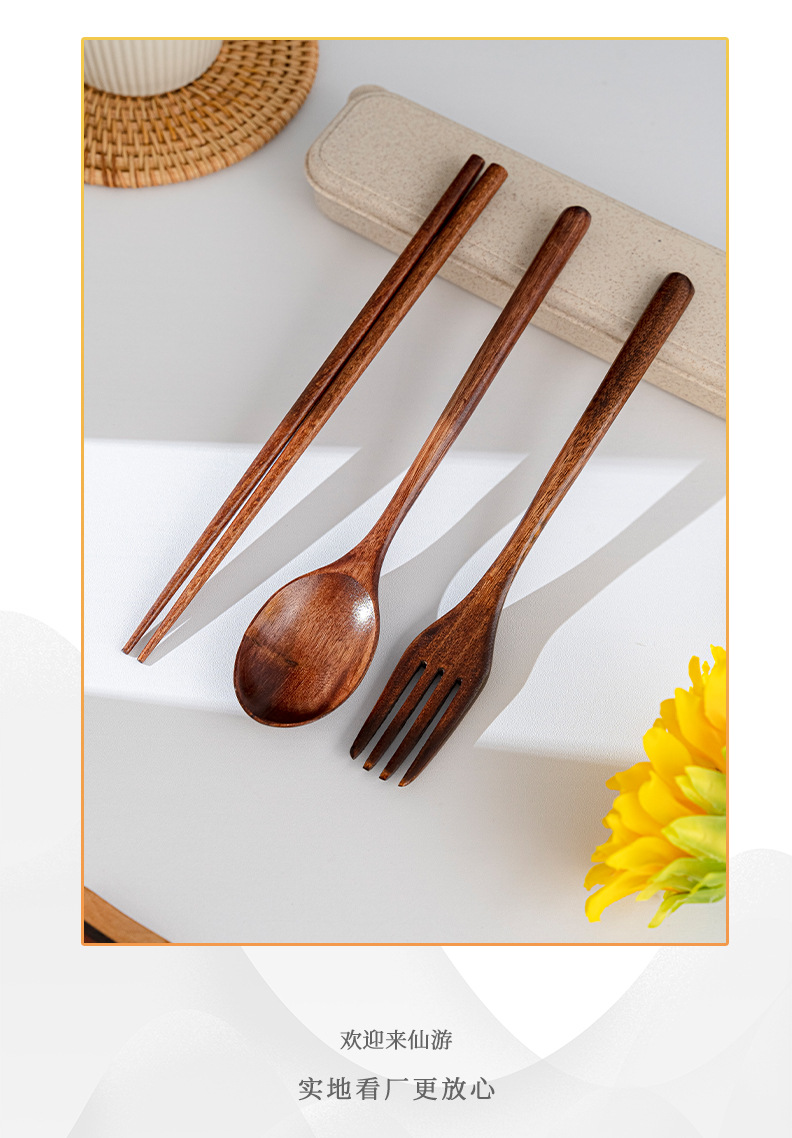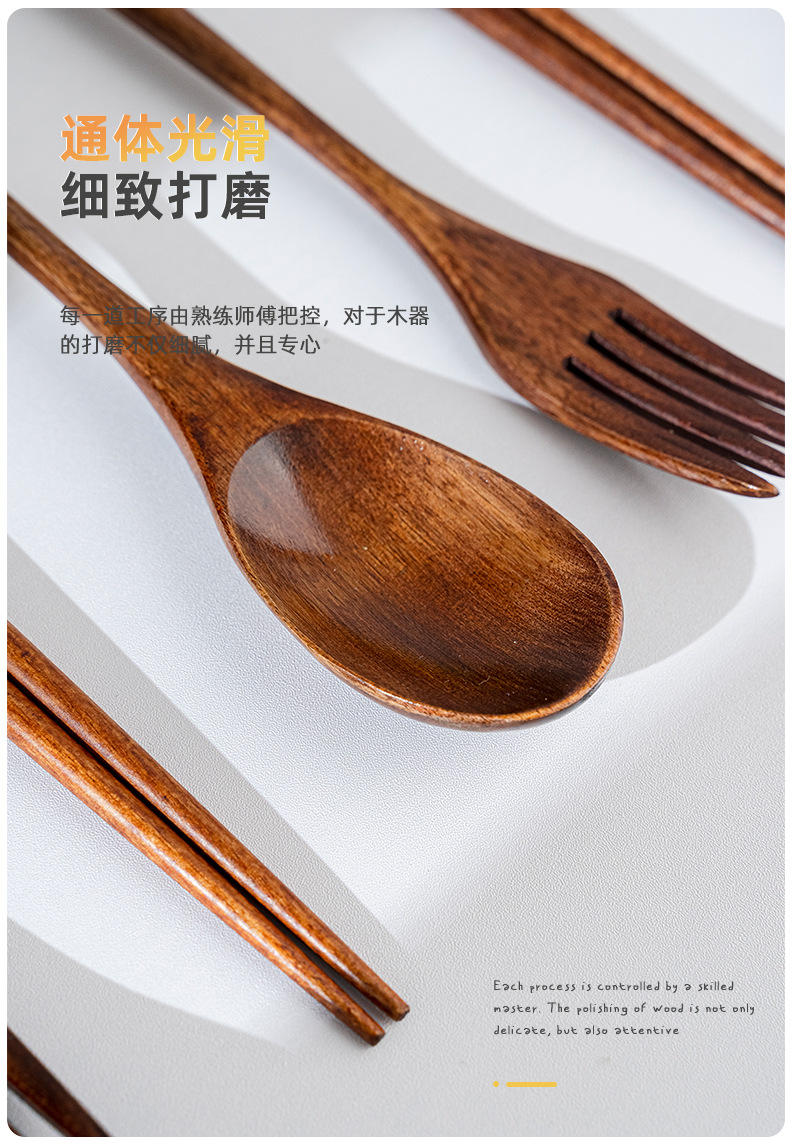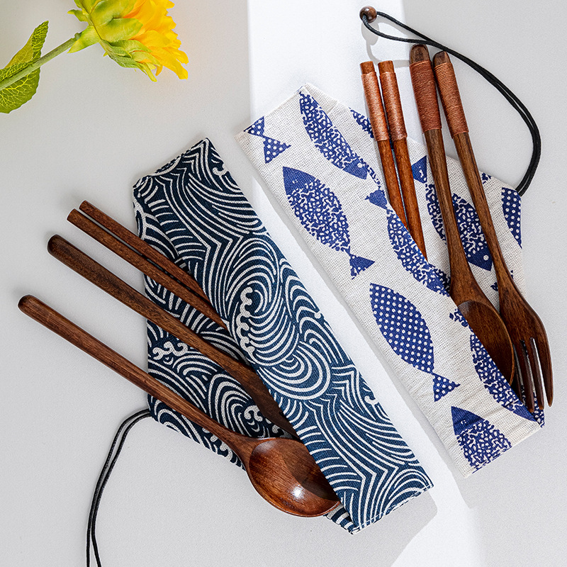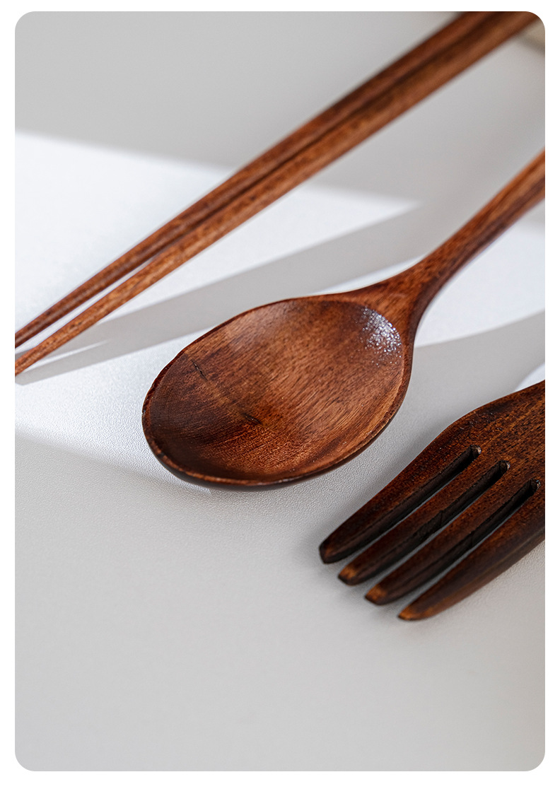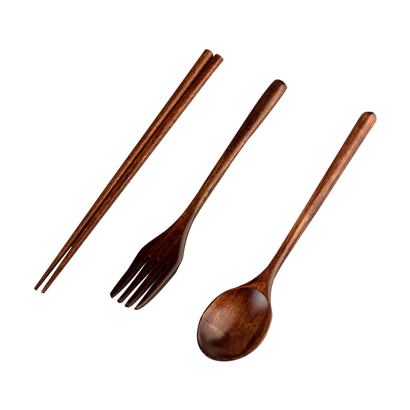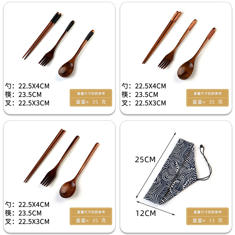 일본 나무 식기 젓가락 포크 스푼 학생 일 여행 휴대용 세트 나무 숟가락 나무 포크 창조적 인 도매