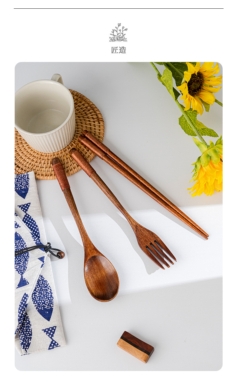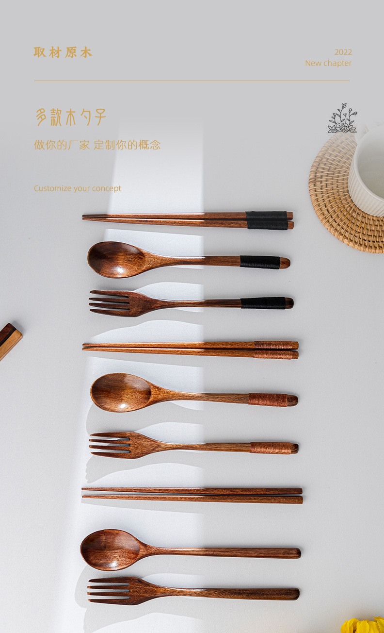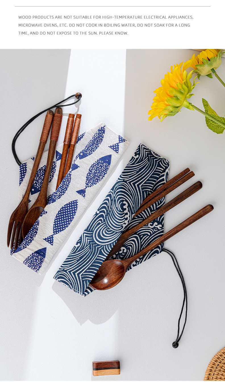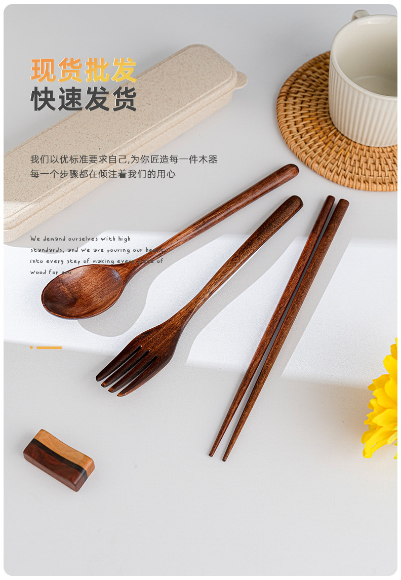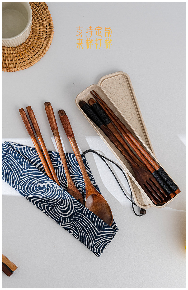 일본 나무 식기 젓가락 포크 스푼 학생 일 여행 휴대용 세트 나무 숟가락 나무 포크 창조적 인 도매