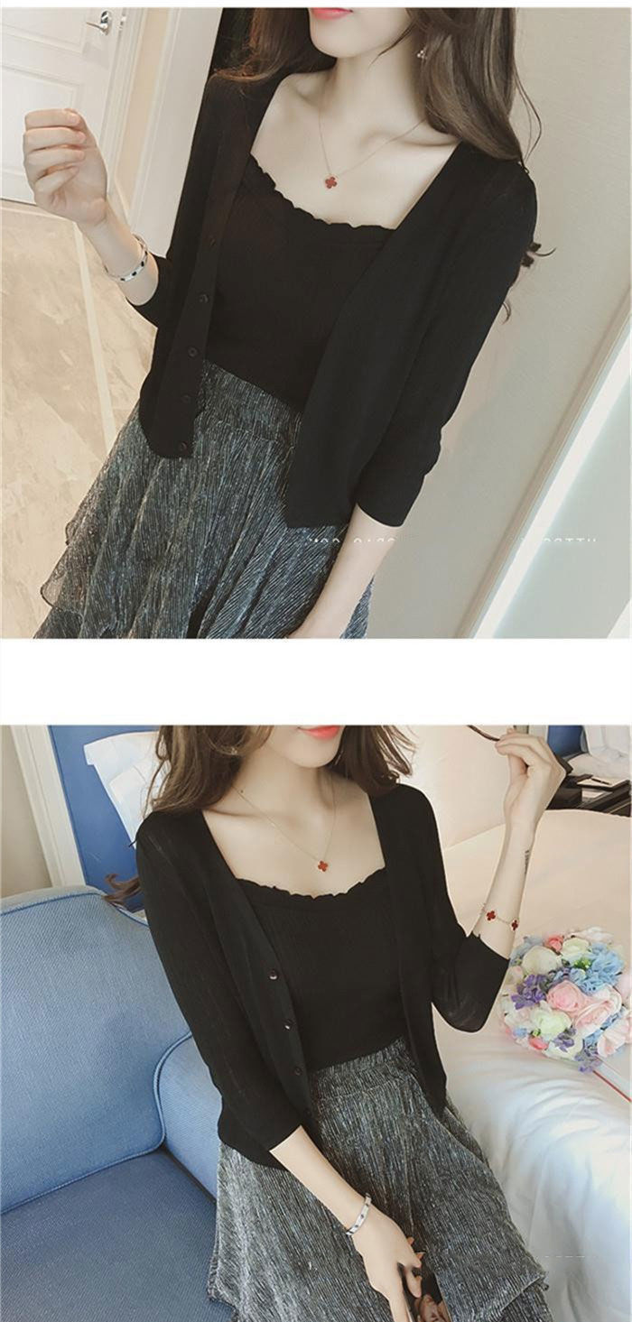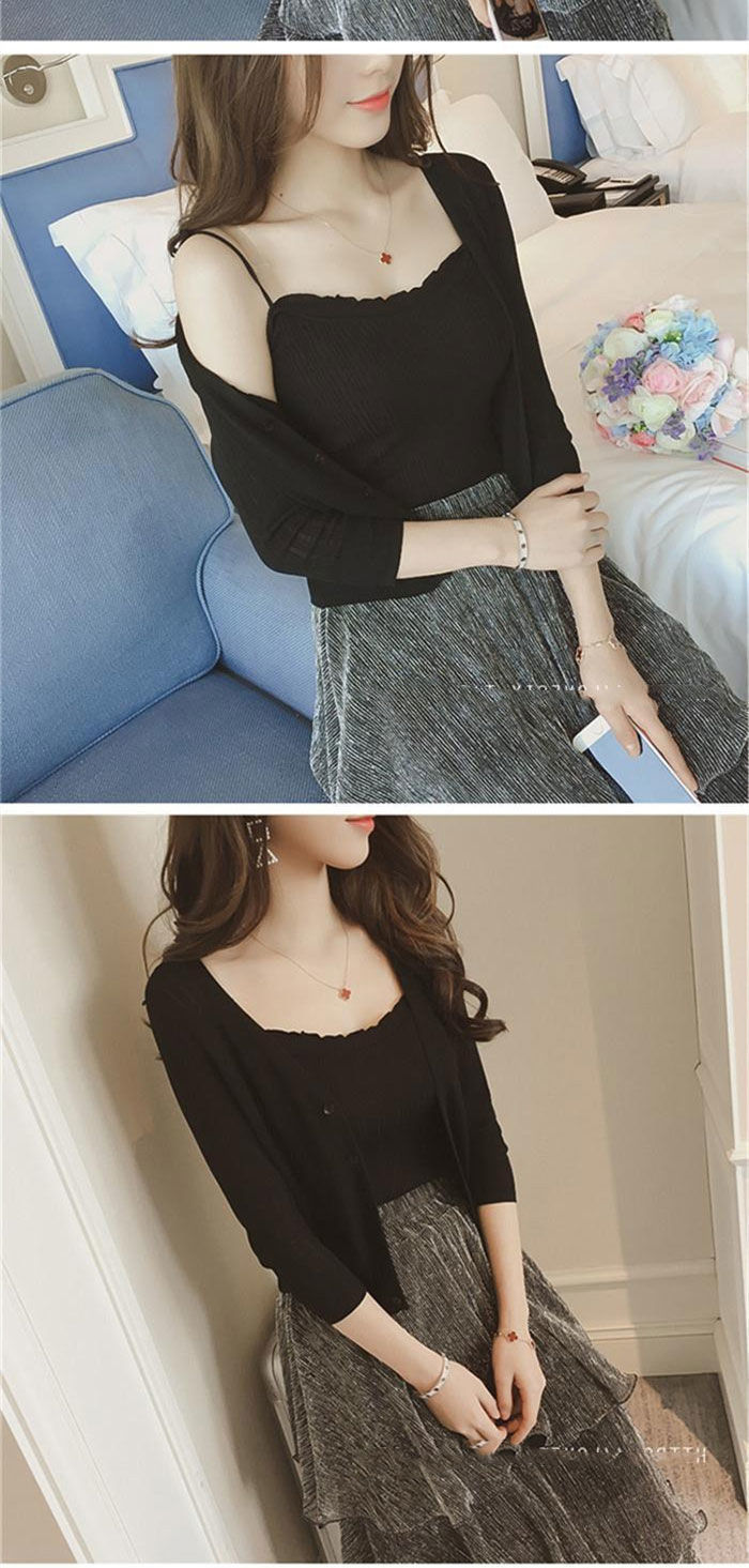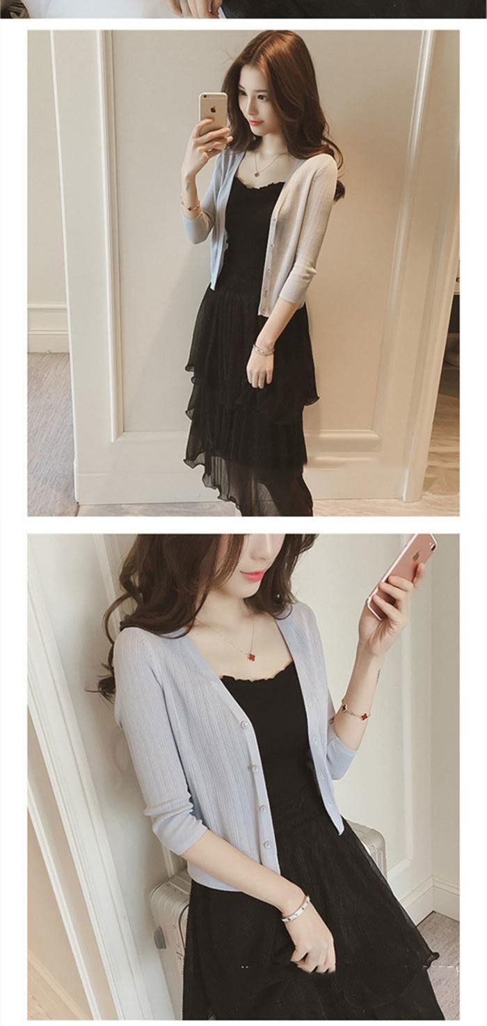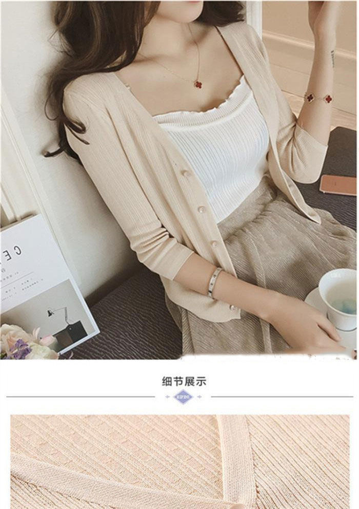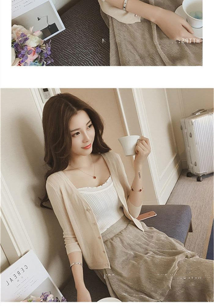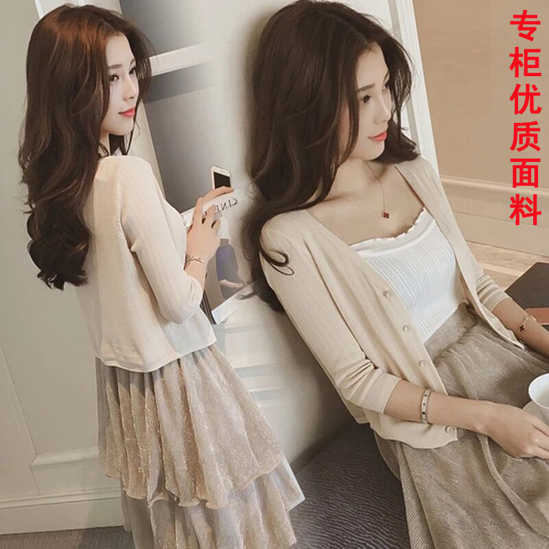 여름 코트 여성용 얇은 모든 매치 스몰 숄 니트 가디건 봄과 가을 자외선 차단제 의류 7 점 소매가있는 울트라 쇼트 매칭 스커트