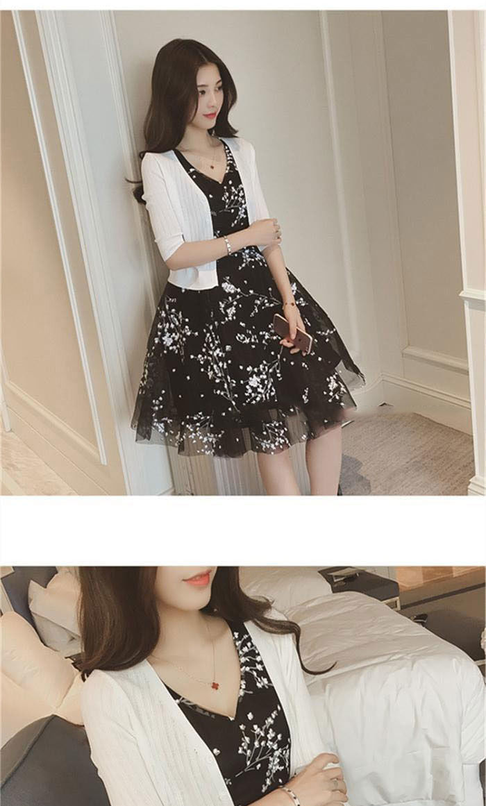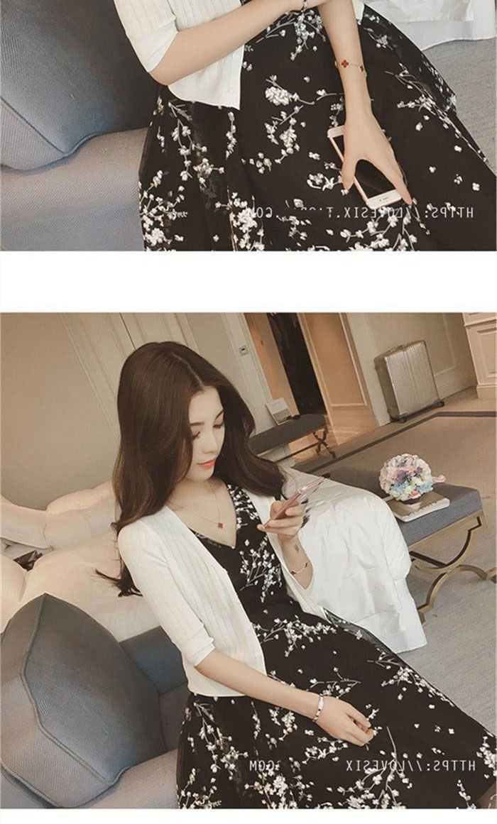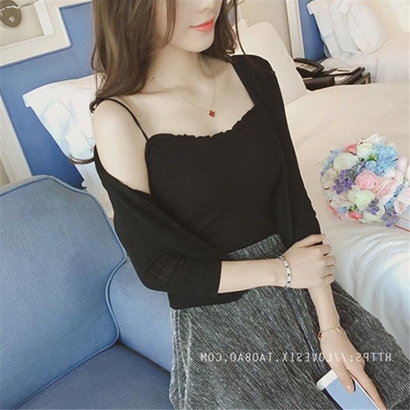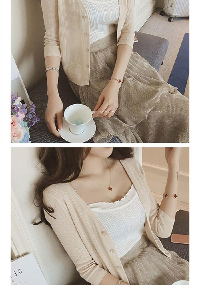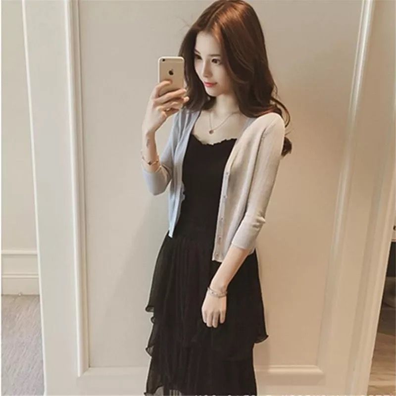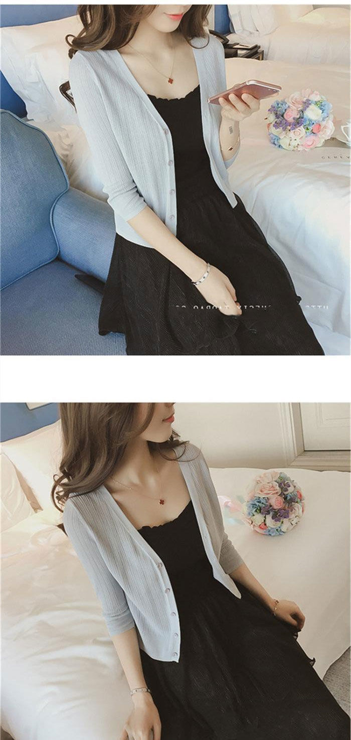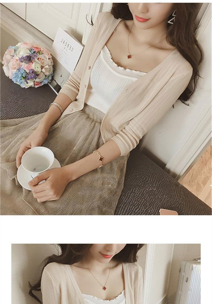 여름 코트 여성용 얇은 모든 매치 스몰 숄 니트 가디건 봄과 가을 자외선 차단제 의류 7 점 소매가있는 울트라 쇼트 매칭 스커트