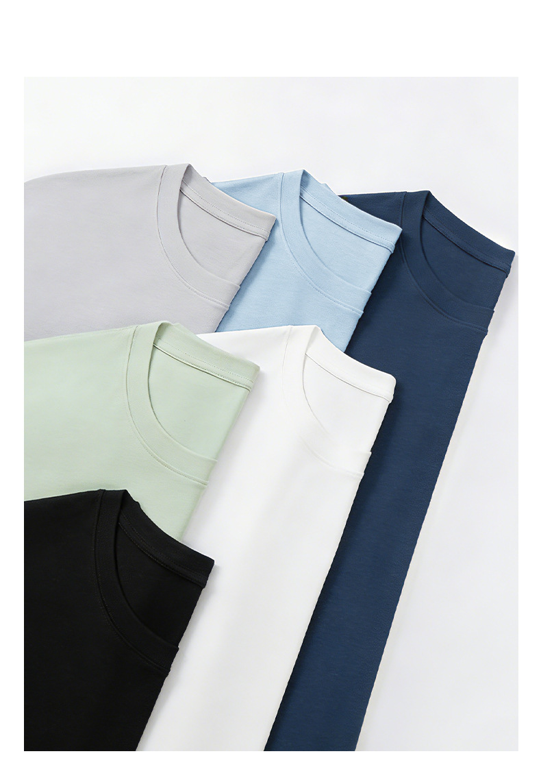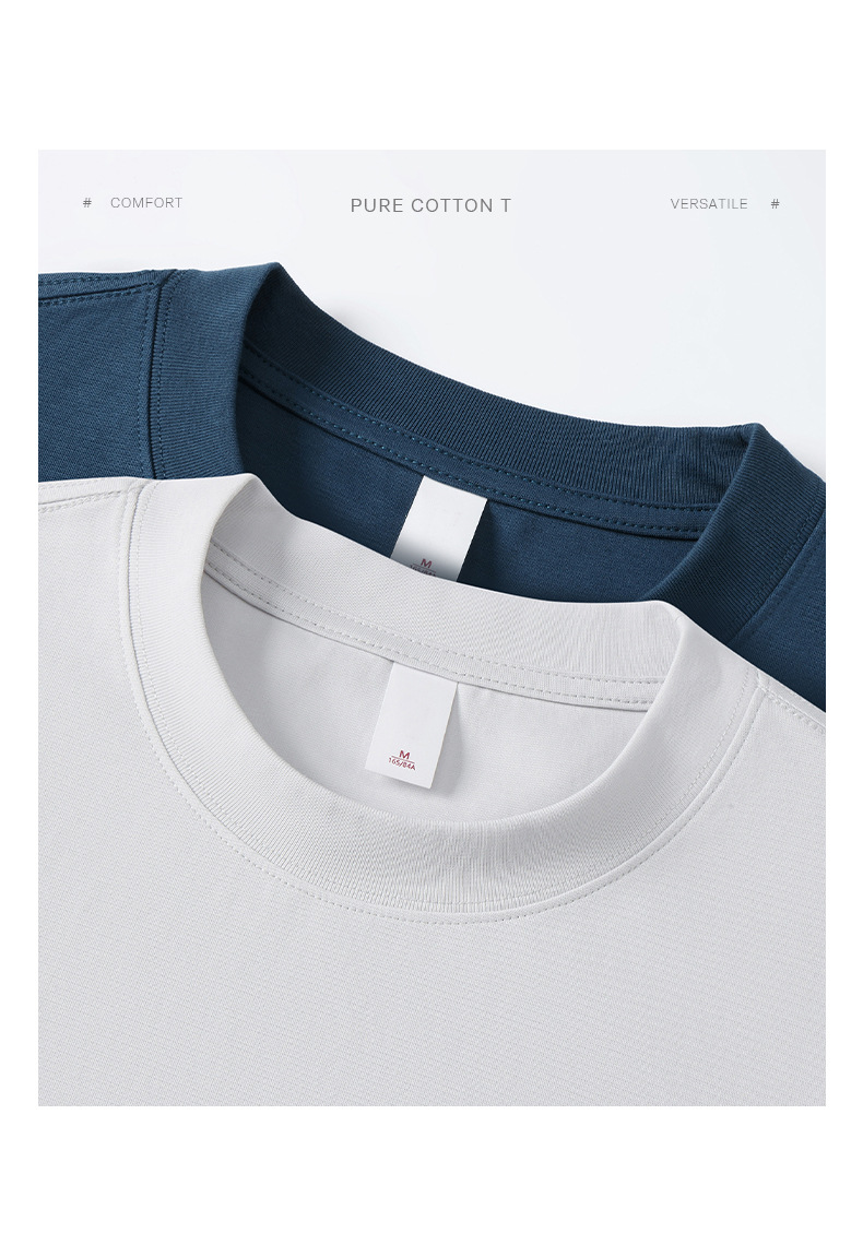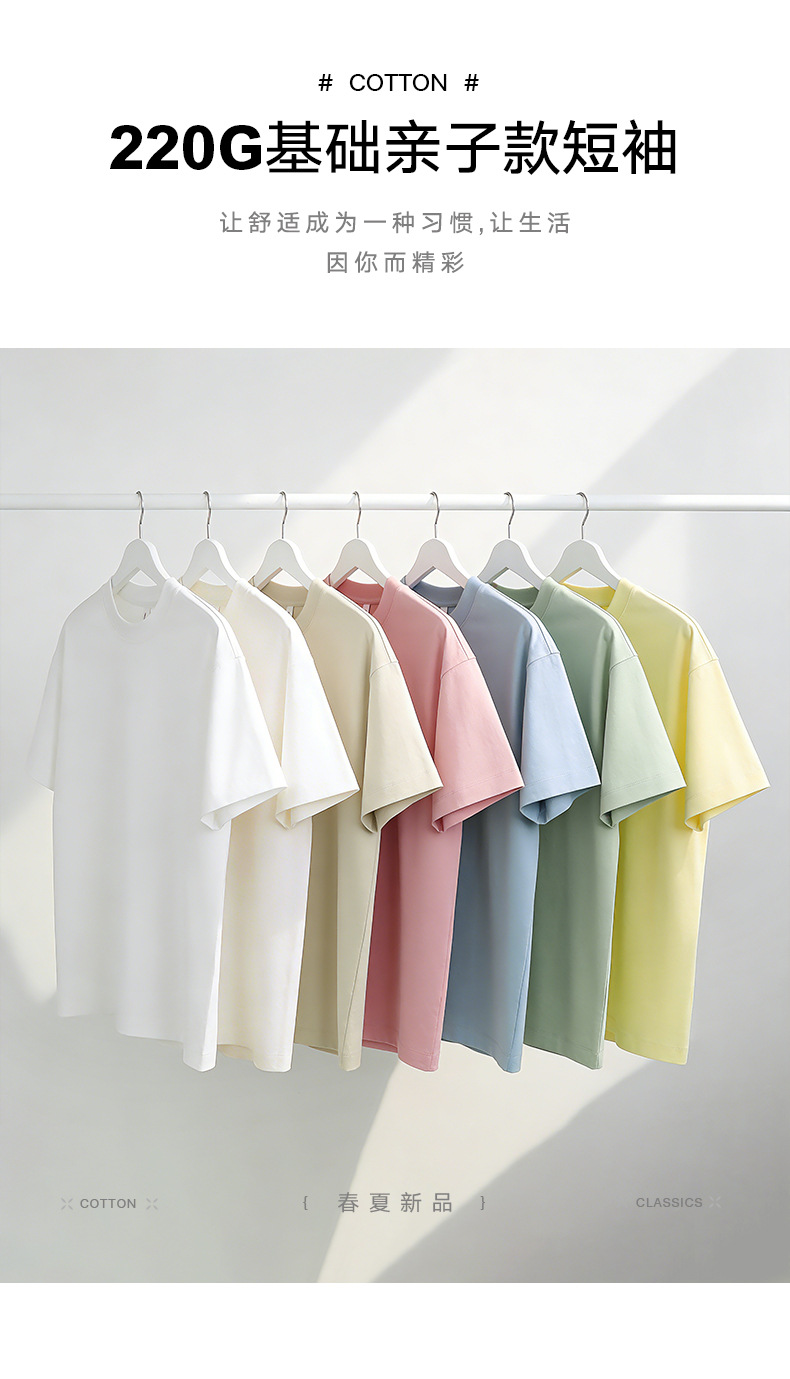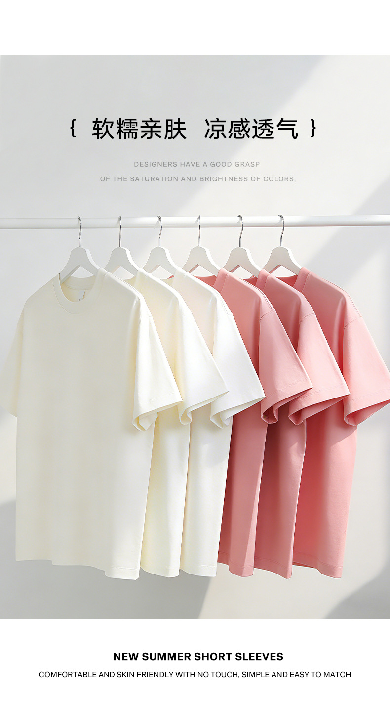 220g 양면 직조 시원한 느낌의 단색 반팔 티셔츠 남성용 라운드넥 기본 남녀공용 루즈핏 가족룩 티셔츠