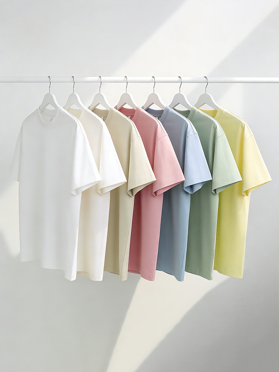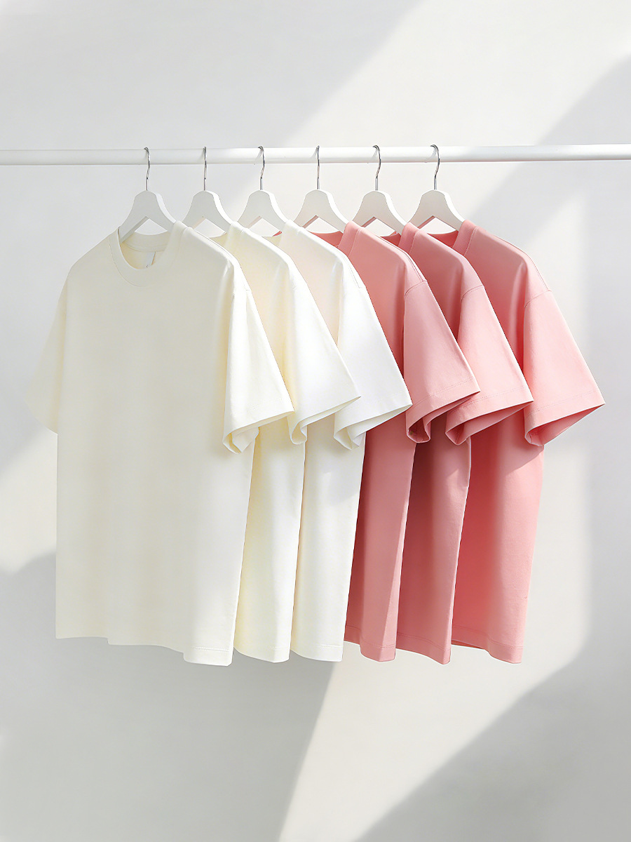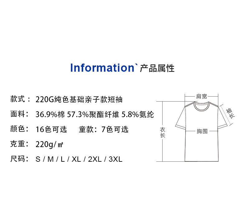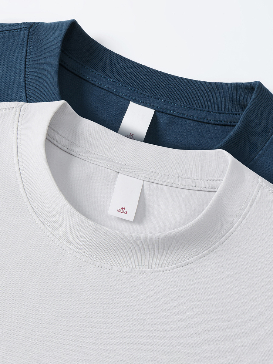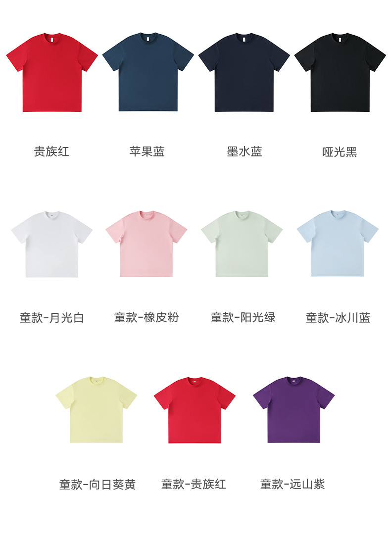 220g 양면 직조 시원한 느낌의 단색 반팔 티셔츠 남성용 라운드넥 기본 남녀공용 루즈핏 가족룩 티셔츠