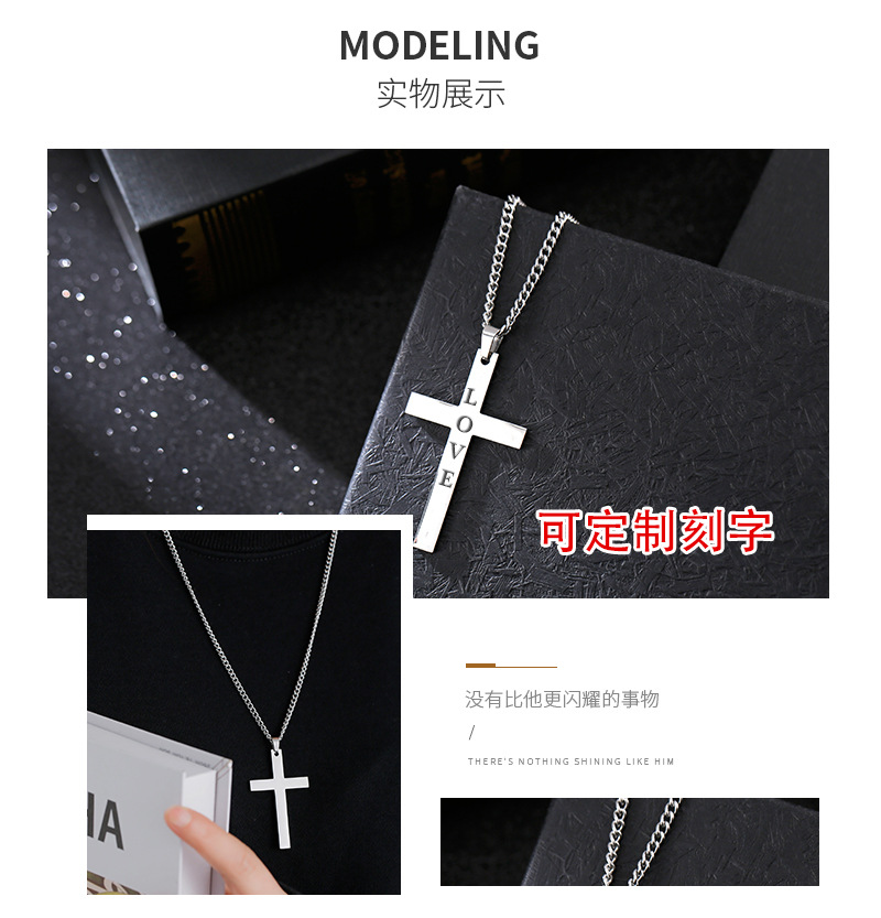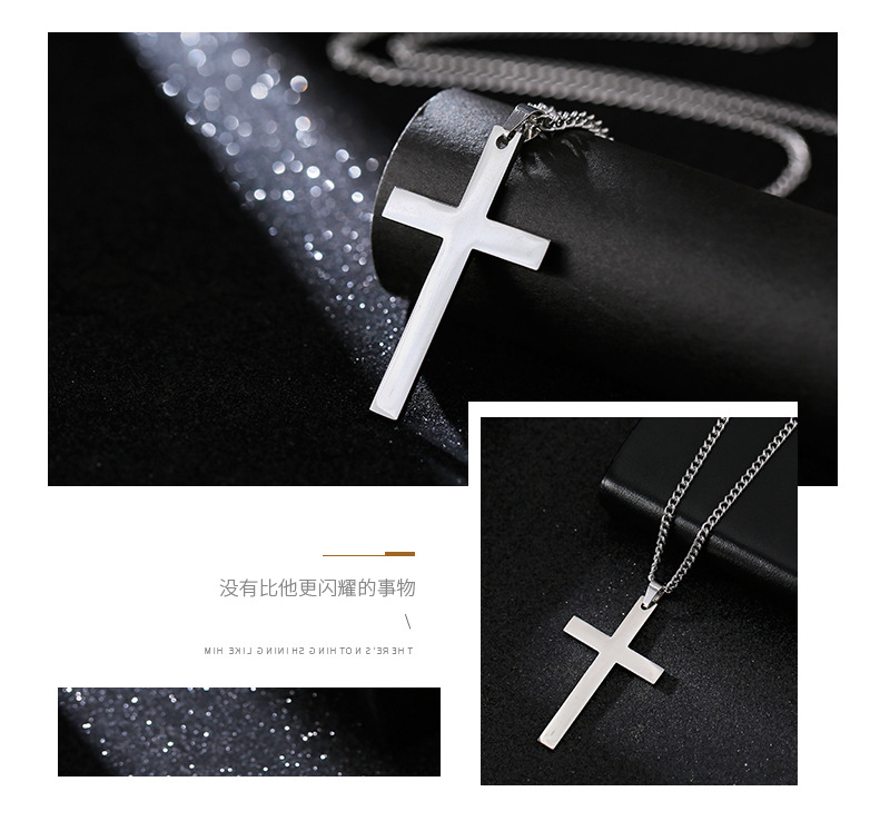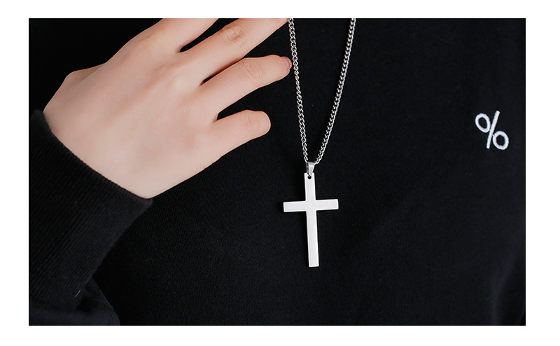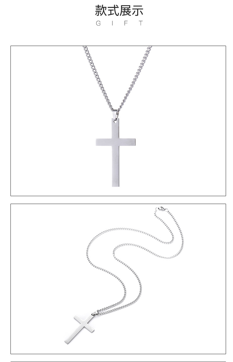 크로스 국경 비 페이딩 광택 크로스 펜던트 티타늄 스틸 목걸이 조커 간단한 스테인레스 스틸 펜던트 남성 보석 도매