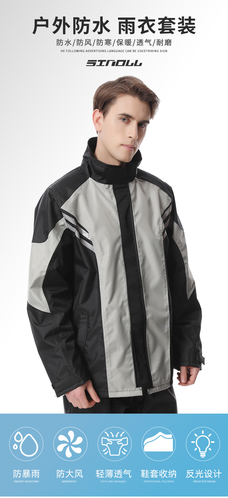 Xinuo 레인코트 레인 팬츠 세트 남성용 오토바이 타기 방수 빗폭풍 방지 야외 반사 분할 비옷