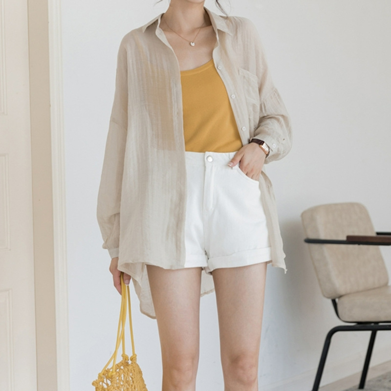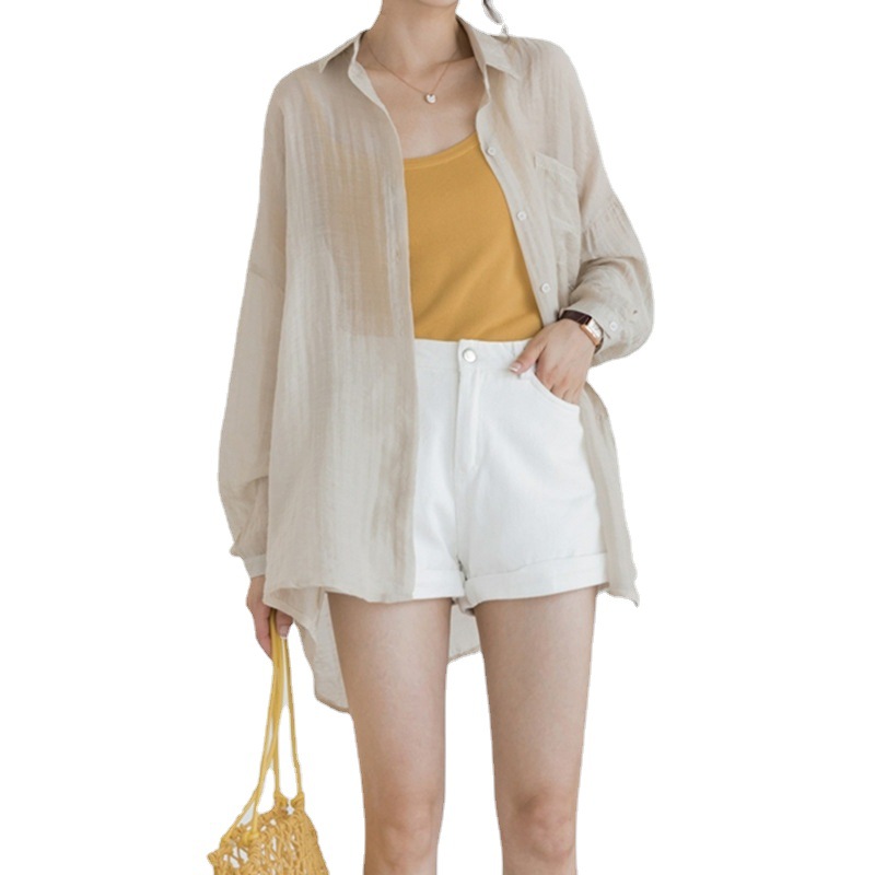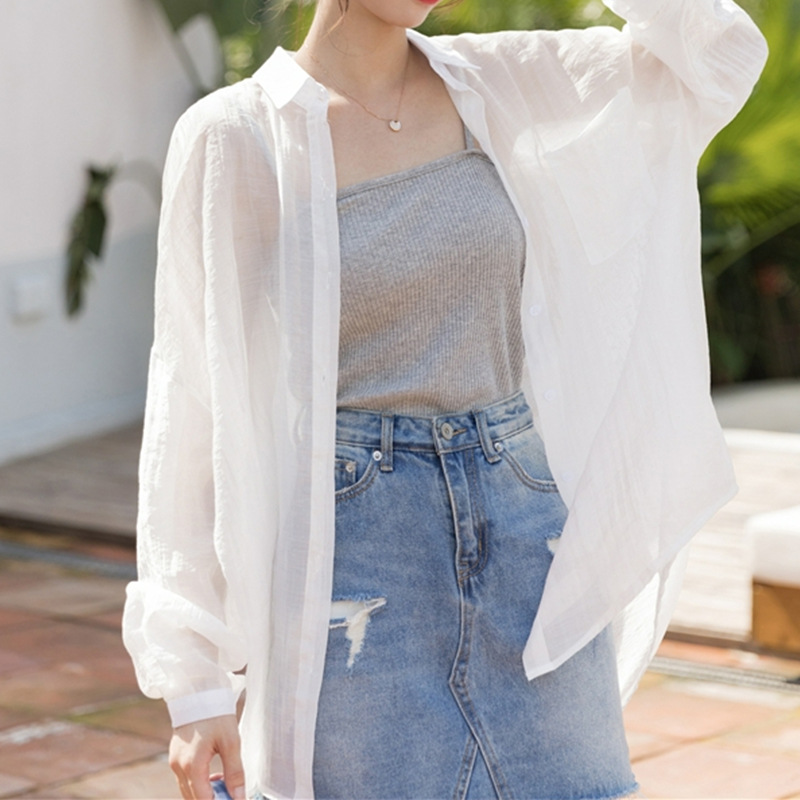 2024 태양 보호 의류 여성의 얇은 쉬폰 셔츠 서스펜더 스커트 카디건 작은 재킷과 새로운 여름 목도리
