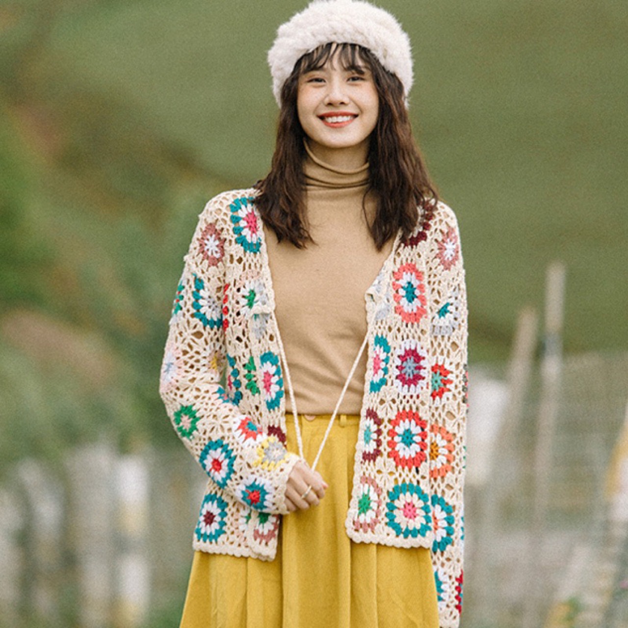 드림 호스 수제 크로 셰 뜨개질 카디건 티베트 네팔 니트 스웨터 중공 코트 에스닉 긴 소매 탑