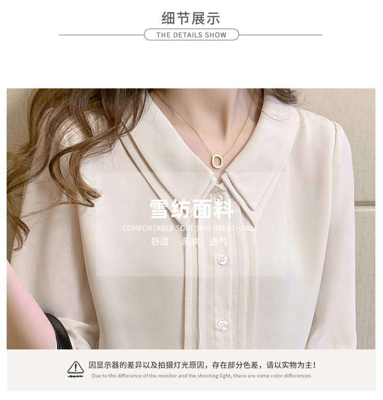 더블 레이어 인형 칼라 셔츠 여성 디자인 감각 여름 일본과 한국의 새로운 한국 스타일 5부 소매 쉬폰 셔츠