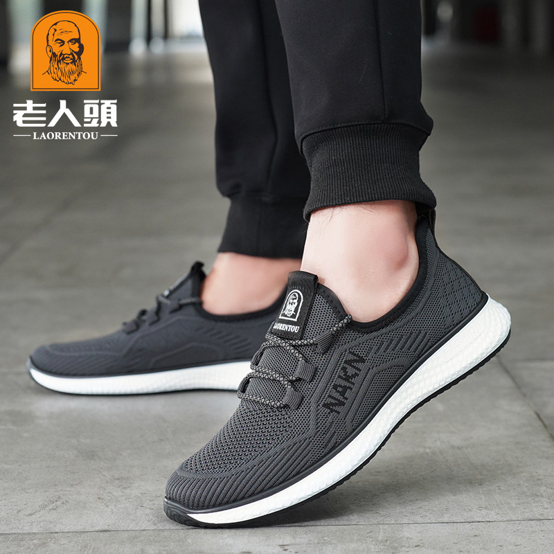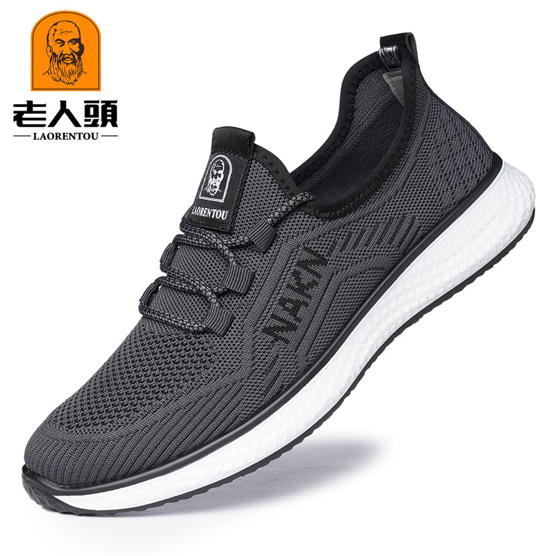 노인의 머리 봄 남성 캐주얼 스포츠 통기성 레이스 업 플라이 니트 신발 얕은 입 블랙 그레이 패션 신발 New 15656