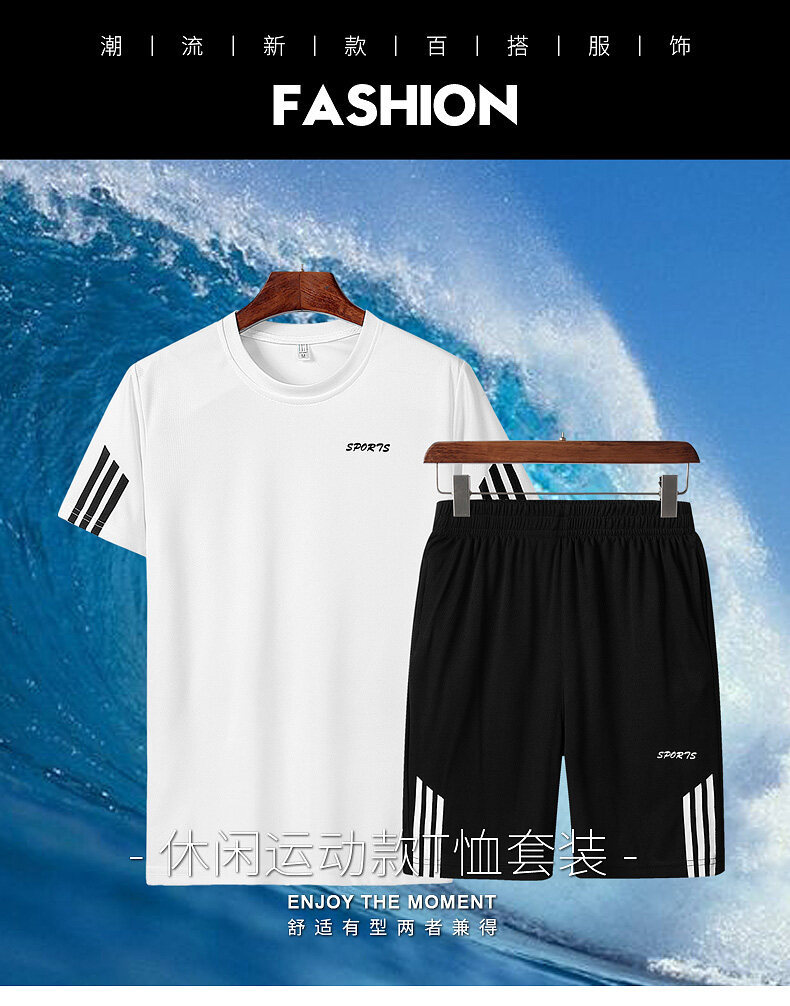 여름 통기성 스포츠 세트 남자의 반팔 반바지 느슨한 속건 티셔츠 짧은 바지 캐주얼 러닝 세트