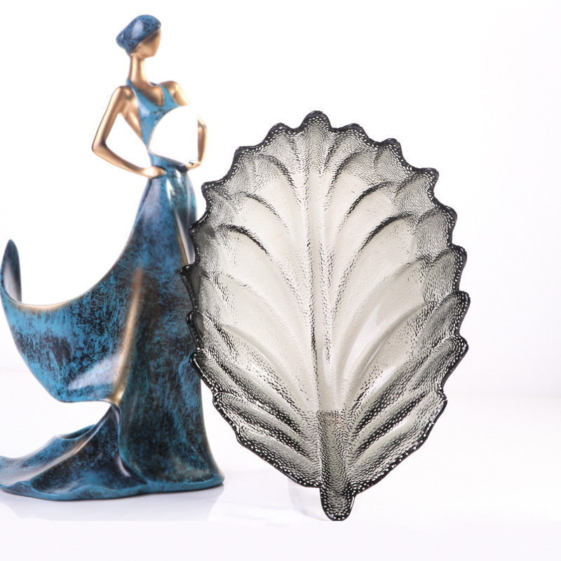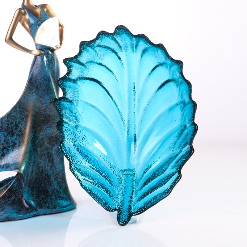 일본식 다채로운 피닉스 꼬리 유리 접시 가정용 대형 깃털 과일 접시 달콤한 접시 창조적 인 모양의 샐러드 그릇 접시