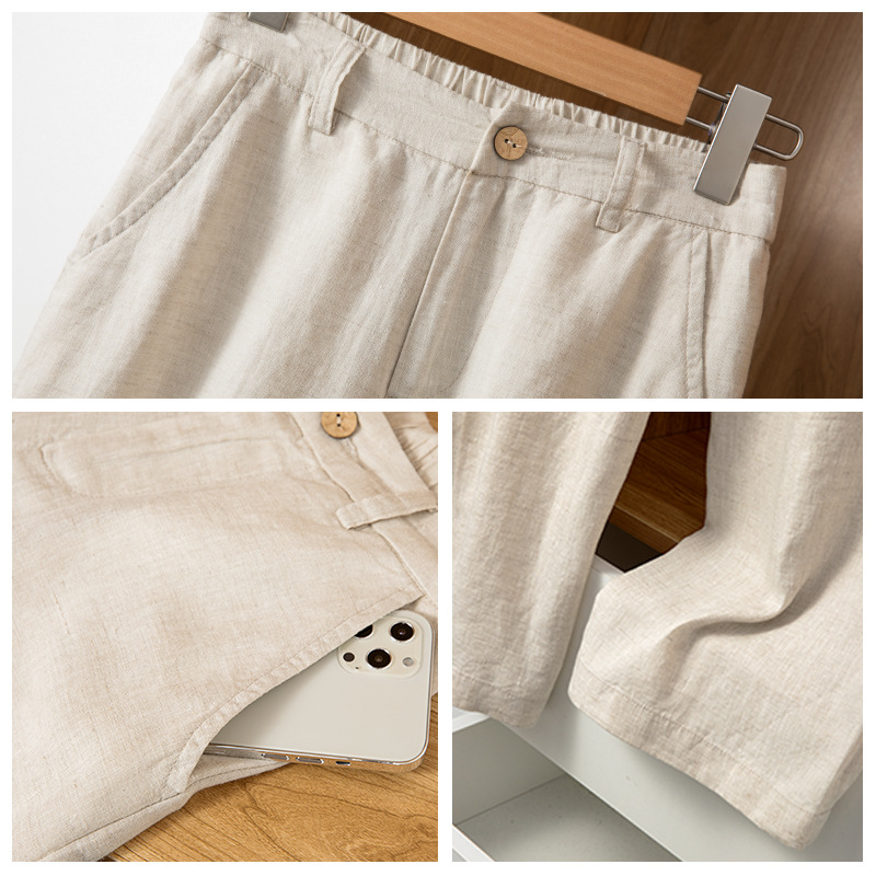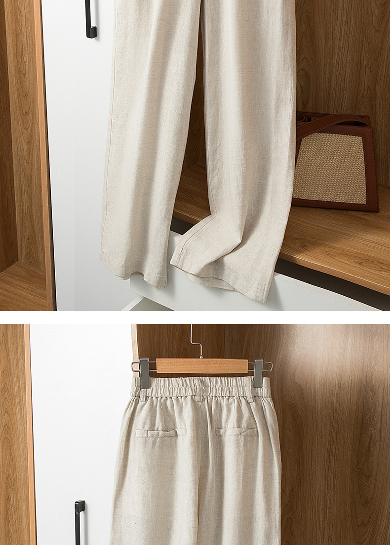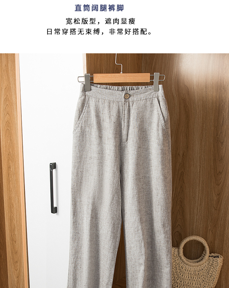 얇은 와이드 팬츠 여성용 2025 여름 신상 루즈핏 슬림핏 드레이프 바닥 길이 팬츠 다용도 통기성 린넨 캐주얼 팬츠