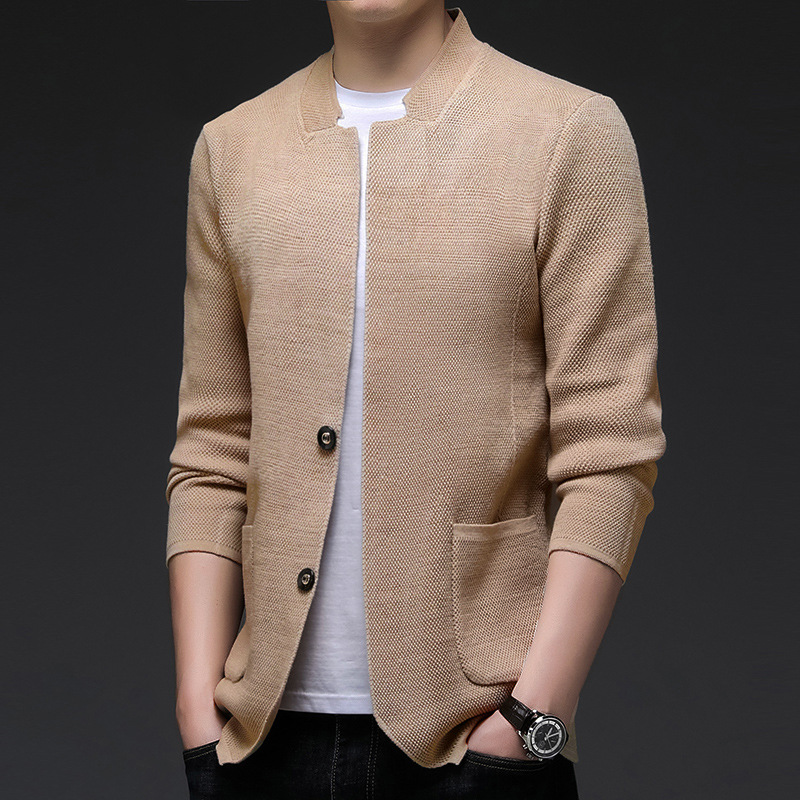 비 다림질 봄 남성 니트웨어 가디건 세트 얇은 단색 캐주얼 비즈니스 긴팔 스트레이트 스웨터 남성 자켓