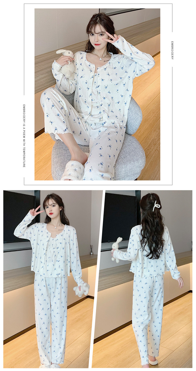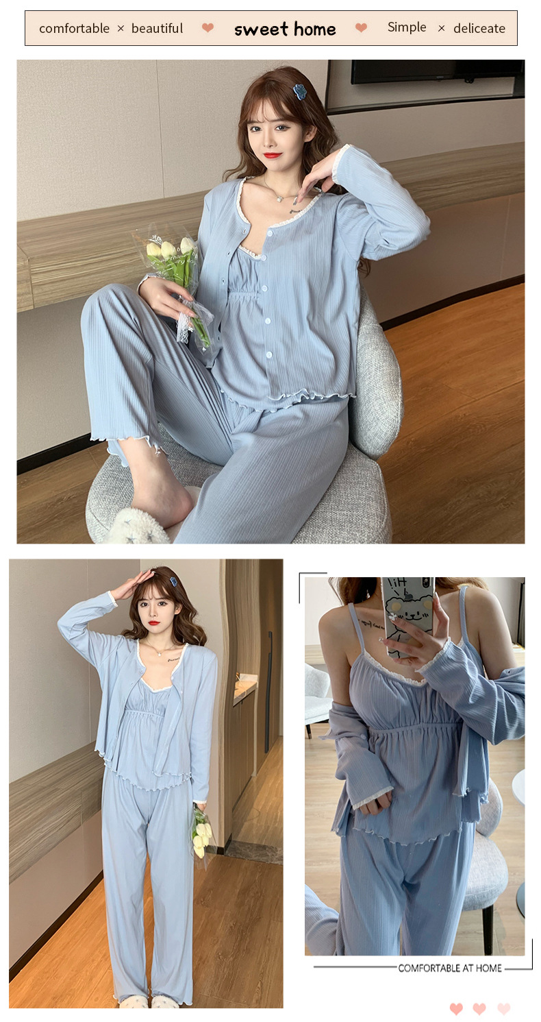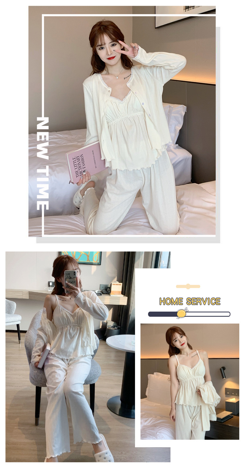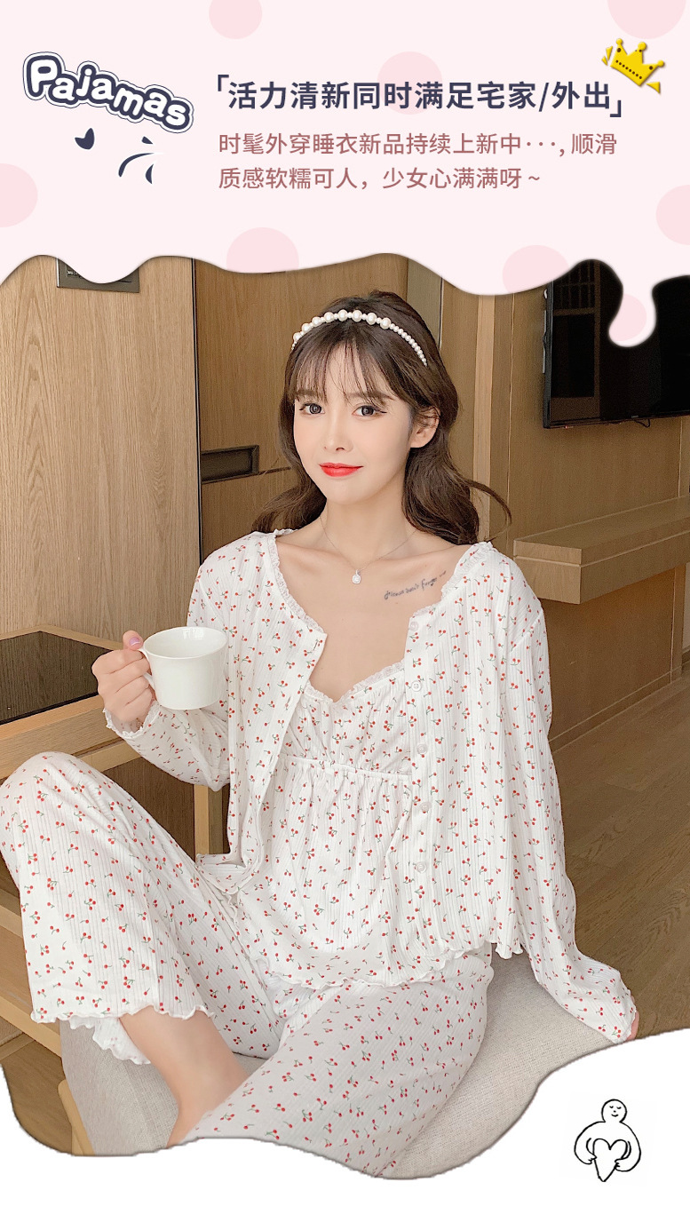 봄 새로운 일본식 순수한 욕망 스타일 잠옷 여성용 한국식 긴팔 3 종 세트 카디건 가슴 패드 섹시 달콤한 가정복