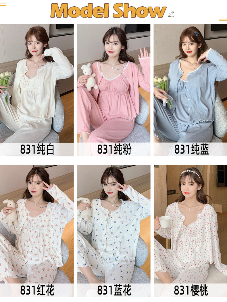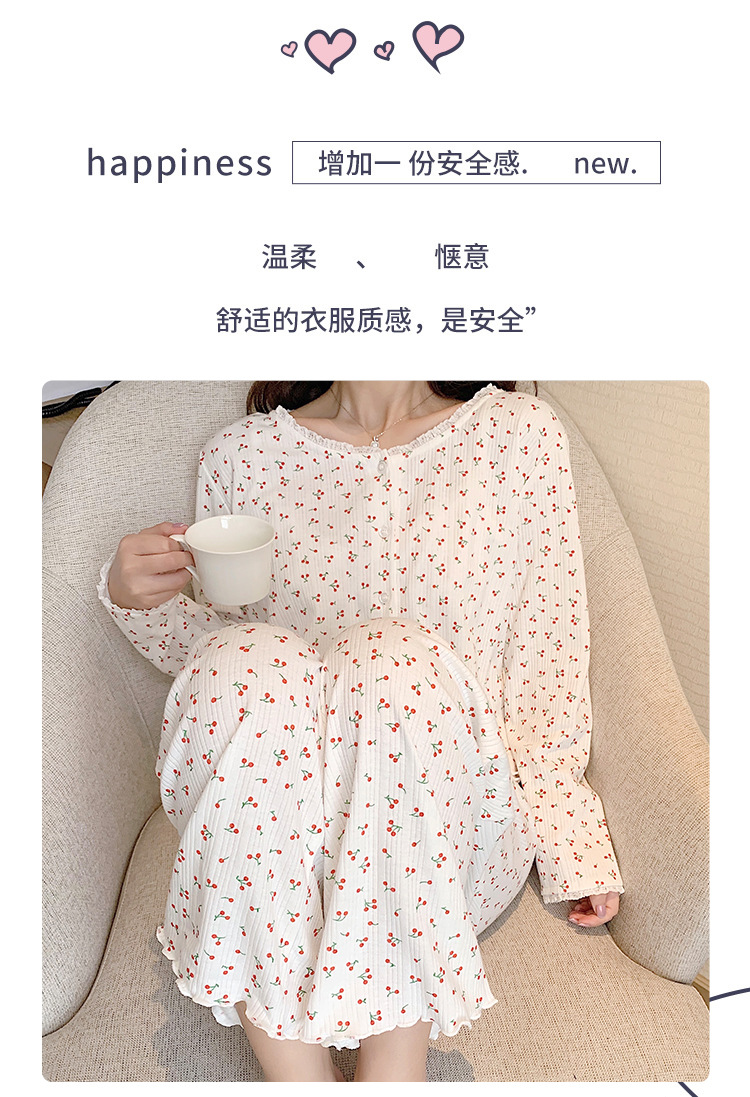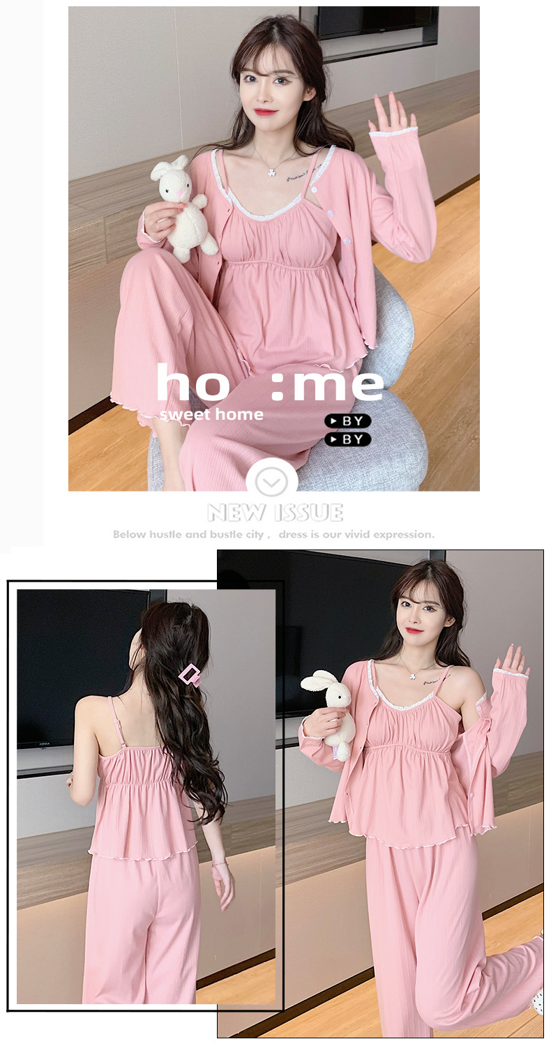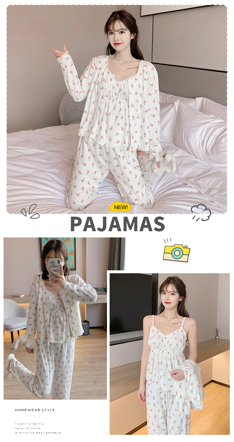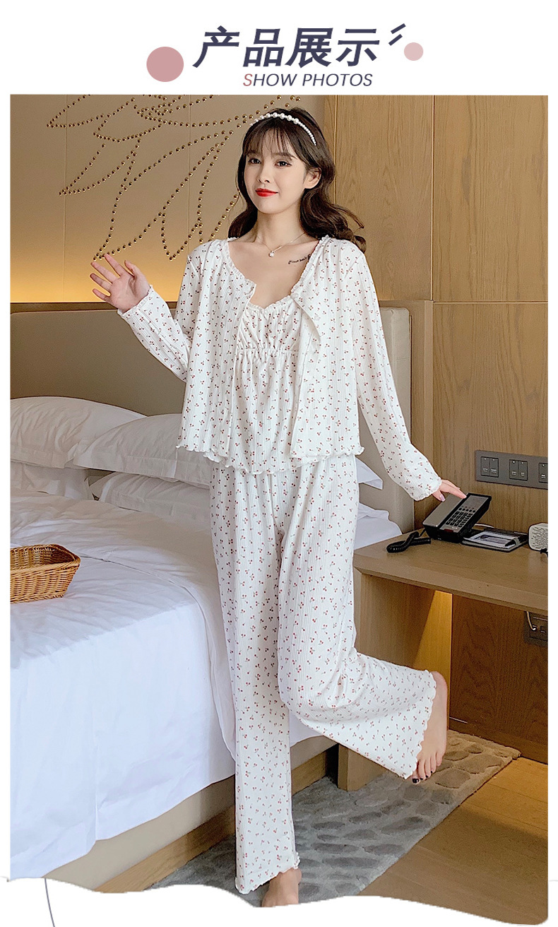 봄 새로운 일본식 순수한 욕망 스타일 잠옷 여성용 한국식 긴팔 3 종 세트 카디건 가슴 패드 섹시 달콤한 가정복