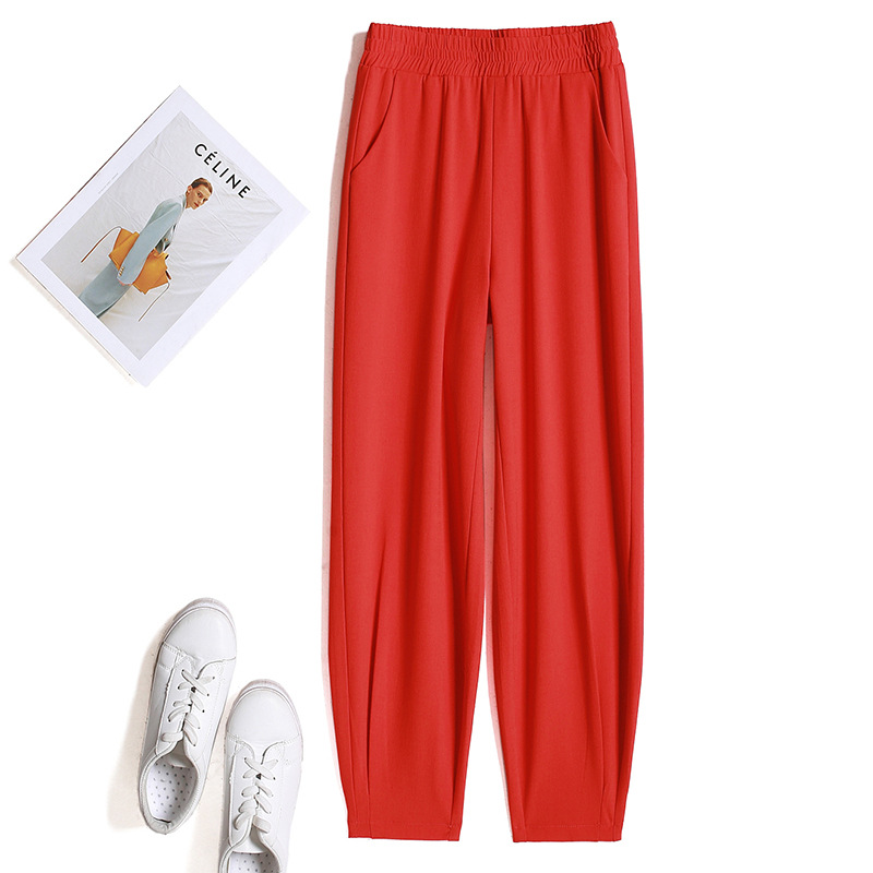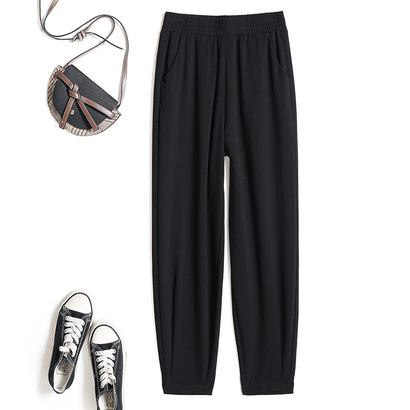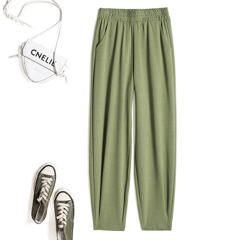 봄과 여름 새로운 Harlan Wei 바지 여성용 바지 슬림 바나나 바지 자른 짧은 하이 웨이스트 플러스 사이즈 캐주얼 바지 무 바지