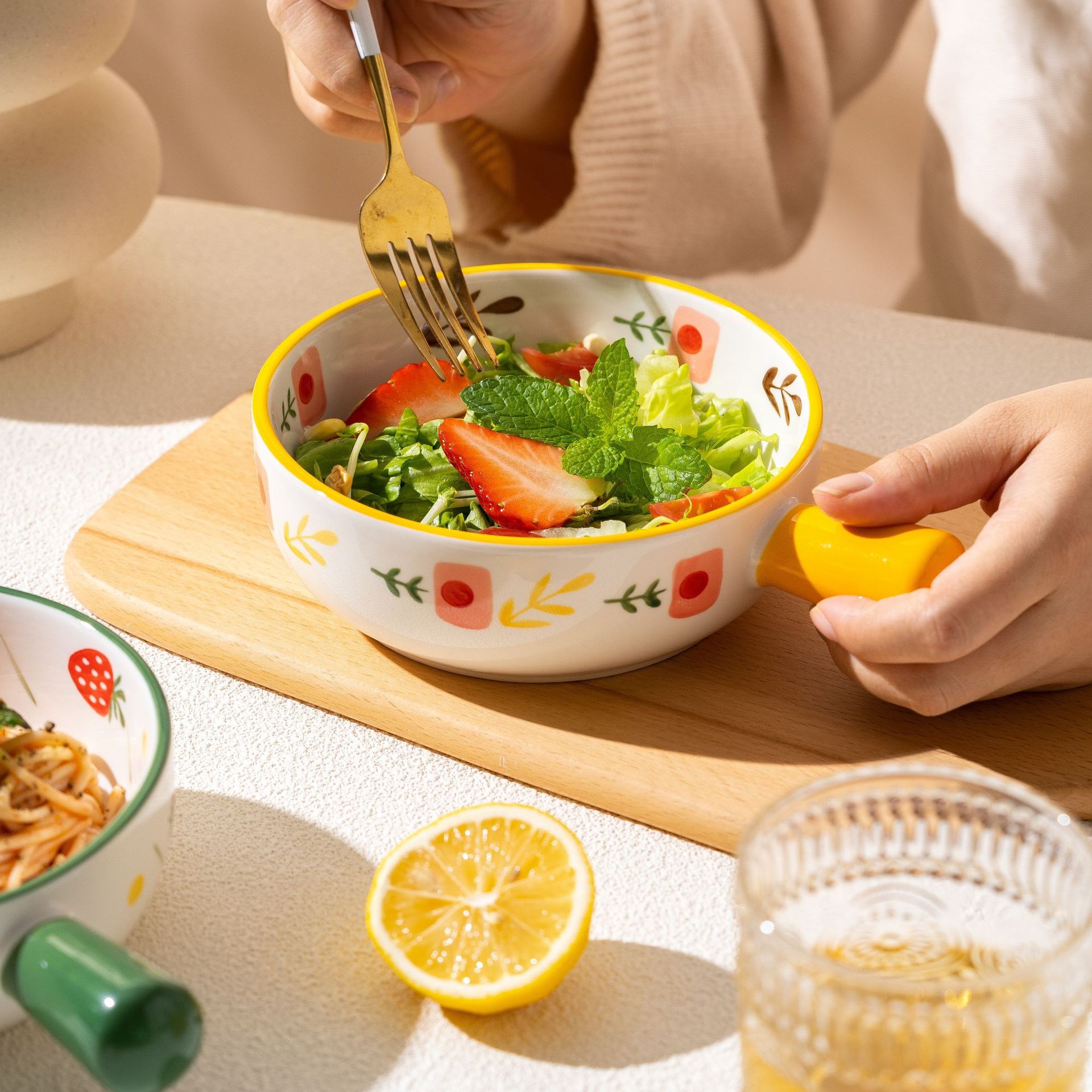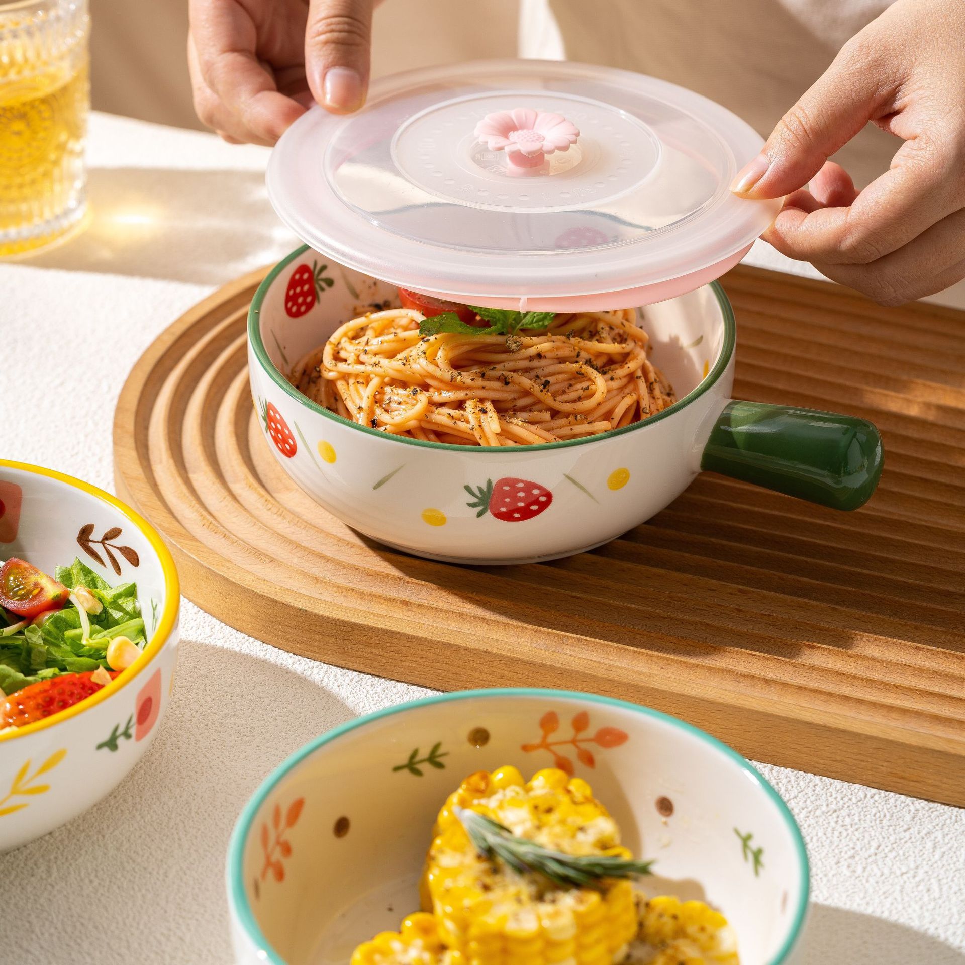 에어 프라이어 특수 그릇 오븐 사용 가능한 9.5 인치 싱글 핸들 그릇 가정용 인터넷 유명 인사 아름다운 세라믹 식기 무료 배송