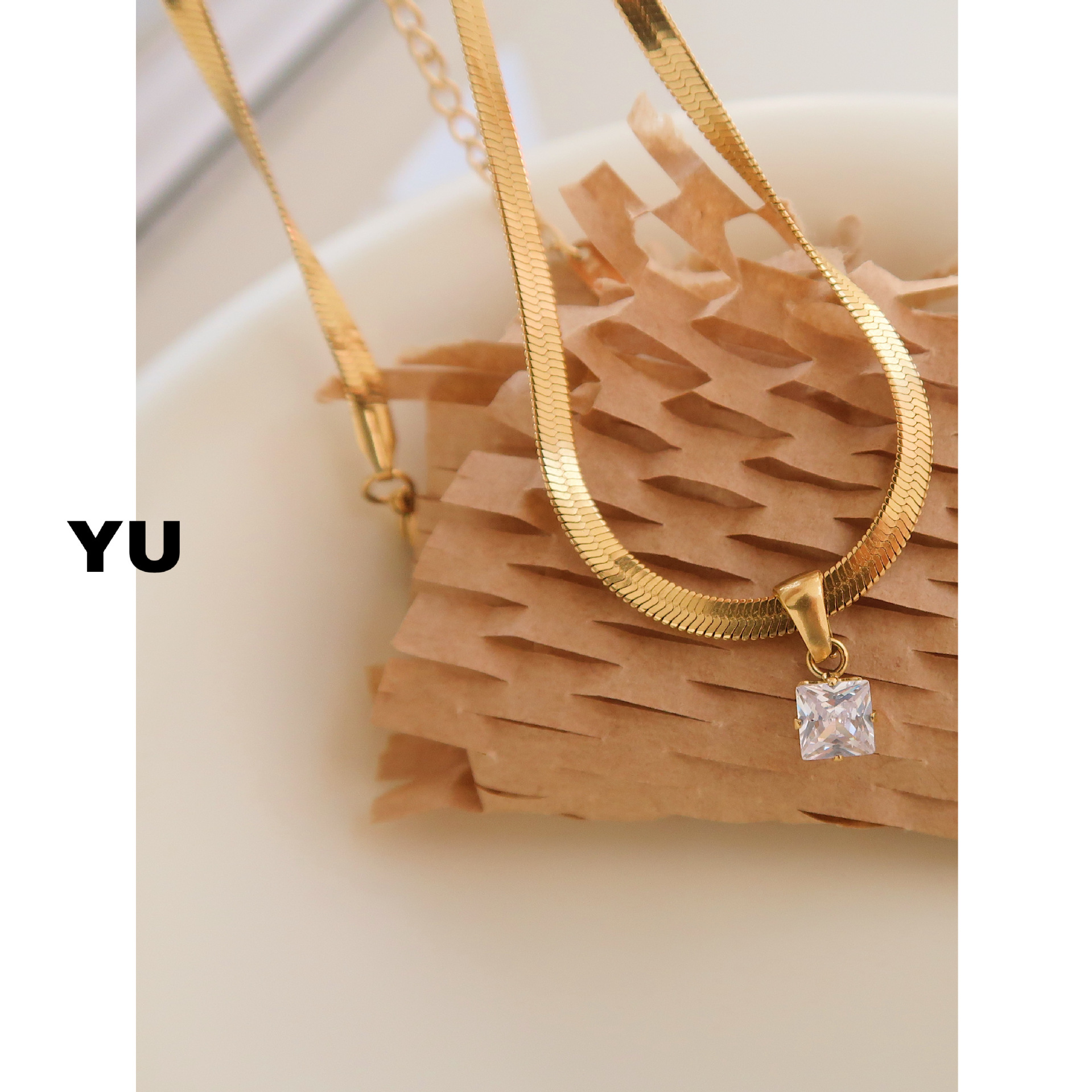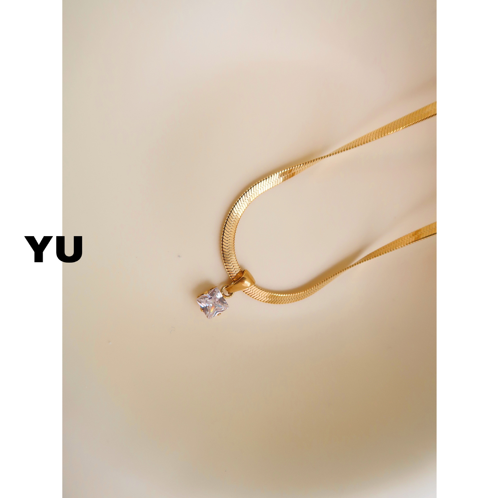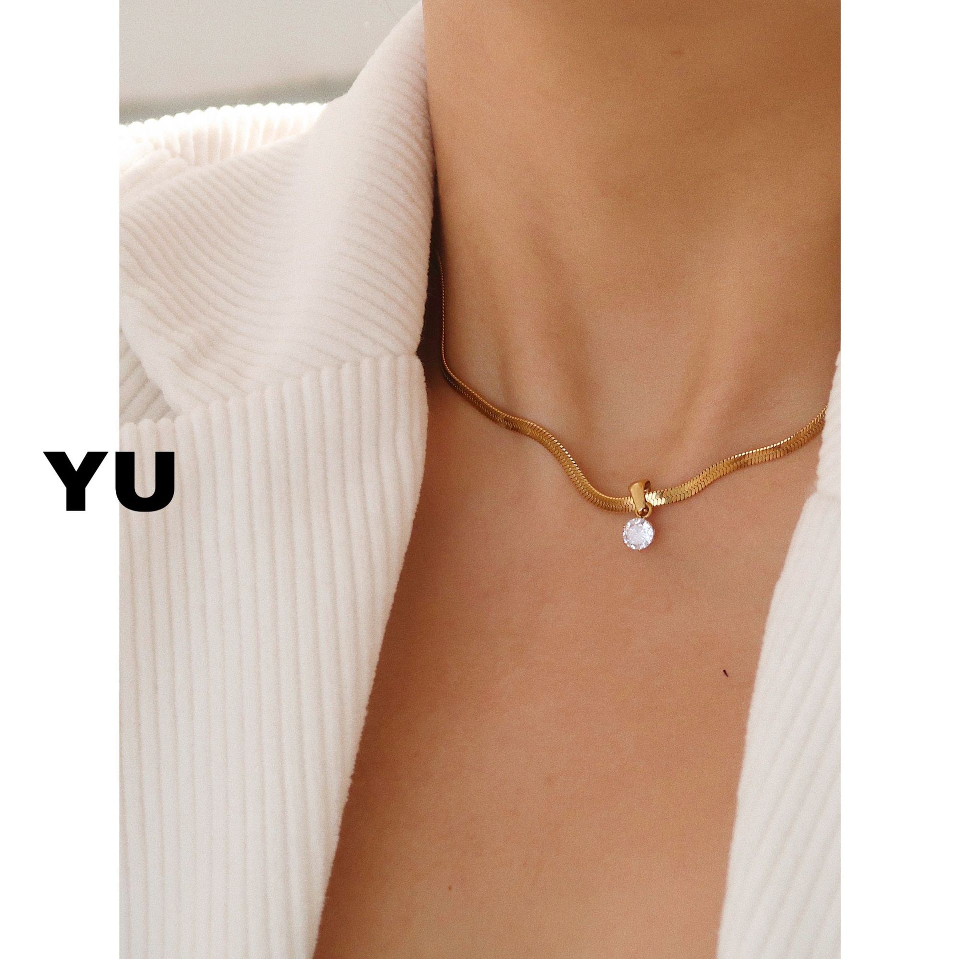 유 쥬얼리 스퀘어 라운드 지르콘 목걸이 여성의 간단한 블레이드 체인 뱀 뼈 체인 높은 기질 쇄골 체인 인