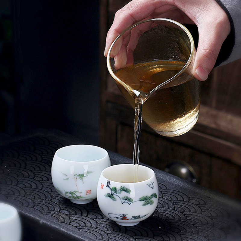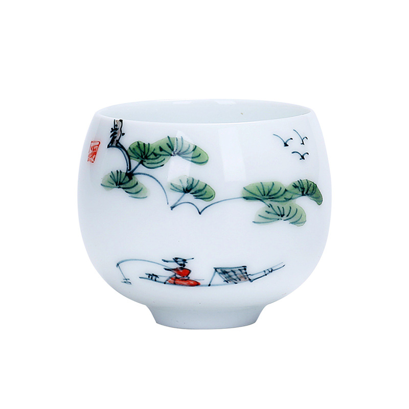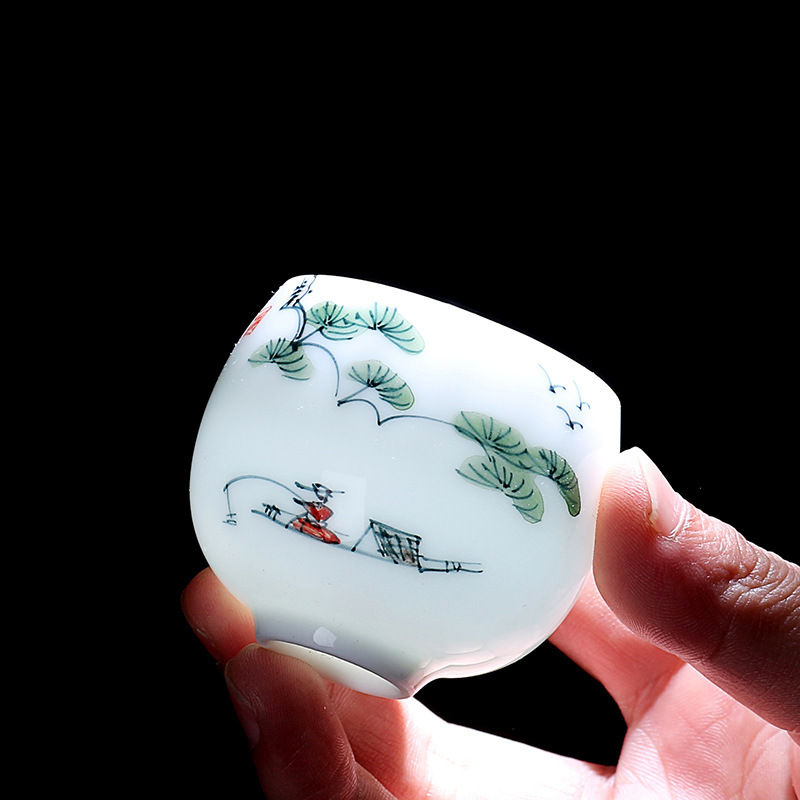 백자 찻잔 마스터 컵 한 장 손으로 그린 청과 흰색 차 컵 스위트 옥 수제 쿵후 차 세트 도자기 작은 차 그릇