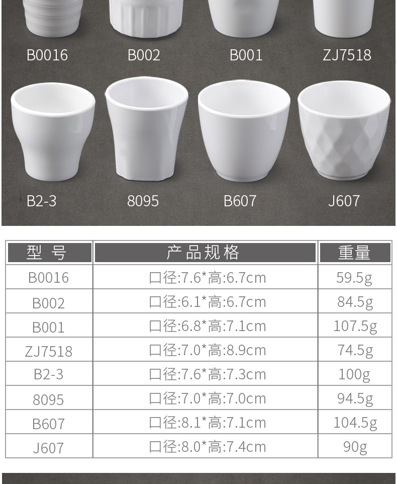 凯柏雅密胺杯子商用白色塑料杯餐具酒店餐厅用仿瓷杯茶杯水杯酒杯