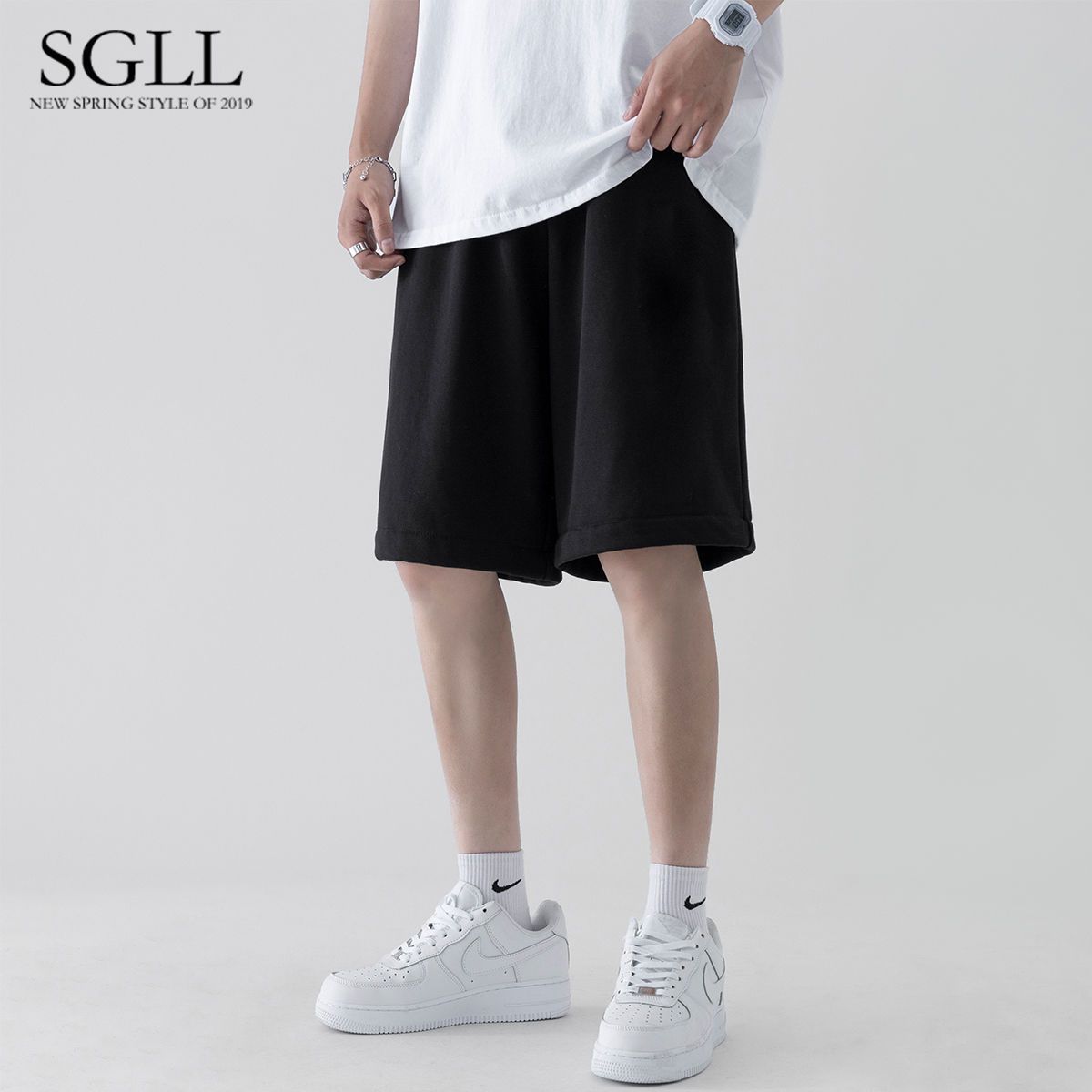 여름 반바지 남자의 유행 느슨한 단색 남성 캐주얼 바지 스포츠 바지 플러스 사이즈 얇은 유행 홍콩 스타일 반바지