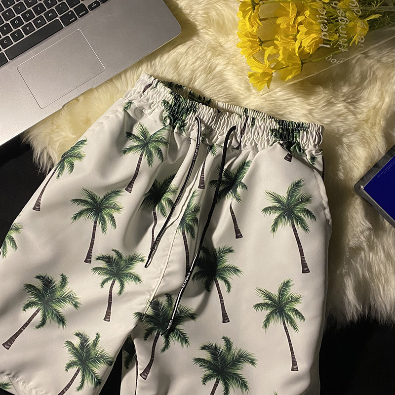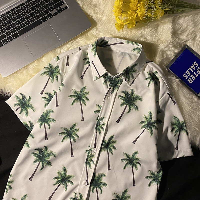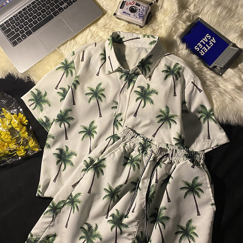 하와이안 비치 꽃 셔츠 남자의 홍콩 맛 복고풍 스타일 반팔 셔츠 세트 캐주얼 스포츠 투피스 세트