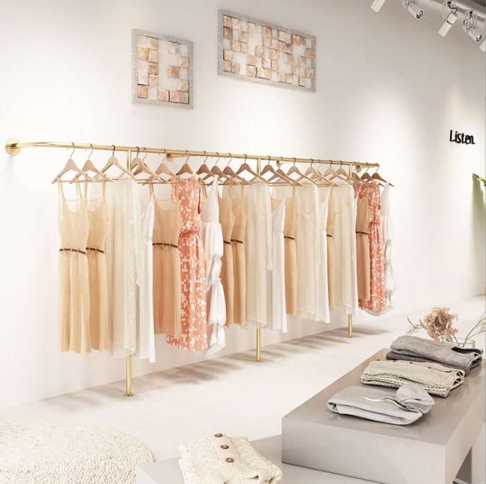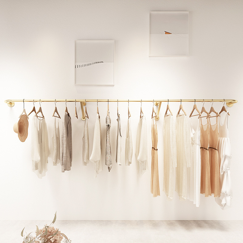 새로운 스타일 의류 매장 디스플레이 랙 벽 측면 교수형 크로스 바 행거 북유럽 조명 럭셔리 여성 의류 매장 디스플레이 랙