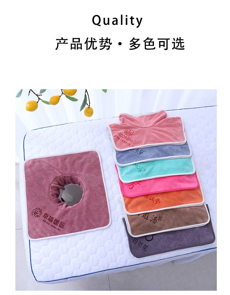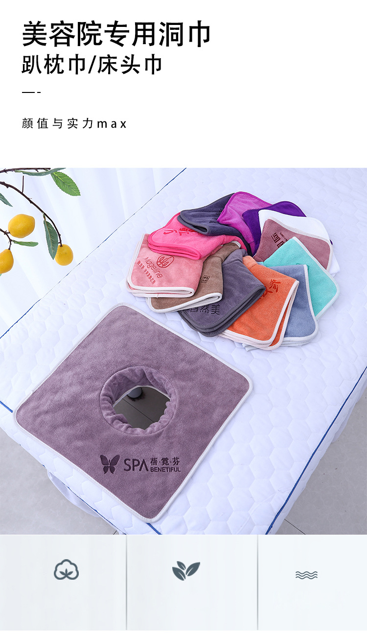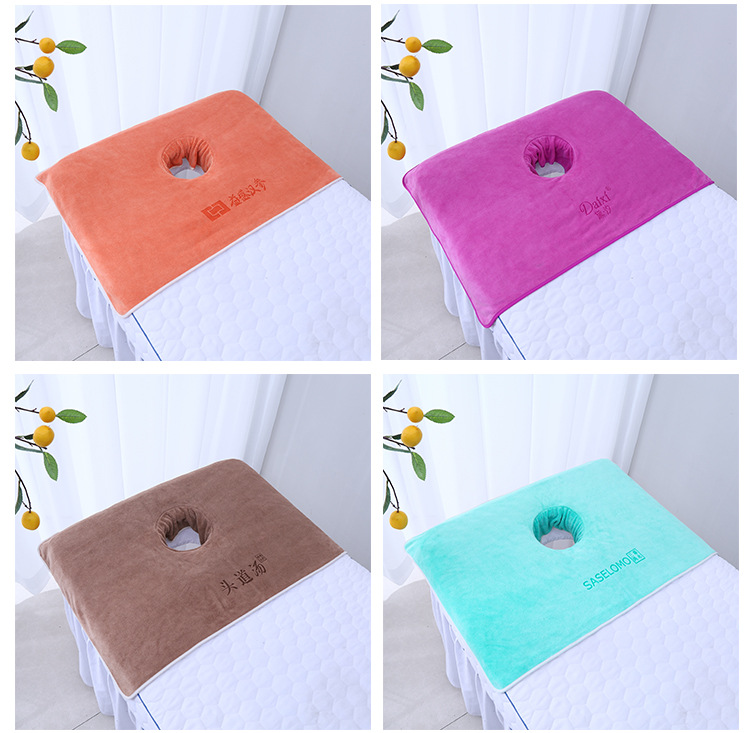 뷰티 살롱 침대 쉬운 수건 구멍 마사지 침대 얼굴 구멍 수건 머리 치료 특수 마사지 자수 로고