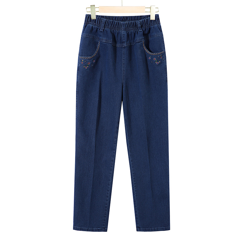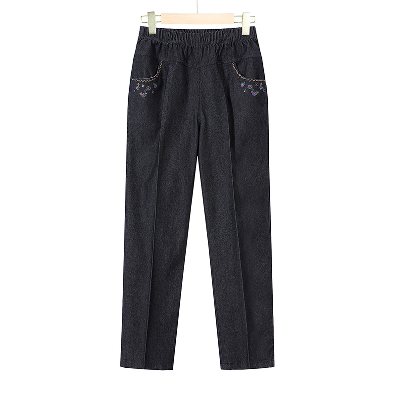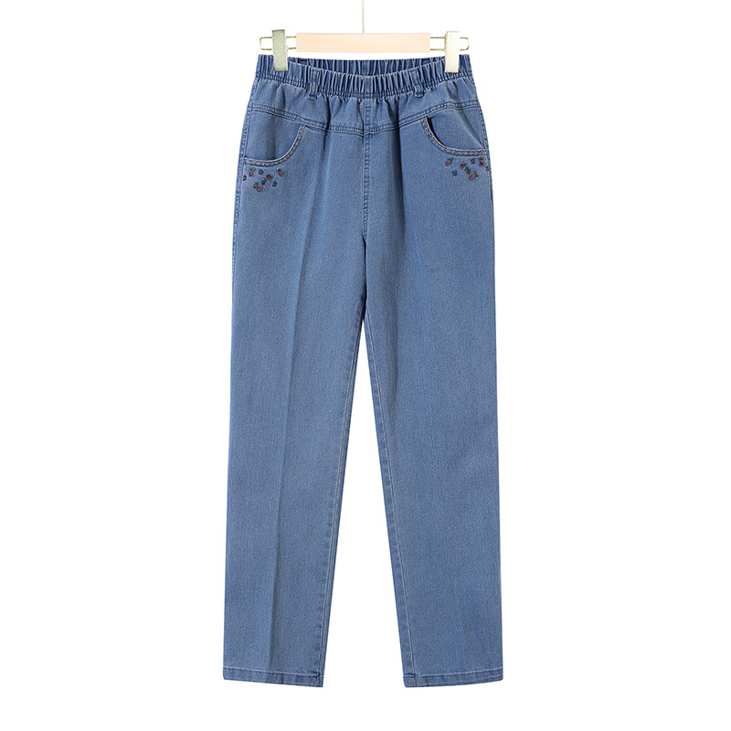 중년 여성 하이웨이스트 봄 청바지, 엄마들을 위한 스트레이트 팬츠, 봄 가을 중년 여성 루즈핏 롱 팬츠, 봄옷
