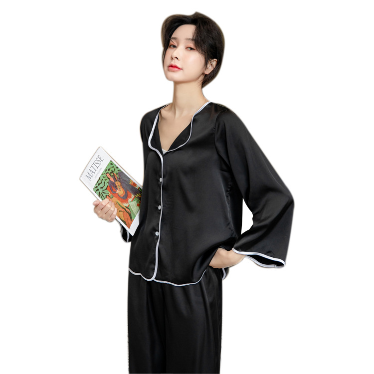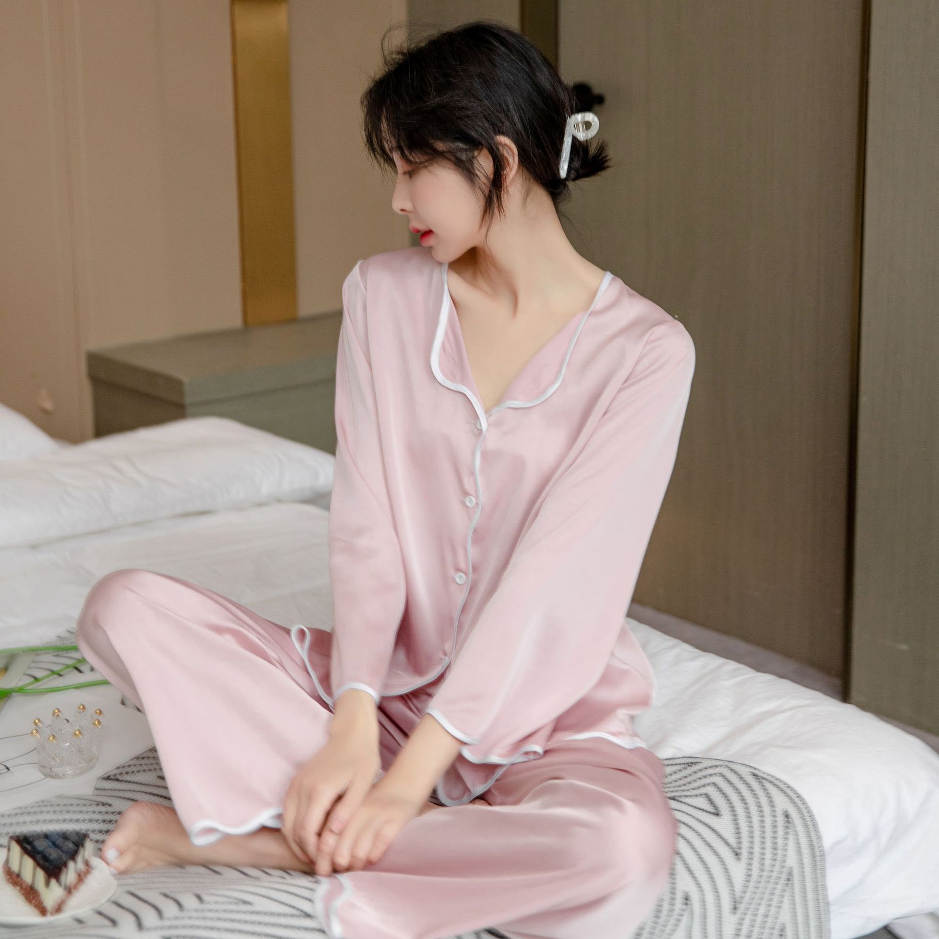 25년 신상 아이스 실크 잠옷 여성용 봄 여름 얇은 긴팔 긴바지 인스 스타일 모조 실크 홈웨어 세트