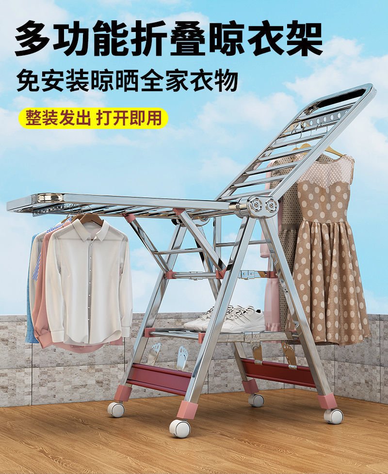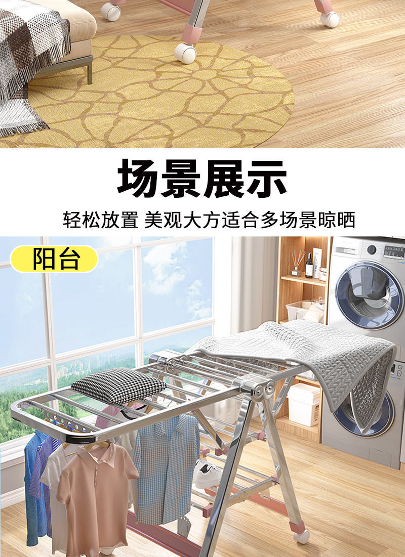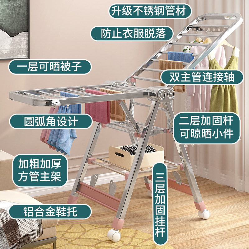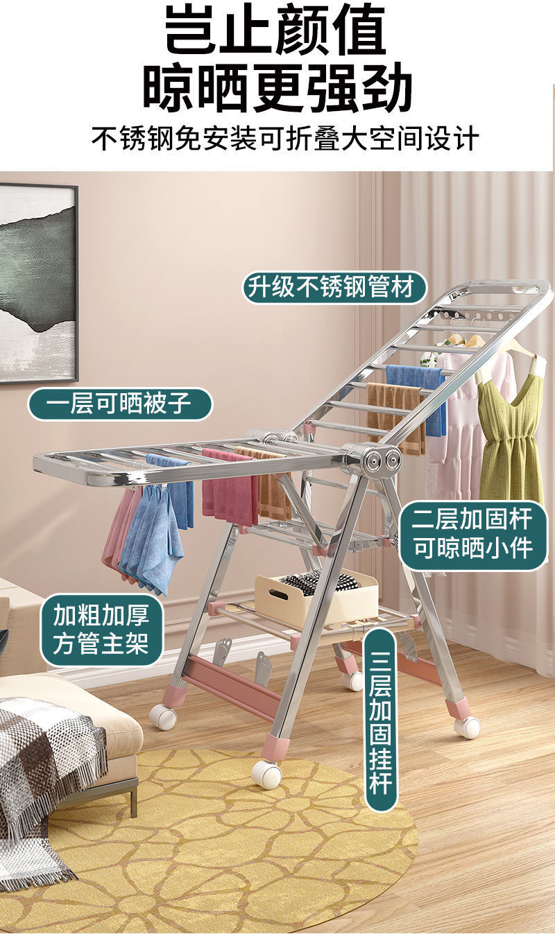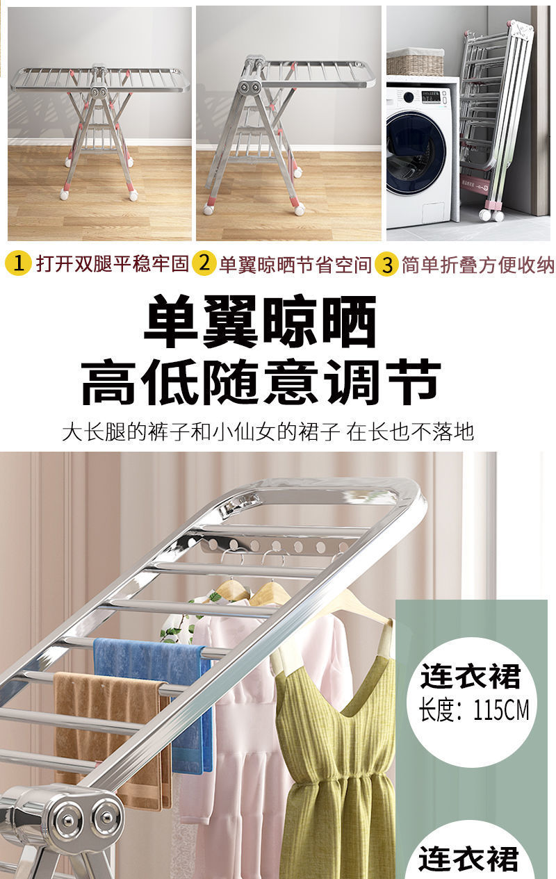 대외 무역 날개 모양의 리프팅 스테인레스 스틸 의류 건조 랙 가정용 실내 건조 이불 의류 보관 접이식 옷 랙