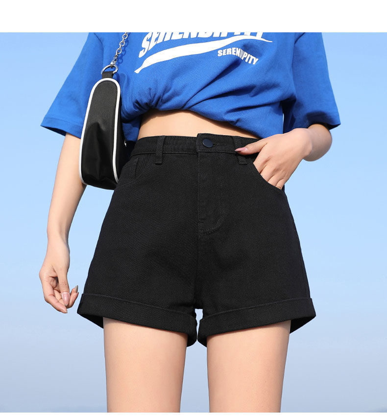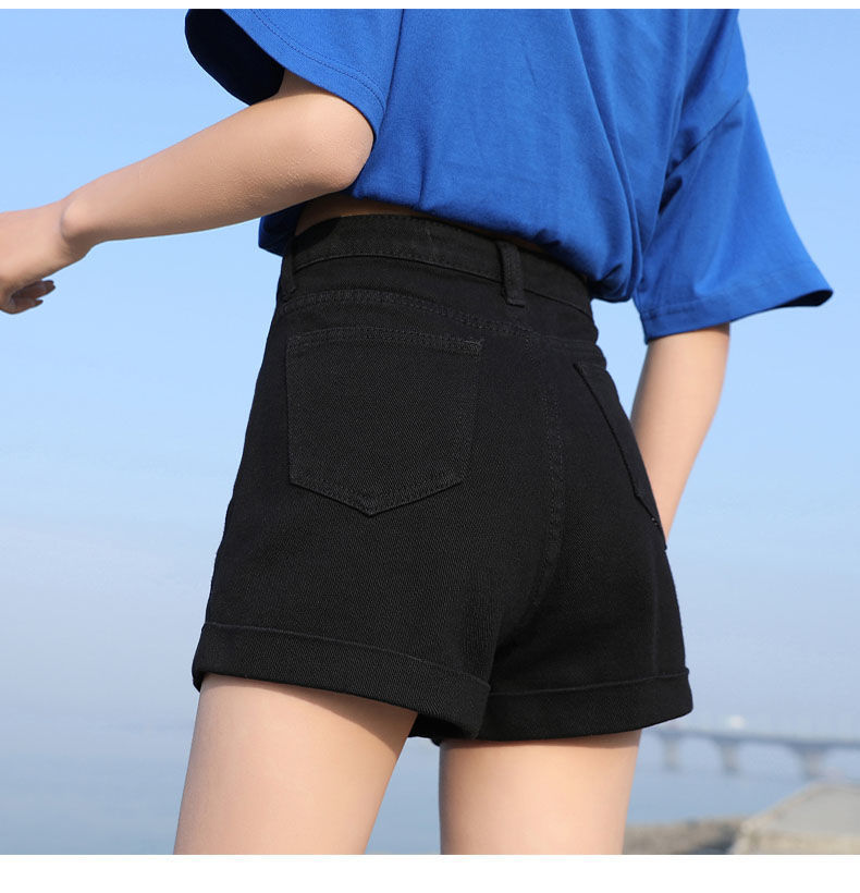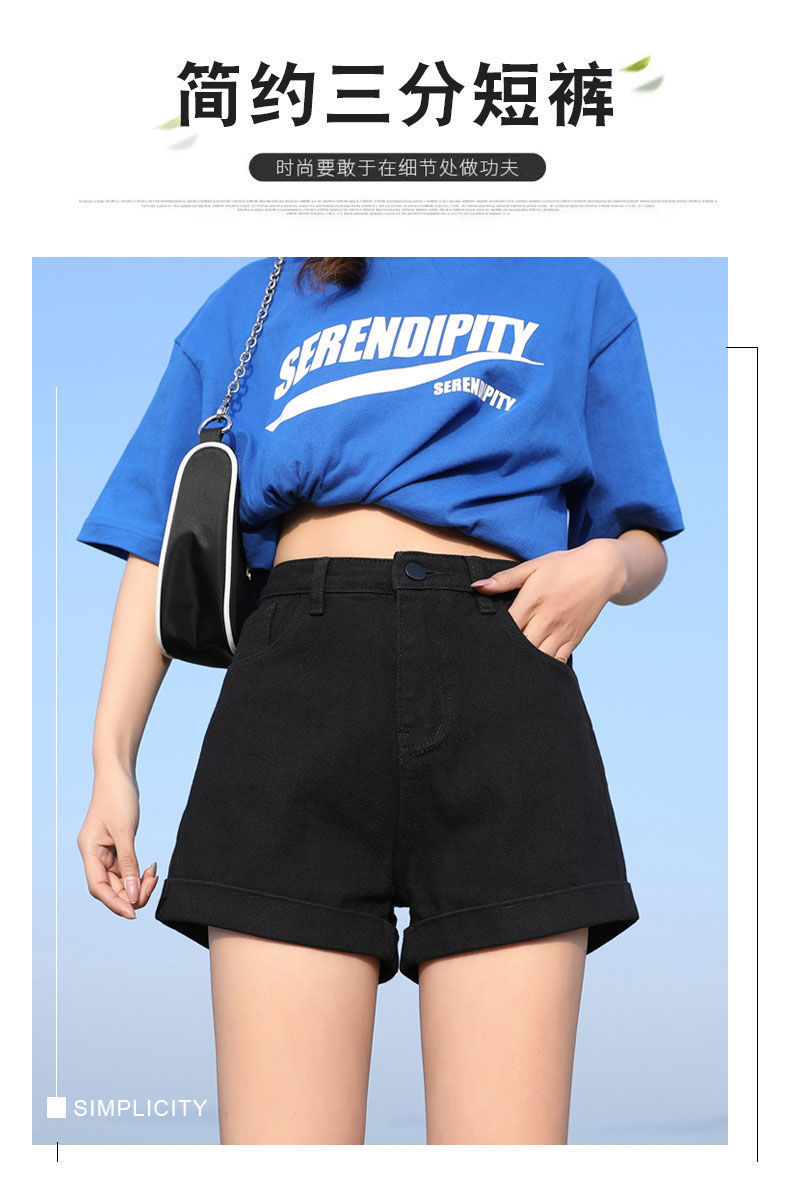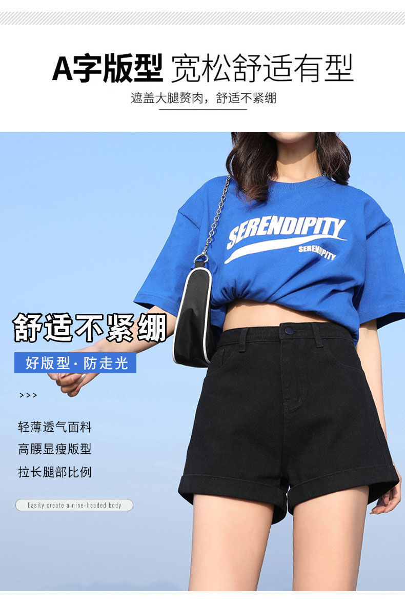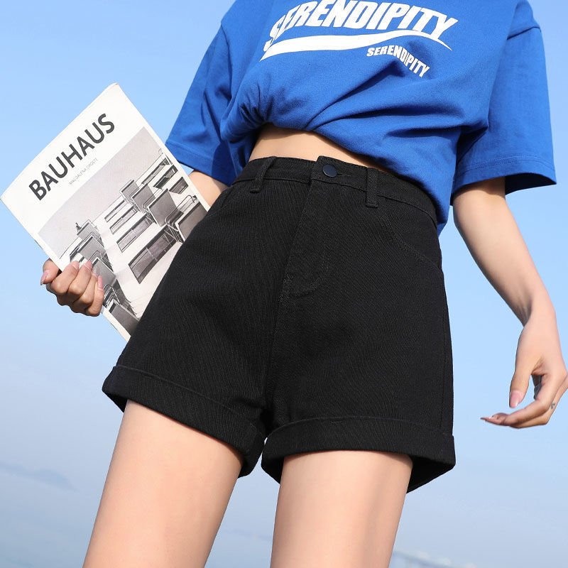 블랙 데님 반바지 여자의 느슨한 와이드 레그 하이 웨이스트 A 라인 바지 2022 새로운 여름 슈퍼 짧은 핫 팬츠 스파이스 걸스 인