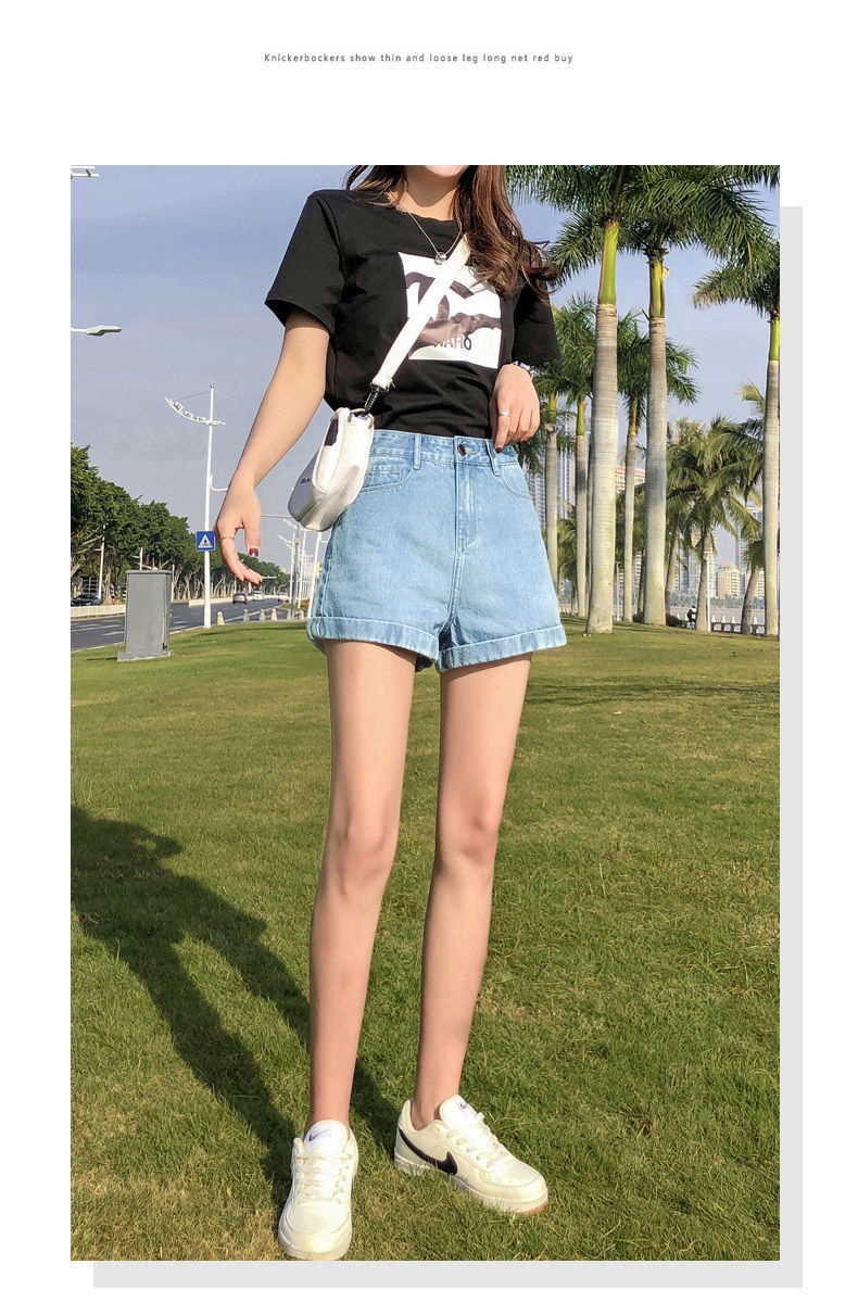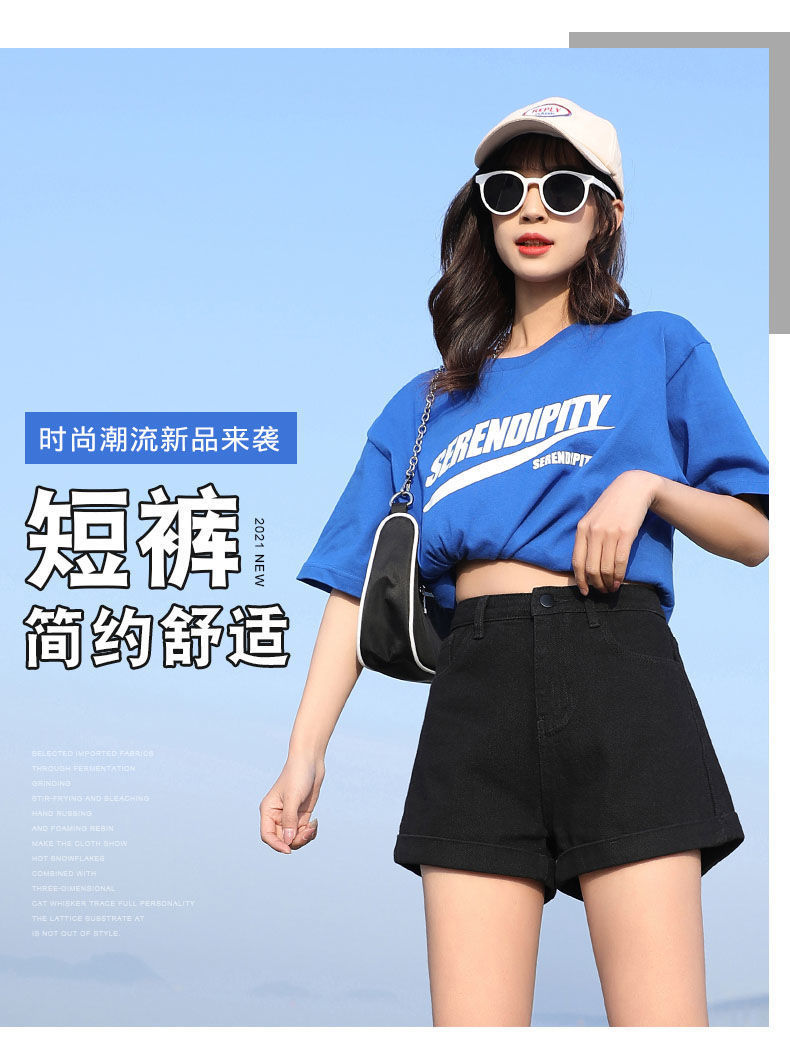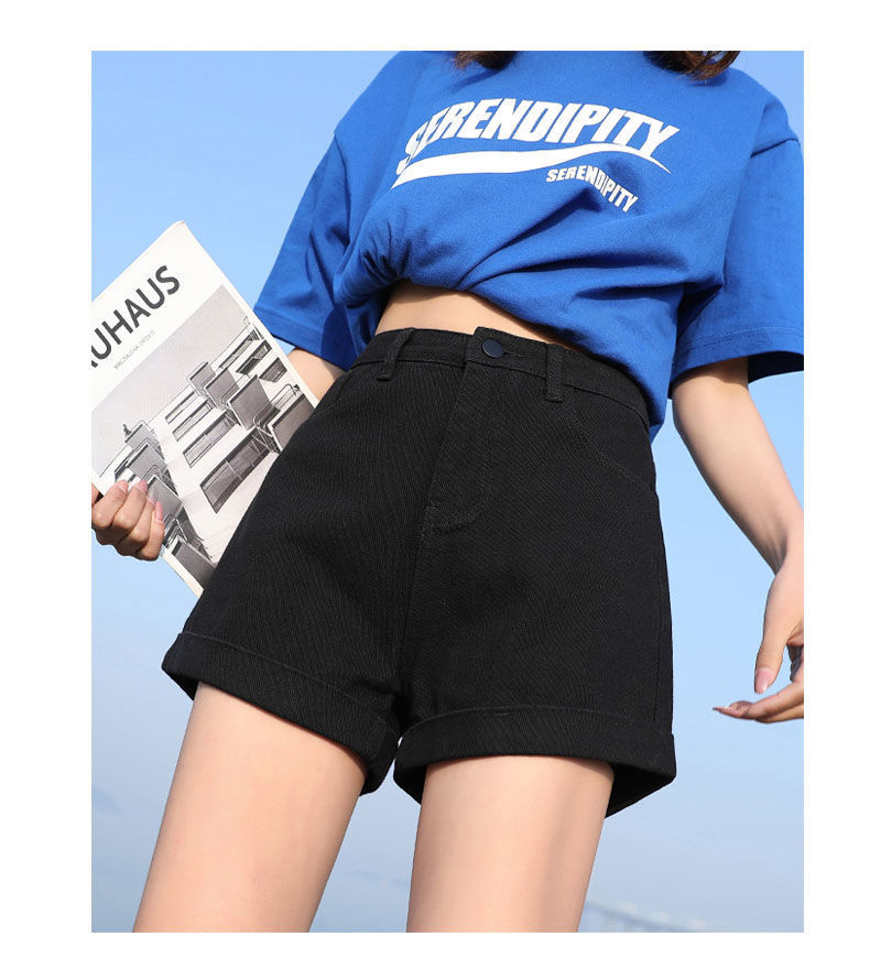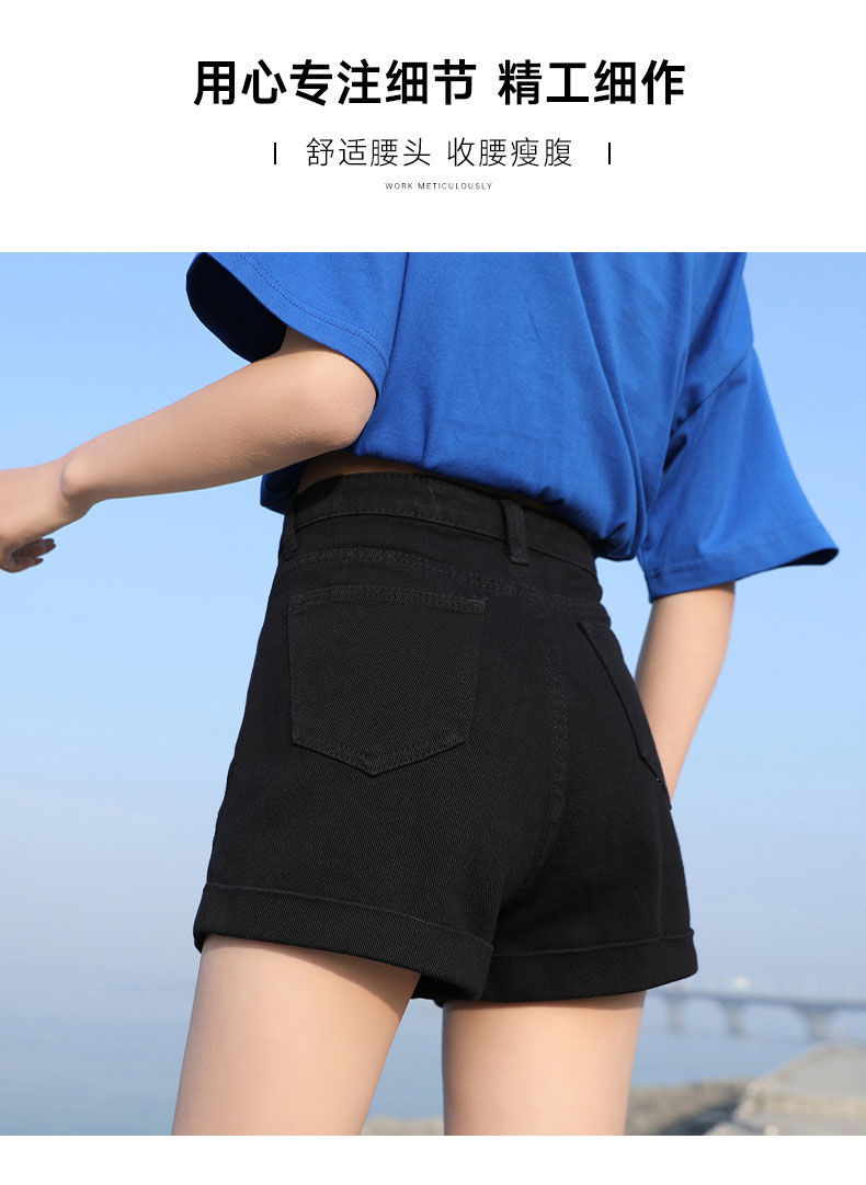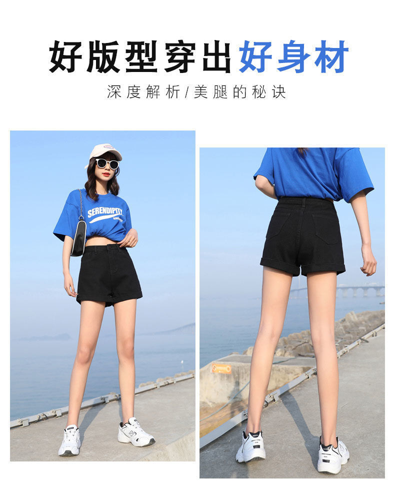 블랙 데님 반바지 여자의 느슨한 와이드 레그 하이 웨이스트 A 라인 바지 2022 새로운 여름 슈퍼 짧은 핫 팬츠 스파이스 걸스 인