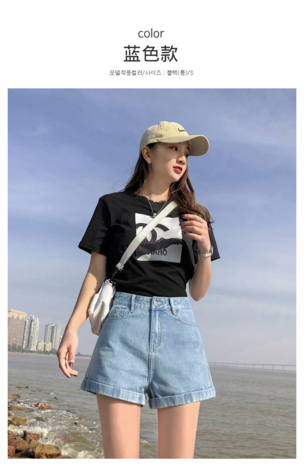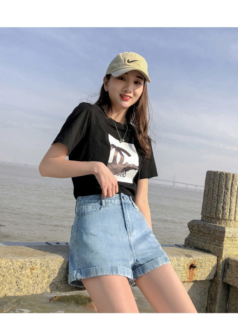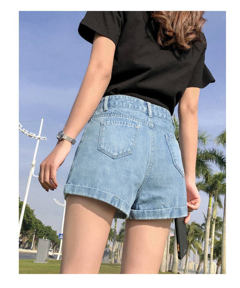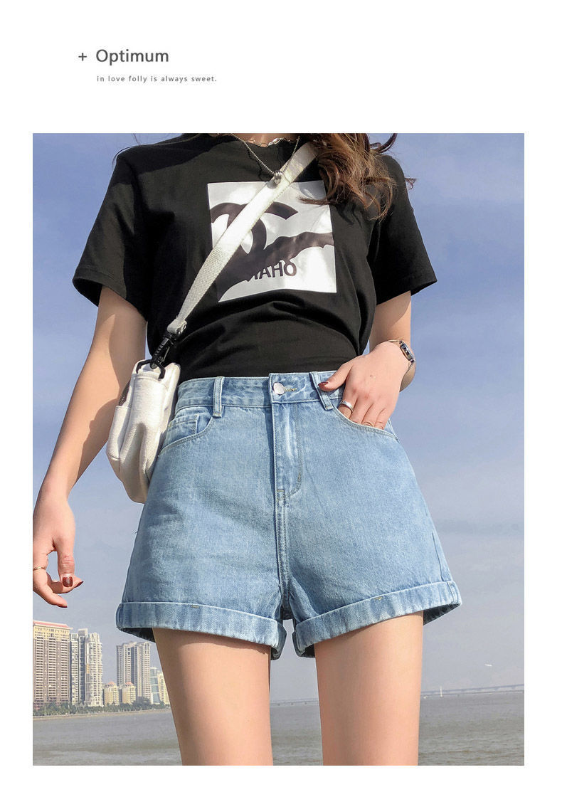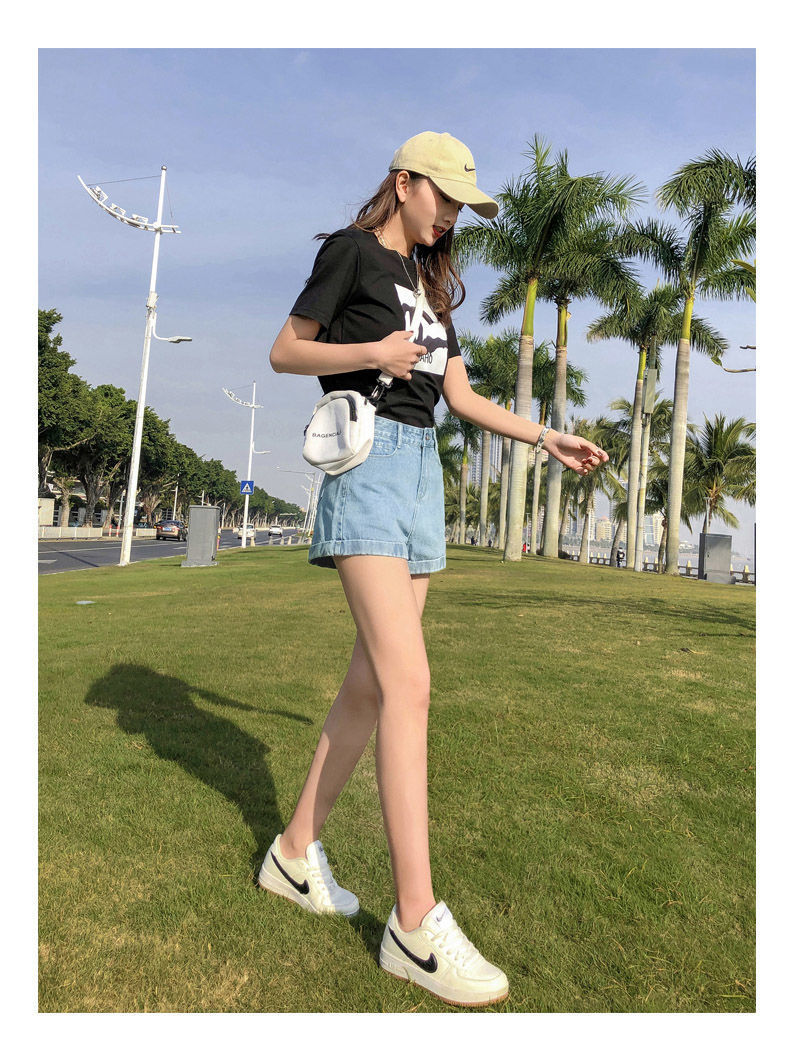 블랙 데님 반바지 여자의 느슨한 와이드 레그 하이 웨이스트 A 라인 바지 2022 새로운 여름 슈퍼 짧은 핫 팬츠 스파이스 걸스 인