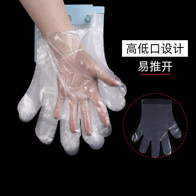 공장 도매 두꺼운 일회용 교수형 구멍 장갑 주방 취사 식품 등급 투명 플라스틱 교수형 PE 장갑